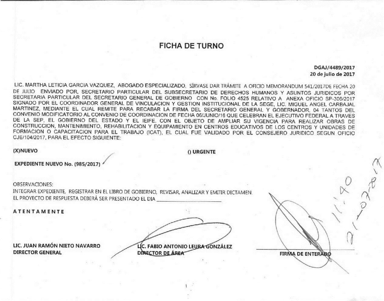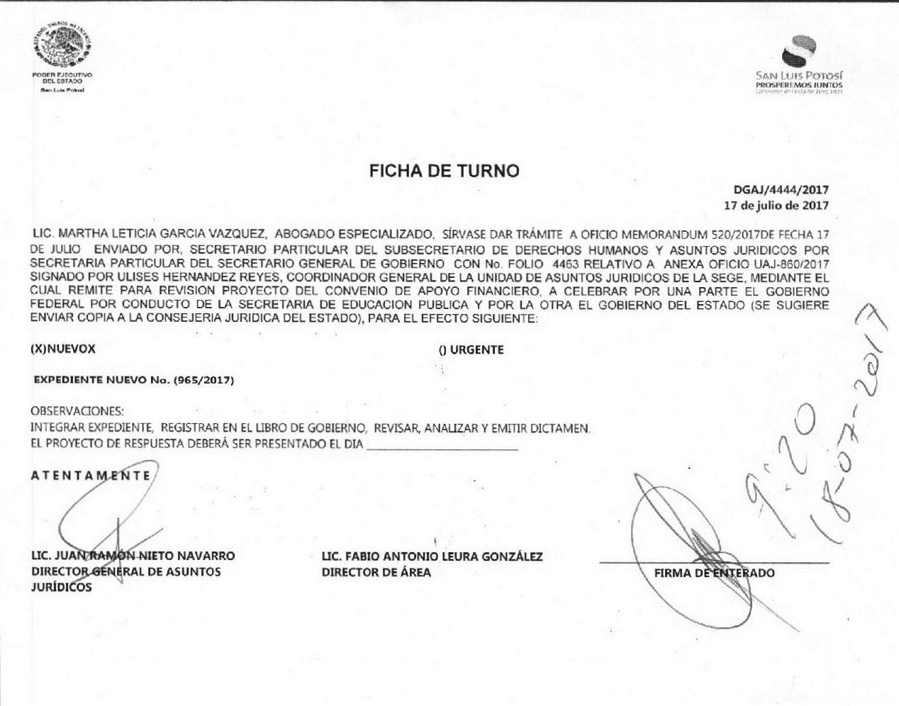 2017 31/08/2017 ANEXA OFICIO UAJ-860/2017 SIGNADO POR ULISES HERNANDEZ REYES, COORDINADOR GENERAL DE LA UNIDAD DE ASUNTOS JURIDICOS DE LA SEGE, MEDIANTE EL CUAL REMITE PARA REVISION PROYECTO DEL CONVENIO DE APOYO FINANCIERO, A CELEBRAR POR UNA PARTE EL GOBIERNO FEDERAL POR CONDUCTO DE LA SECRETARIA DE EDUCACION PUBLICA Y POR LA OTRA EL GOBIERNO DEL ESTADO (SE SUGIERE ENVIAR COPIA A LA CONSEJERIA JURIDICA DEL ESTADO) SIN FECHA DE ESPECIFICACIÓN SEGE SECRETARIA DE EDUCACIÓN PUBLICA SEGE SECREARIA DE EDUCACIÓN PUBLICA GOB.EDO.S.L.P. APOYO FINANCIERO SIN CONOCER VIGENTE SIN CONCLUIR NO SE GENERÓ http://www.cegaipslp.org.mx/webcegaip.nsf/nombre_de_la_vista/AB6F000D94916F3C8625818E005ECB62/$File/DOCUMENTO+3.jpg NO SE GENERÓ 31/08/2017 DIRECCIÓN GENERAL DE ASUNTOS JURÍDICOS 2017 01/09/2017