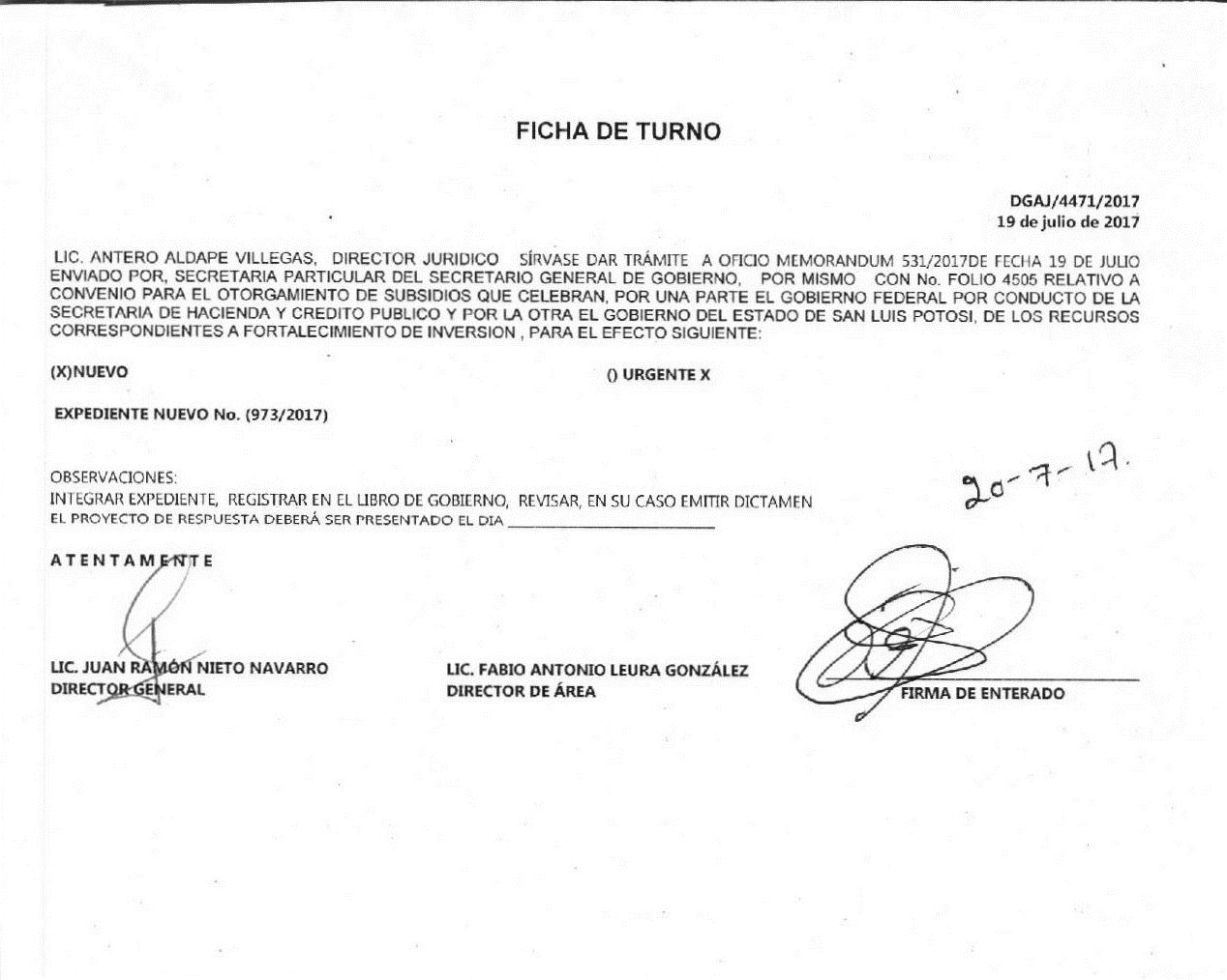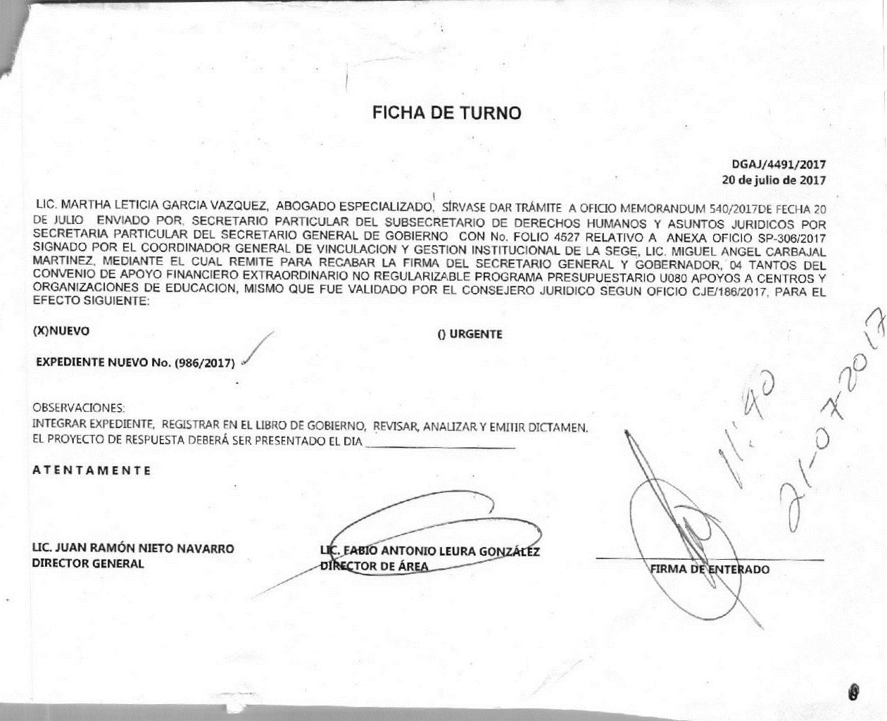 2017 31/08/2017 ANEXA OFICIO SP-306/2017 SIGNADO POR EL COORDINADOR GENERAL DE VINCULACION Y GESTION INSTITUCIONAL DE LA SEGE, LIC. MIGUEL ANGEL CARBAJAL MARTINEZ, MEDIANTE EL CUAL REMITE PARA RECABAR LA FIRMA DEL SECRETARIO GENERAL Y GOBERNADOR, 04 TANTOS DEL CONVENIO DE APOYO FINANCIERO EXTRAORDINARIO NO REGULARIZABLE PROGRAMA PRESUPUESTARIO U080 APOYOS A CENTROS Y ORGANIZACIONES DE EDUCACION, MISMO QUE FUE VALIDADO POR EL CONSEJERO JURIDICO SEGUN OFICIO CJE/186/2017 SIN FECHA DE ESPECIFICACIÓN SEGE CENTRO Y ORGANIZACIONES DE EDUCACIÓN SEGE CENTRO Y ORGANIZACIONES DE EDUCACIÓN GOB. EDO.S.L.P. APOYO FINANCIERO SIN CONOCER VIGENTE SIN CONCLUIR NO SE GENERÓ http://www.cegaipslp.org.mx/webcegaip.nsf/nombre_de_la_vista/4CCC9F2859DA7CB48625818E005F28EE/$File/DOCUMENTO+6.jpg NO SE GENERÓ 31/08/2017 DIRECCIÓN GENERAL DE ASUNTOS JURÍDICOS 2017 01/09/2017
