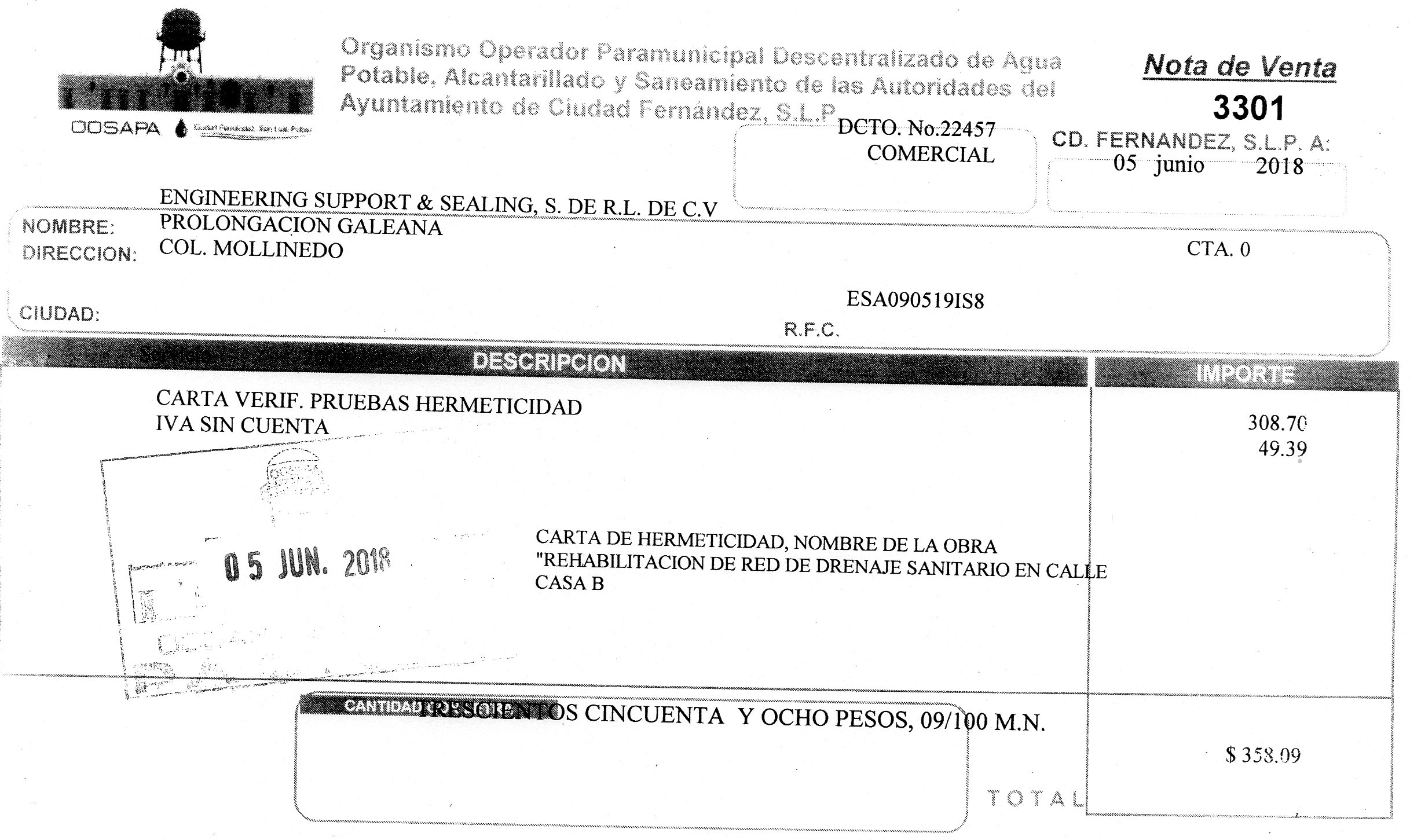 2018 1 de junio del 2018 30 de junio del 2018 COMPROVANTE DE PAGO DE CARTA DE HERMETICIDAD TODO TIPO DE USUARIO MAYOS DE EDAD PARA VERIFICAR QUE HALLA LIQUIDADO SU TRAMITE COMPROVANTE DE PAGO DE CARTA DE HERMETICIDAD http://www.cegaipslp.org.mx/webcegaip2018N2.nsf/nombre_de_la_vista/5CCE532C44F5ACDB862582CC00611D78/$File/COMPROBANTE+DE+PAGO+CARTA+DE+HERMETICIDAD.jpg IDENTIFICACION http://www.cegaipslp.org.mx/webcegaip2018N2.nsf/nombre_de_la_vista/5CCE532C44F5ACDB862582CC00611D78/$File/COMPROBANTE+DE+PAGO+CARTA+DE+HERMETICIDAD.jpg INMEDIATA INDEFINIDA 3 GRATUITO CUOTAS Y TARIFAS 2018 4 LEY DE AGUAS PARA EL ESTADO DE S.L.P DERECHO DE REPLICA,PRORROGA.QUEJA 5 OOSAPA_COBRANZA_@HOTMAIL.COM http://www.cegaipslp.org.mx/webcegaip2018N2.nsf/nombre_de_la_vista/651B17C31BF87FE3862582CC005FBD3F/$File/XLIIA.docx http://www.cegaipslp.org.mx/webcegaip2018N2.nsf/nombre_de_la_vista/651B17C31BF87FE3862582CC005FBD3F/$File/XLIIA.docx ATENCION A USUARIOS AREA DE COBRANZA 16/08/2018 16/07/2018 NGI
