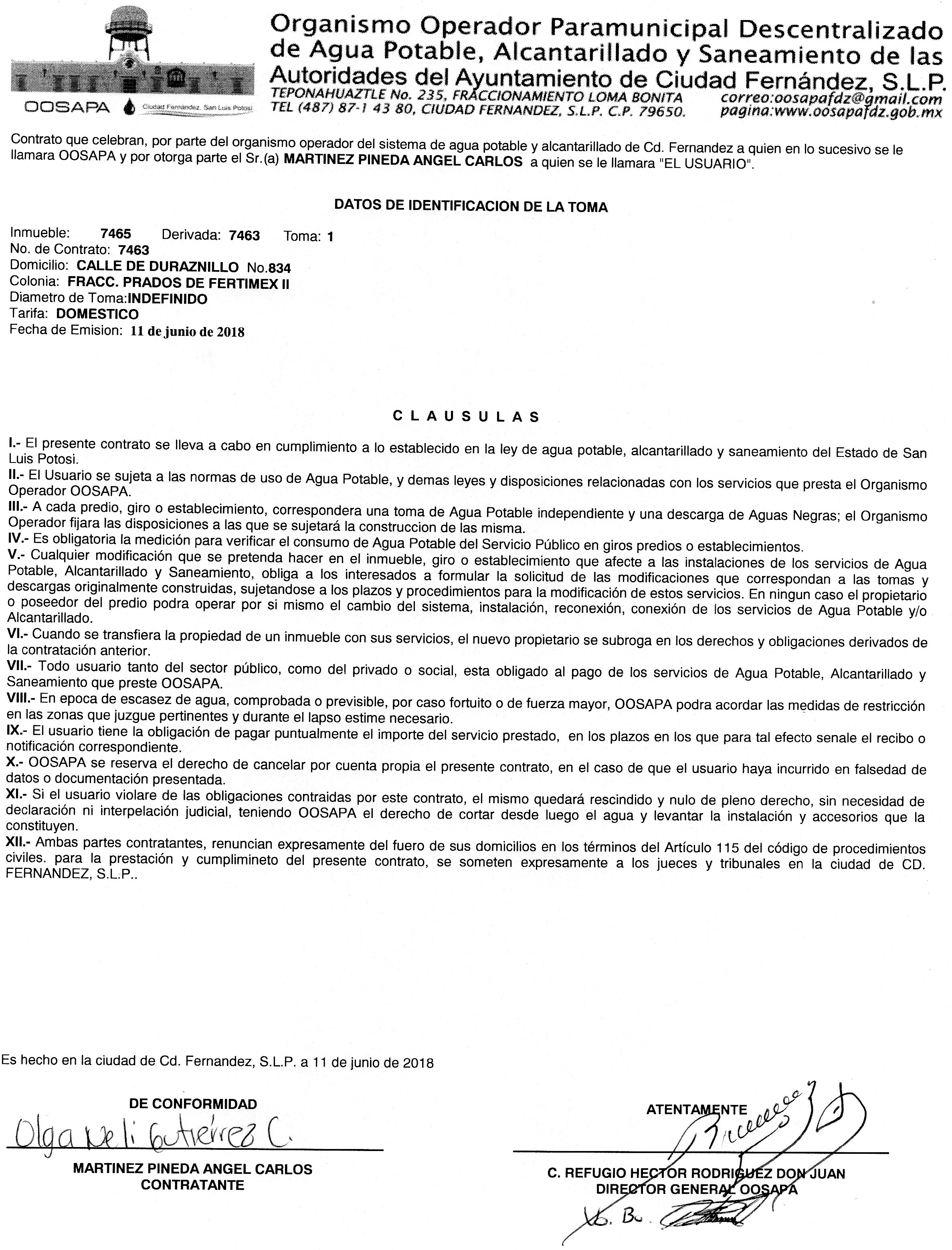 2018 1 de junio del 2018 30 de junio del 2018 CONTRATO DE AGUA Y DRENAJE TODO TIPO DE USUARIO MAYOS DE EDAD CONTAR CON EL SERVICIO DE AGUA EN SU HOGAR CONTRATO DE AGUA Y DRENAJE http://www.cegaipslp.org.mx/webcegaip2018N2.nsf/nombre_de_la_vista/99A792C9C58E8908862582CC00614252/$File/CONTRATO+DE+AGUA+Y+DRENAJE.jpg IDENTIFICACION http://www.cegaipslp.org.mx/webcegaip2018N2.nsf/nombre_de_la_vista/99A792C9C58E8908862582CC00614252/$File/CONTRATO+DE+AGUA+Y+DRENAJE.jpg INMEDIATA INDEFINIDA 3 GRATUITO CUOTAS Y TARIFAS 2018 4 LEY DE AGUAS PARA EL ESTADO DE S.L.P DERECHO DE REPLICA,PRORROGA.QUEJA 5 OOSAPA_COBRANZA_@HOTMAIL.COM http://www.cegaipslp.org.mx/webcegaip2018N2.nsf/nombre_de_la_vista/651B17C31BF87FE3862582CC005FBD3F/$File/XLIIA.docx http://www.cegaipslp.org.mx/webcegaip2018N2.nsf/nombre_de_la_vista/651B17C31BF87FE3862582CC005FBD3F/$File/XLIIA.docx ATENCION A USUARIOS AREA DE COBRANZA 16/08/2018 16/07/2018 NGI