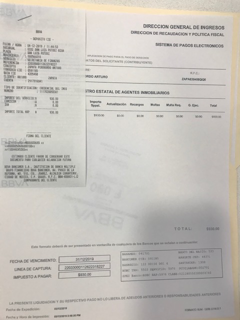 2019 01/12/2019 31/12/2019 Licencia SDE-RAI-AGILE-03-005 Para prestación de servicios inmobiliarios en S.L.P. Ley del Registro de Agentes Inmobiliarios del Estado de San Luis Potosí, Artículo 6° y 7°. Dirección de Mejora Regulatoria. Privado Roberto Javier González Mercado No se genera. 15/11/2019 15/11/2020 Ley del Registro de Agentes Imobiliarios del Estado de San Luis Potosi, Artículo 8°. http://www.cegaipslp.org.mx/HV2020.nsf/nombre_de_la_vista/46C3C5D5986E153E862584EA005EE6DF/$File/005++ROBERTO+JARVIER+GONZÁLEZ+MERCADO.PDF 0 0 http://www.cegaipslp.org.mx/HV2019Tres.nsf/nombre_de_la_vista/C1EE9ABDA3EC8C3E862584AC005EB246/$File/Ley_de_Hacienda_para_el_Estado_de_San_Luis_Potosi_16_Jul_2019.pdf http://www.cegaipslp.org.mx/HV2020.nsf/nombre_de_la_vista/574EAC16F45CA0DC862584EA005F7EA7/$File/005++ROBERTO+JAVIER+GONZÁLEZ+MERCADO.pdf http://www.cegaipslp.org.mx/webcegaip2018N2.nsf/nombre_de_la_vista/C3ADB6B6DD95D1F286258304005E1A7C/$File/NO+SE+GENERÓ+CONTRATO+PLURIANUAL.docx No http://www.cegaipslp.org.mx/webcegaip2018N2.nsf/nombre_de_la_vista/A8961B002F98F9478625830400606C51/$File/NO+SE+GENERA+CONVENIO+MODIFICATORIO.docx Dirección de Mejora Regulatoria. 09/01/2020 09/01/2020 3era. Revalidación. 2019 01/12/2019 31/12/2019 Licencia SDE-RAI-AGILE-03-008 Para prestación de servicios inmobiliarios en S.L.P. Ley del Registro de Agentes Inmobiliarios del Estado de San Luis Potosí, Artículo 6° y 7°. Dirección de Mejora Regulatoria. Privado Daniel Delgado Rangel No se genera. 06/12/2019 06/12/2020 Ley del Registro de Agentes Imobiliarios del Estado de San Luis Potosi, Artículo 8°. http://www.cegaipslp.org.mx/HV2020.nsf/nombre_de_la_vista/EA3E4DCDC29381D6862584EA005EFD24/$File/008++DANIEL+DELGADO+RANGEL.pdf 0 0 http://www.cegaipslp.org.mx/HV2019Tres.nsf/nombre_de_la_vista/C1EE9ABDA3EC8C3E862584AC005EB246/$File/Ley_de_Hacienda_para_el_Estado_de_San_Luis_Potosi_16_Jul_2019.pdf http://www.cegaipslp.org.mx/HV2020.nsf/nombre_de_la_vista/AE5717BE4195A7BB862584EA005F8C1E/$File/008++DANIEL+DELGADO+RANGEL.jpg http://www.cegaipslp.org.mx/webcegaip2018N2.nsf/nombre_de_la_vista/C3ADB6B6DD95D1F286258304005E1A7C/$File/NO+SE+GENERÓ+CONTRATO+PLURIANUAL.docx No http://www.cegaipslp.org.mx/webcegaip2018N2.nsf/nombre_de_la_vista/A8961B002F98F9478625830400606C51/$File/NO+SE+GENERA+CONVENIO+MODIFICATORIO.docx Dirección de Mejora Regulatoria. 09/01/2020 09/01/2020 2da. Revalidación. 2019 01/12/2019 31/12/2019 Licencia SDE-RAI-AGILE-03-014 Para prestación de servicios inmobiliarios en S.L.P. Ley del Registro de Agentes Inmobiliarios del Estado de San Luis Potosí, Artículo 6° y 7°. Dirección de Mejora Regulatoria. Privado Arturo Zapata Perogordo No se genera. 26/11/2019 26/11/2020 Ley del Registro de Agentes Imobiliarios del Estado de San Luis Potosi, Artículo 8°. http://www.cegaipslp.org.mx/HV2020.nsf/nombre_de_la_vista/EE86C57BE7530750862584EA005F0B42/$File/014++ARTURO+ZAPATA+PEROGORDO.PDFLicencia. 0 0 http://www.cegaipslp.org.mx/HV2019Tres.nsf/nombre_de_la_vista/C1EE9ABDA3EC8C3E862584AC005EB246/$File/Ley_de_Hacienda_para_el_Estado_de_San_Luis_Potosi_16_Jul_2019.pdf http://www.cegaipslp.org.mx/HV2020.nsf/nombre_de_la_vista/D40091C9DEE8A070862584EA005FA840/$File/014++ARTURO+ZAPATA+PEROGORDO.jpg http://www.cegaipslp.org.mx/webcegaip2018N2.nsf/nombre_de_la_vista/C3ADB6B6DD95D1F286258304005E1A7C/$File/NO+SE+GENERÓ+CONTRATO+PLURIANUAL.docx No http://www.cegaipslp.org.mx/webcegaip2018N2.nsf/nombre_de_la_vista/A8961B002F98F9478625830400606C51/$File/NO+SE+GENERA+CONVENIO+MODIFICATORIO.docx Dirección de Mejora Regulatoria. 09/01/2020 09/01/2020 3era. Revalidación. 2019 01/12/2019 31/12/2019 Licencia SDE-RAI-AGILE-03-054 Para prestación de servicios inmobiliarios en S.L.P. Ley del Registro de Agentes Inmobiliarios del Estado de San Luis Potosí, Artículo 6° y 7°. Dirección de Mejora Regulatoria. Privado Beatriz Lomelí Solís No se genera. 05/12/2019 05/12/2020 Ley del Registro de Agentes Imobiliarios del Estado de San Luis Potosi, Artículo 8°. http://www.cegaipslp.org.mx/HV2020.nsf/nombre_de_la_vista/CB8EDF31F35CB2DC862584EA005F1920/$File/054++BEATRIZ+LOMELÍ+SOLÍS.PDF 0 0 http://www.cegaipslp.org.mx/HV2019Tres.nsf/nombre_de_la_vista/C1EE9ABDA3EC8C3E862584AC005EB246/$File/Ley_de_Hacienda_para_el_Estado_de_San_Luis_Potosi_16_Jul_2019.pdf http://www.cegaipslp.org.mx/HV2020.nsf/nombre_de_la_vista/F8E5200E2F04FA92862584EA005FB85D/$File/055++BEATRIZ+LOMELÍ+SOLÍS.pdf http://www.cegaipslp.org.mx/webcegaip2018N2.nsf/nombre_de_la_vista/C3ADB6B6DD95D1F286258304005E1A7C/$File/NO+SE+GENERÓ+CONTRATO+PLURIANUAL.docx No http://www.cegaipslp.org.mx/webcegaip2018N2.nsf/nombre_de_la_vista/A8961B002F98F9478625830400606C51/$File/NO+SE+GENERA+CONVENIO+MODIFICATORIO.docx Dirección de Mejora Regulatoria. 09/01/2020 09/01/2020 2da. Revalidación. 2019 01/12/2019 31/12/2019 Licencia SDE-RAI-AGILE-03-084 Para prestación de servicios inmobiliarios en S.L.P. Ley del Registro de Agentes Inmobiliarios del Estado de San Luis Potosí, Artículo 6° y 7°. Dirección de Mejora Regulatoria. Privado Braulio Israel Rodríguez Alvarez No se genera. 03/12/2019 03/12/2020 Ley del Registro de Agentes Imobiliarios del Estado de San Luis Potosi, Artículo 8°. http://www.cegaipslp.org.mx/HV2020.nsf/nombre_de_la_vista/25FC8D03A1C91E98862584EA005F3BF4/$File/084++BRAULIO+ISRAEL.PDF 0 0 http://www.cegaipslp.org.mx/HV2019Tres.nsf/nombre_de_la_vista/C1EE9ABDA3EC8C3E862584AC005EB246/$File/Ley_de_Hacienda_para_el_Estado_de_San_Luis_Potosi_16_Jul_2019.pdf http://www.cegaipslp.org.mx/HV2020.nsf/nombre_de_la_vista/F42F49B11A964081862584EA005FC702/$File/084++BRAULIO+ISRAEL+RODRÍGUEZ+ALVAREZ.pdf http://www.cegaipslp.org.mx/webcegaip2018N2.nsf/nombre_de_la_vista/C3ADB6B6DD95D1F286258304005E1A7C/$File/NO+SE+GENERÓ+CONTRATO+PLURIANUAL.docx No http://www.cegaipslp.org.mx/webcegaip2018N2.nsf/nombre_de_la_vista/A8961B002F98F9478625830400606C51/$File/NO+SE+GENERA+CONVENIO+MODIFICATORIO.docx Dirección de Mejora Regulatoria. 09/01/2020 09/01