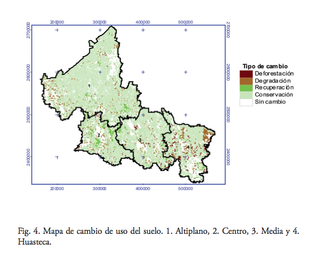 La dinámica de cambio de la vegetación forestal del estado, que permita conocer y evaluar las tasas de deforestación y las tasas de degradación y disturbio, registrando sus causas principales.