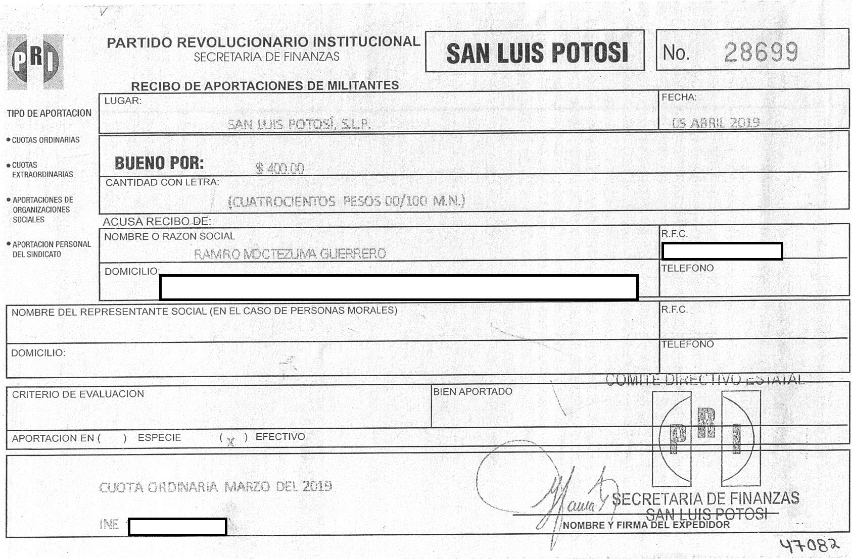 Cuotas ordinarias y extraordinarias de militantes LTAIPSLP90FVIII Las cuotas o aportaciones ordinarias y extraordinarias de militantes, afiliados, participantes o simpatizantes. Dichas cuotas o aportaciones deberán estar especificadas en los documentos que el Órgano electoral correspondiente emita anualmente. Tabla Campos