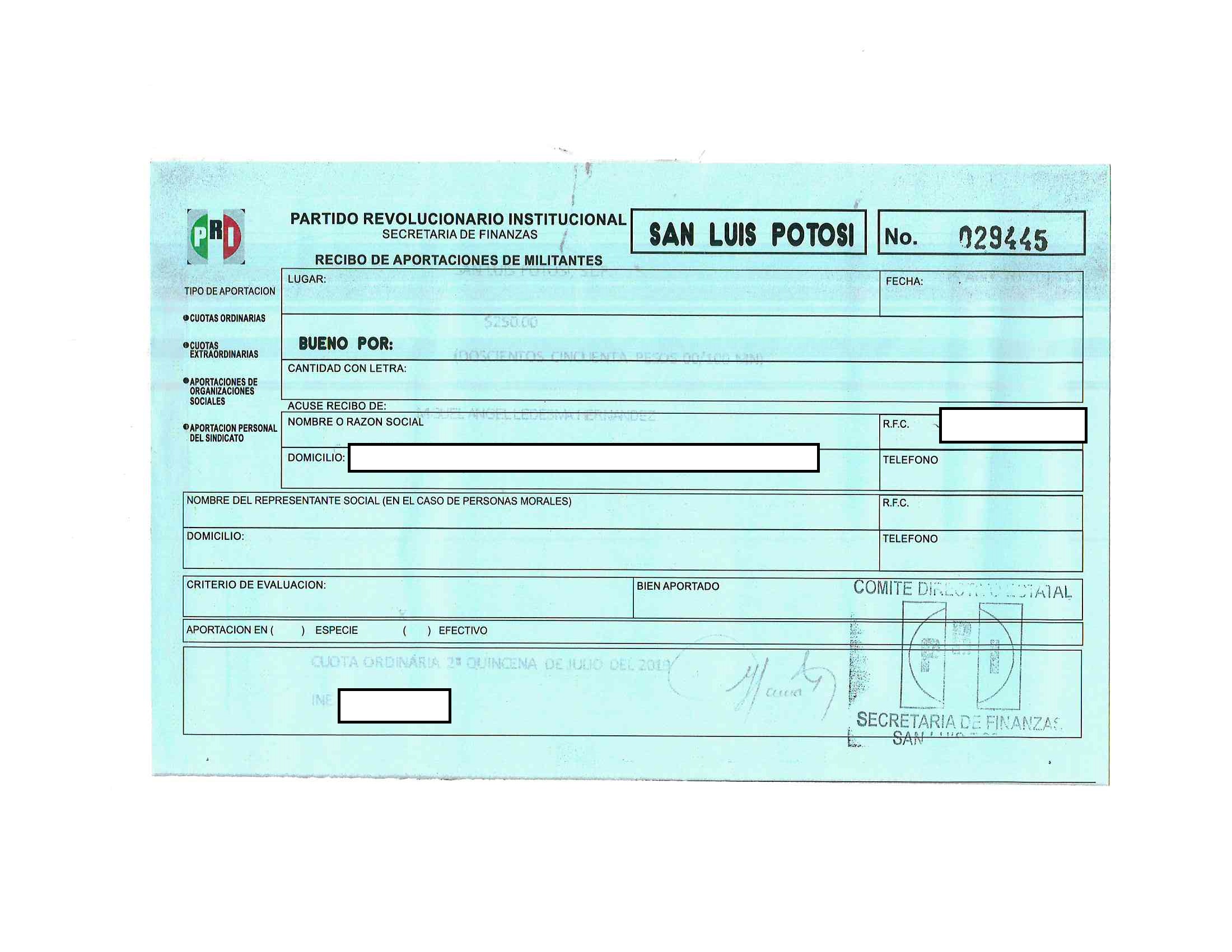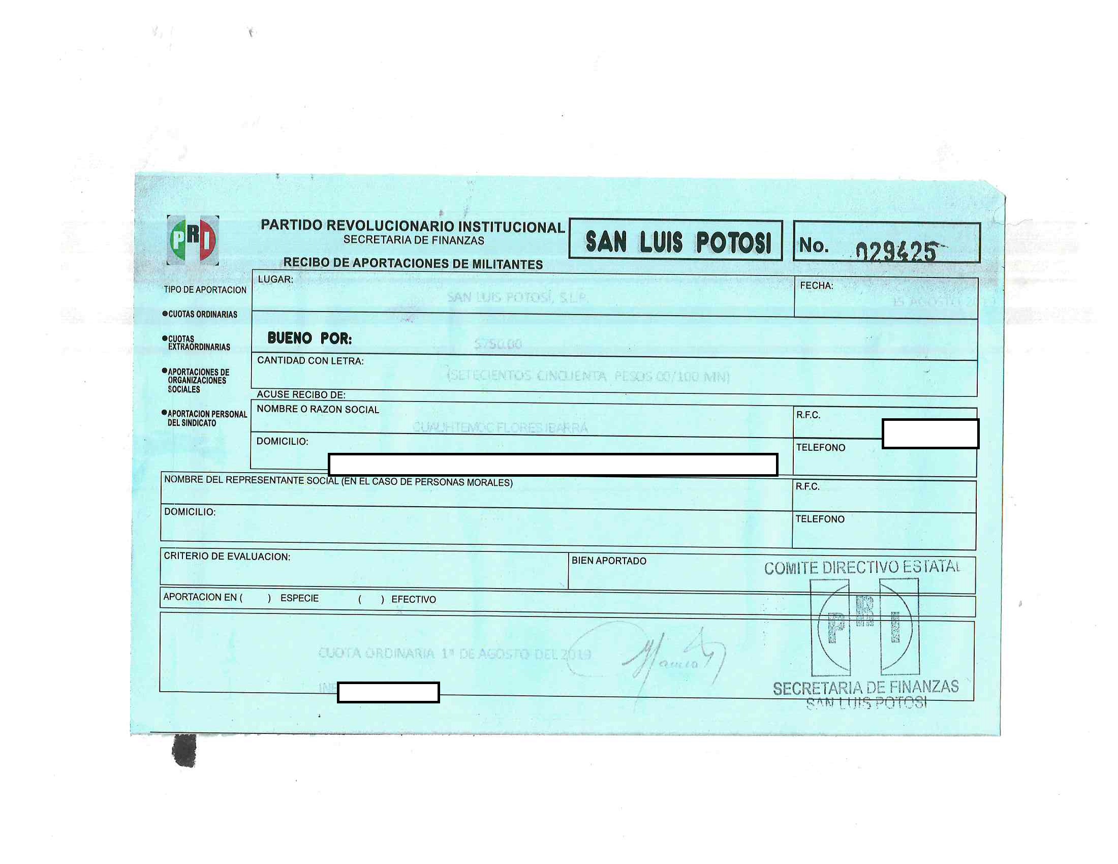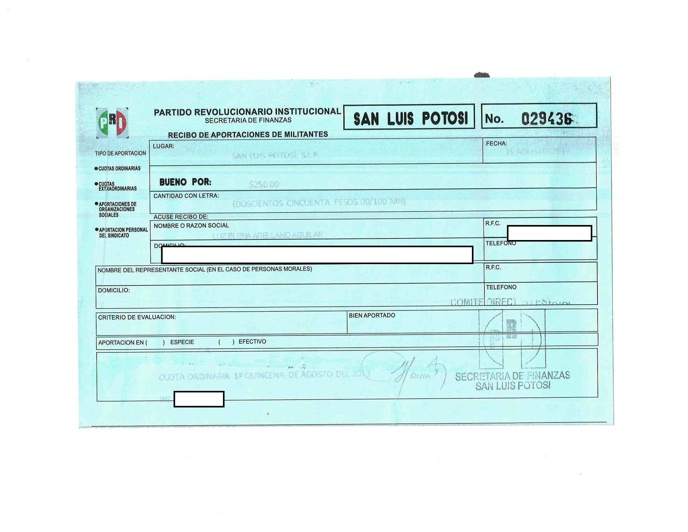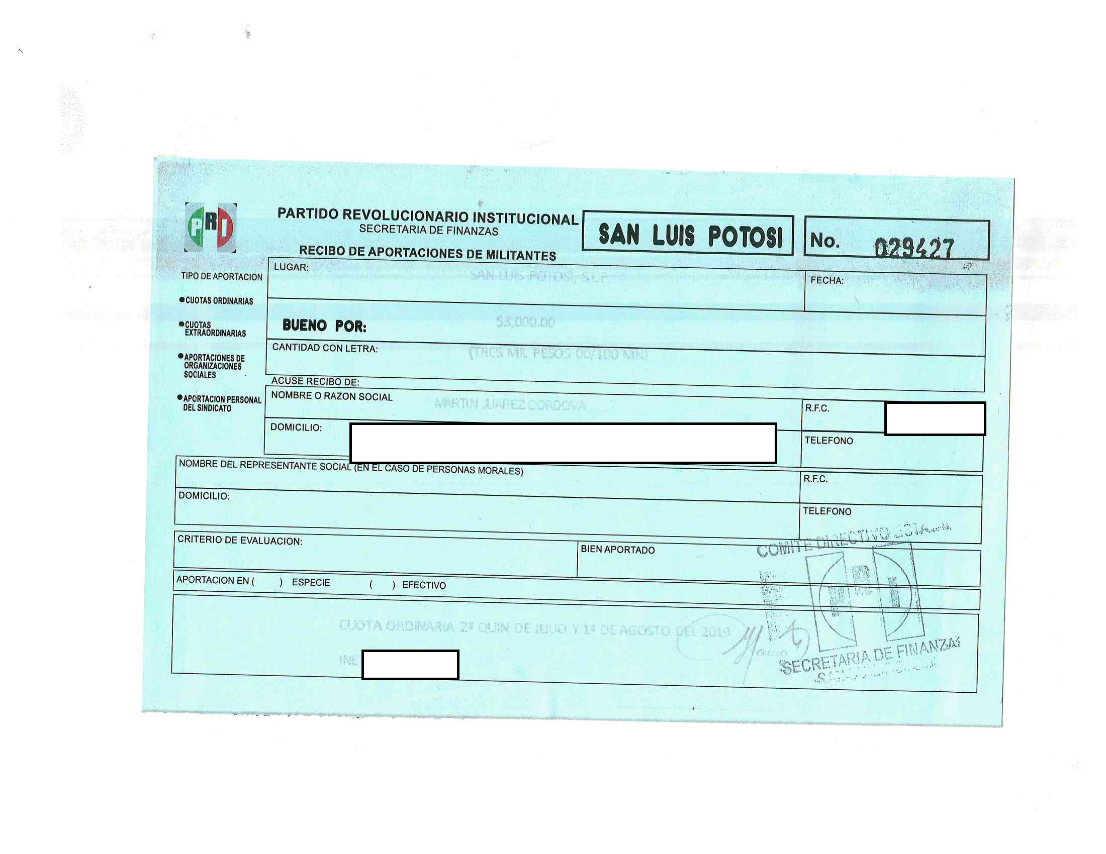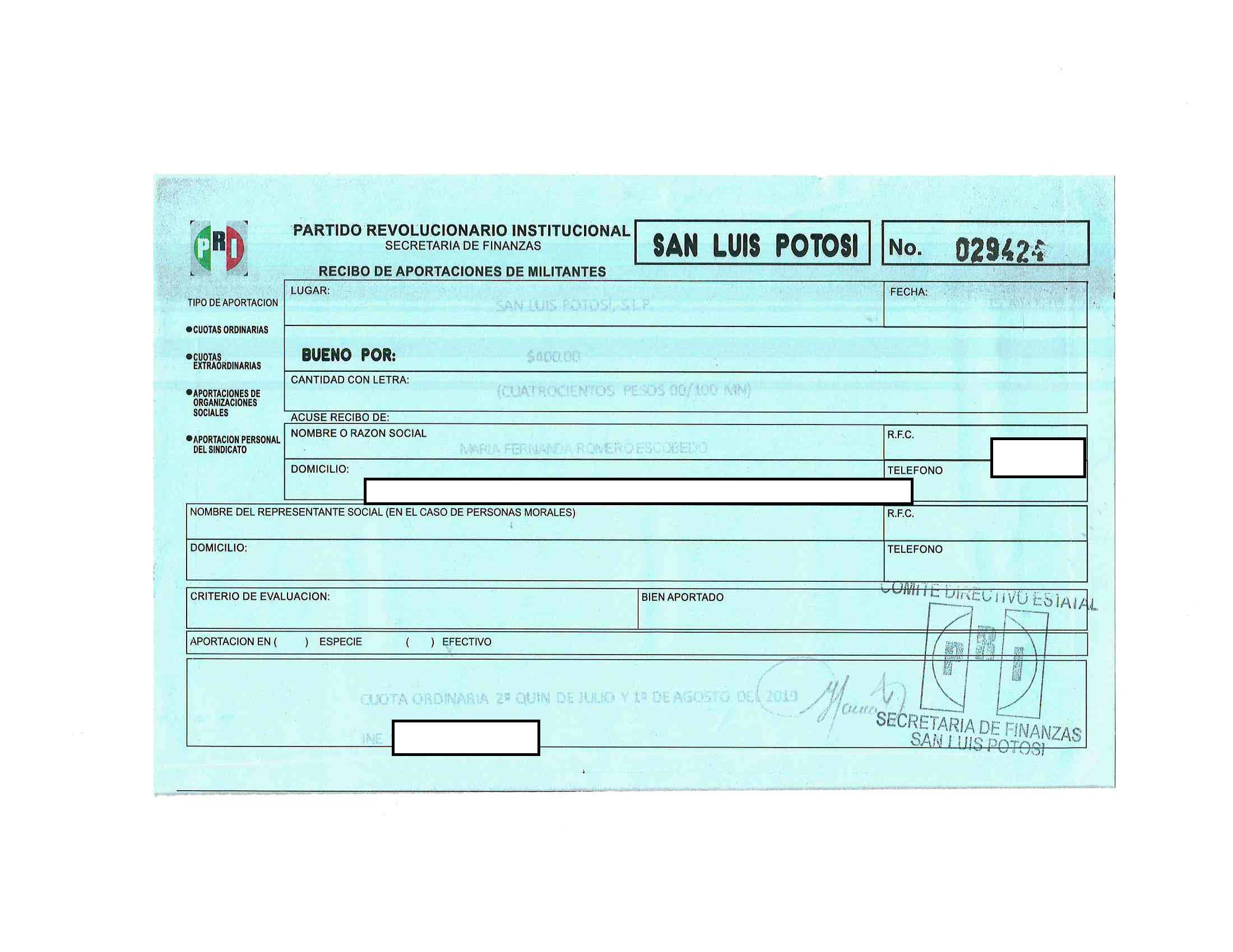 Cuotas ordinarias y extraordinarias de militantes LTAIPSLP90FVIII Las cuotas o aportaciones ordinarias y extraordinarias de militantes, afiliados, participantes o simpatizantes. Dichas cuotas o aportaciones deberán estar especificadas en los documentos que el Órgano electoral correspondiente emita anualmente. Tabla Campos