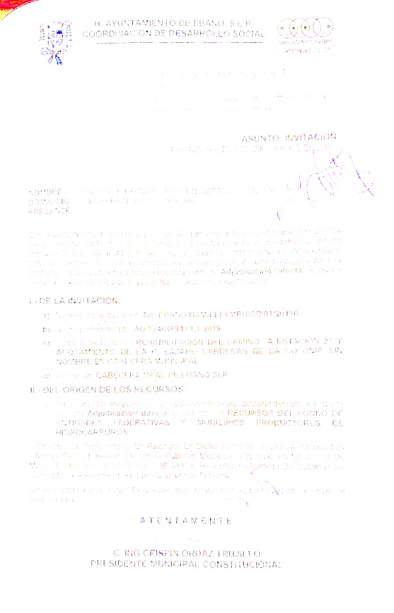 2019 01/04/2019 30/04/2019 Adjudicación directa Obra pública EBANO/DSM/R33/CD/08/2019 134 de la Constitución Política de los Estados Unidos Mexicanos. A lo dispuesto en los artículos135 de la Constitución Política del Estado Libre y Soberano de San Luis Potosí; a los Artículos 1 fracción IV, 36 fracción II, 92, 94 y 97 de la Ley de Obras P http://www.cegaipslp.org.mx/HV2019.nsf/nombre_de_la_vista/3289402C8E288DC48625839A005FF354/$File/NO+SE+GENERO+OBRA.pdf REHABILITACION DE REVESTIMIENTO EN LAS CALLES INDEPENDENCIA, INSURGENTES, ART 27 Y CONSTITUCION EN EL EJIDO VICHINCHIJOL, MPIO DE EBANO S.L.P. 1,3,4 REHABILITACION DE REVESTIMIENTO EN LAS CALLES INDEPENDENCIA, INSURGENTES, ART 27 Y CONSTITUCION EN EL EJIDO VICHINCHIJOL, |