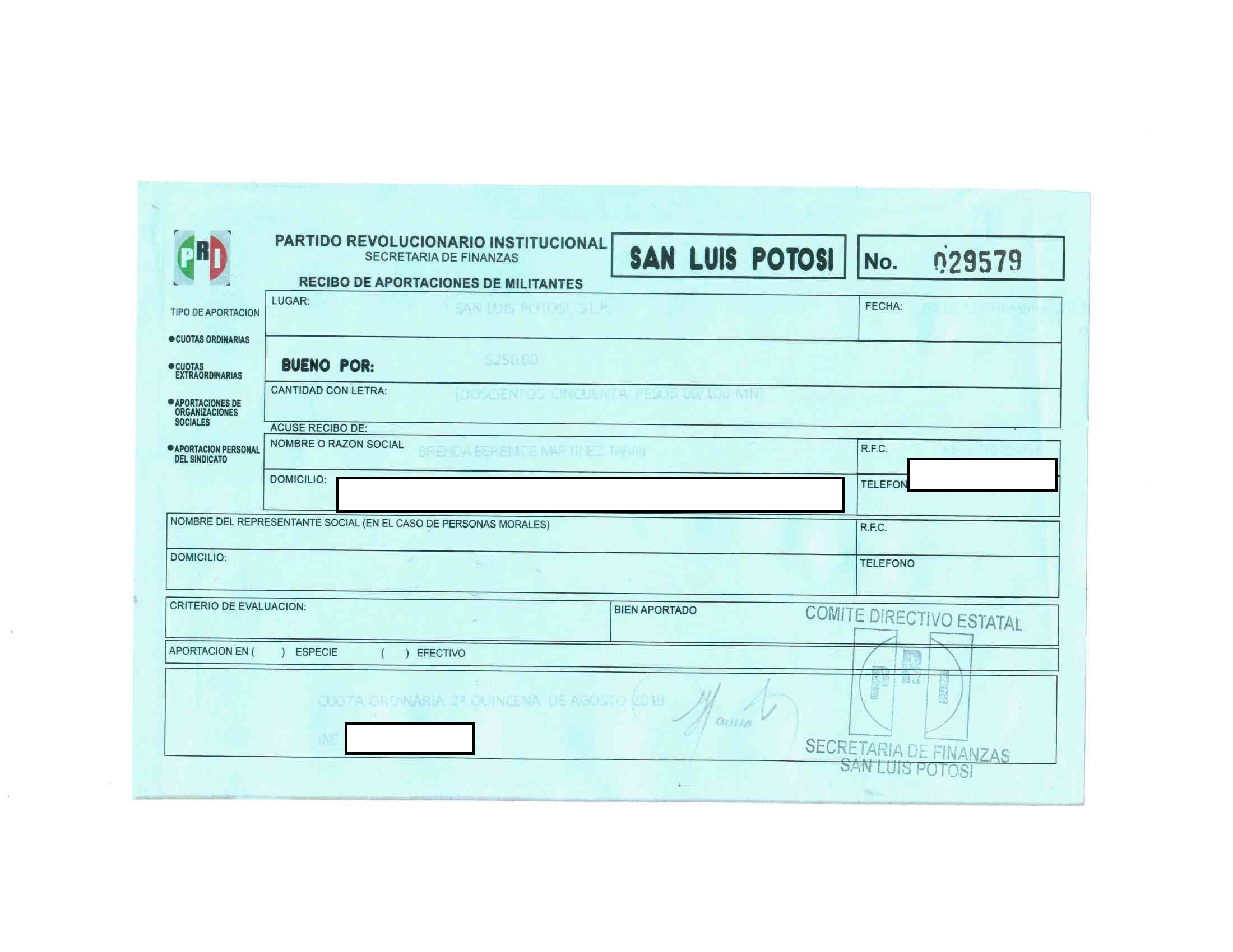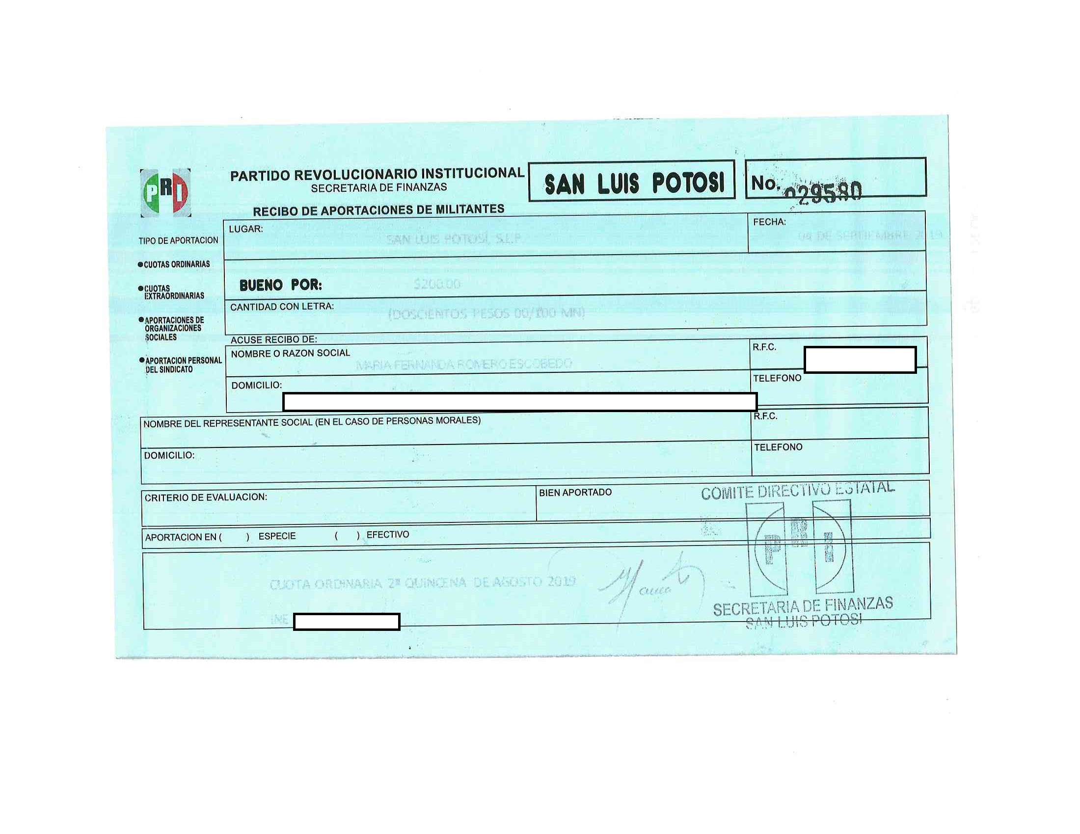 Cuotas ordinarias y extraordinarias de militantes LTAIPSLP90FVIII Las cuotas o aportaciones ordinarias y extraordinarias de militantes, afiliados, participantes o simpatizantes. Dichas cuotas o aportaciones deberán estar especificadas en los documentos que el Órgano electoral correspondiente emita anualmente. Tabla Campos