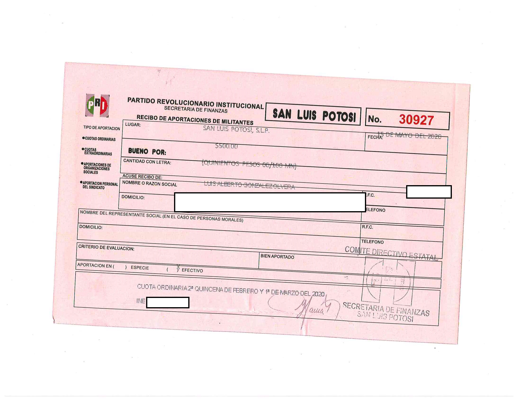 2020 01/05/2020 31/05/2020 ordinaria LUIS ALBERTO GONZALEZ OLVERA 15/05/2020 500 14650 http://www.cegaipslp.org.mx/HV2020Dos.nsf/nombre_de_la_vista/256792E23FE7677C8625859A0001A694/$File/30927+LUIS+ALBERTO+GONZALES+OLVERA.jpg SECRETARIA DE FINANZAS Y ADMINISTRACION 31/05/2020 31/05/2020 NO SE GENERA