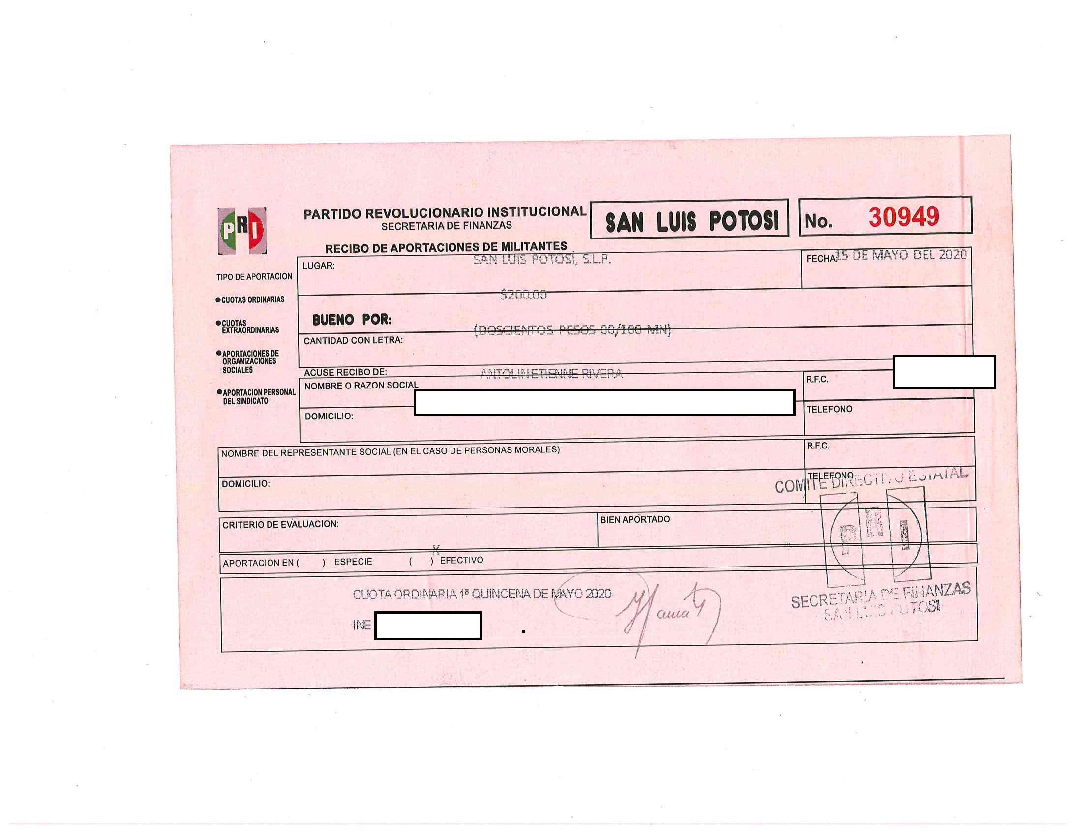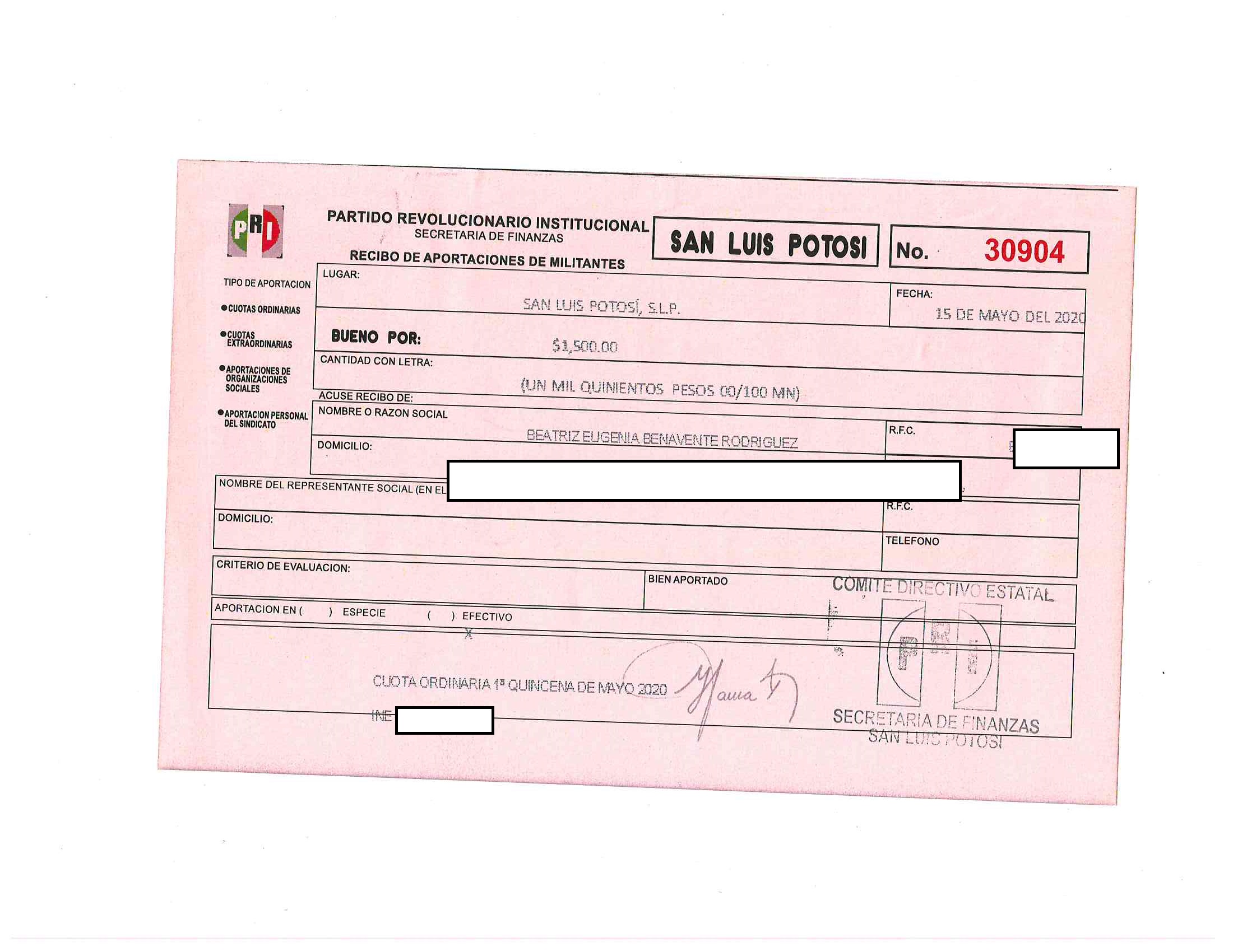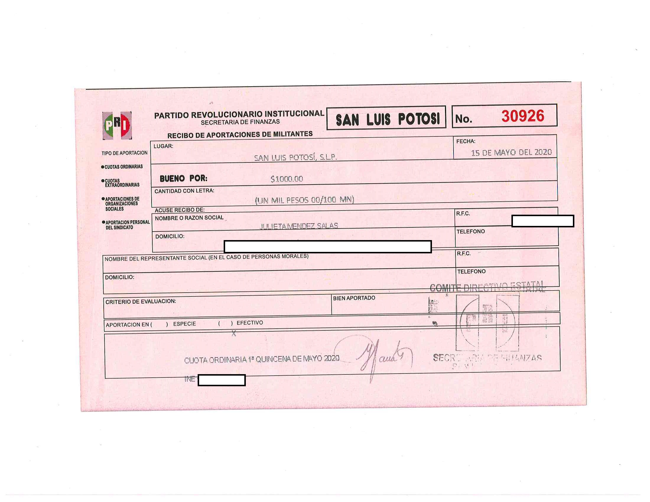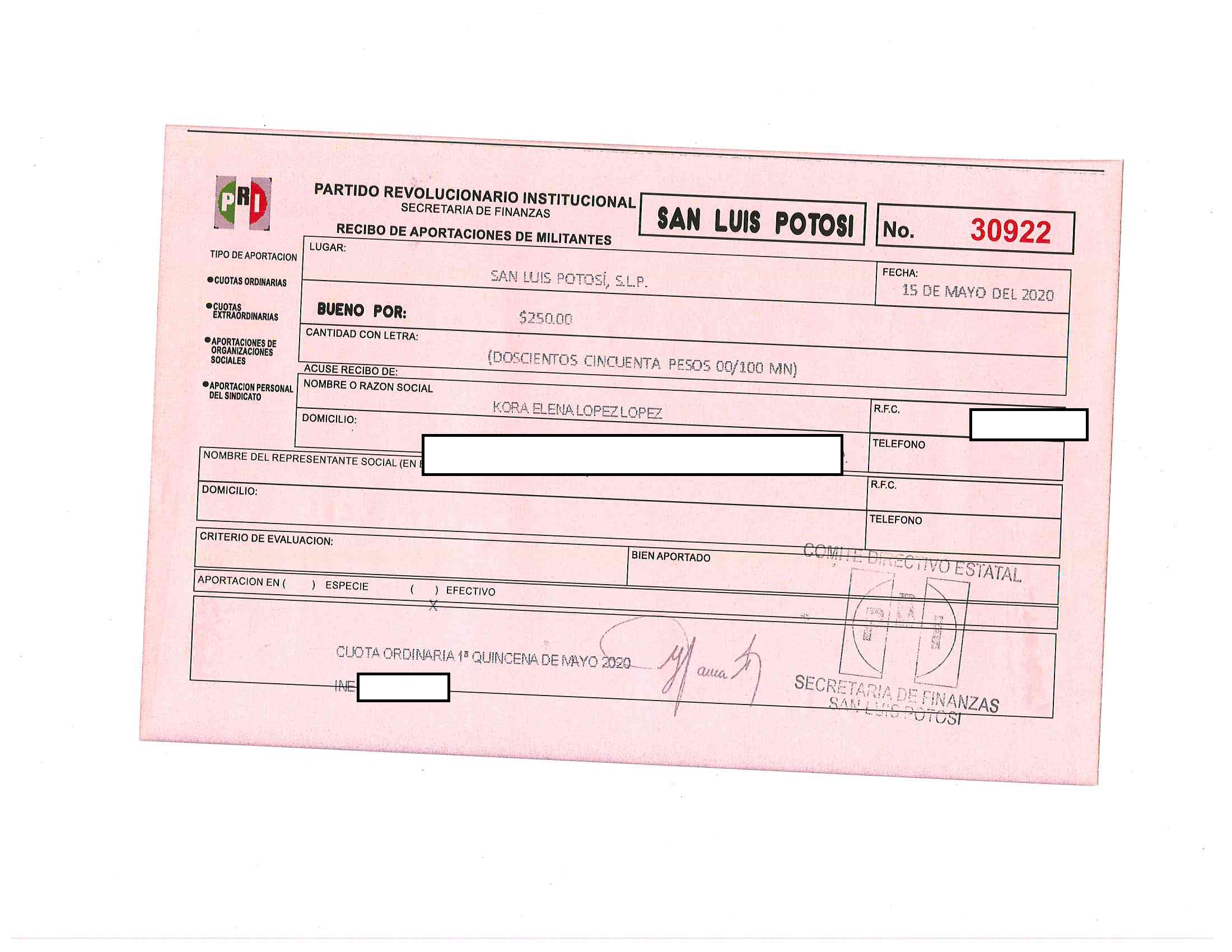 Cuotas ordinarias y extraordinarias de militantes LTAIPSLP90FVIII Las cuotas o aportaciones ordinarias y extraordinarias de militantes, afiliados, participantes o simpatizantes. Dichas cuotas o aportaciones deberán estar especificadas en los documentos que el Órgano electoral correspondiente emita anualmente. Tabla Campos