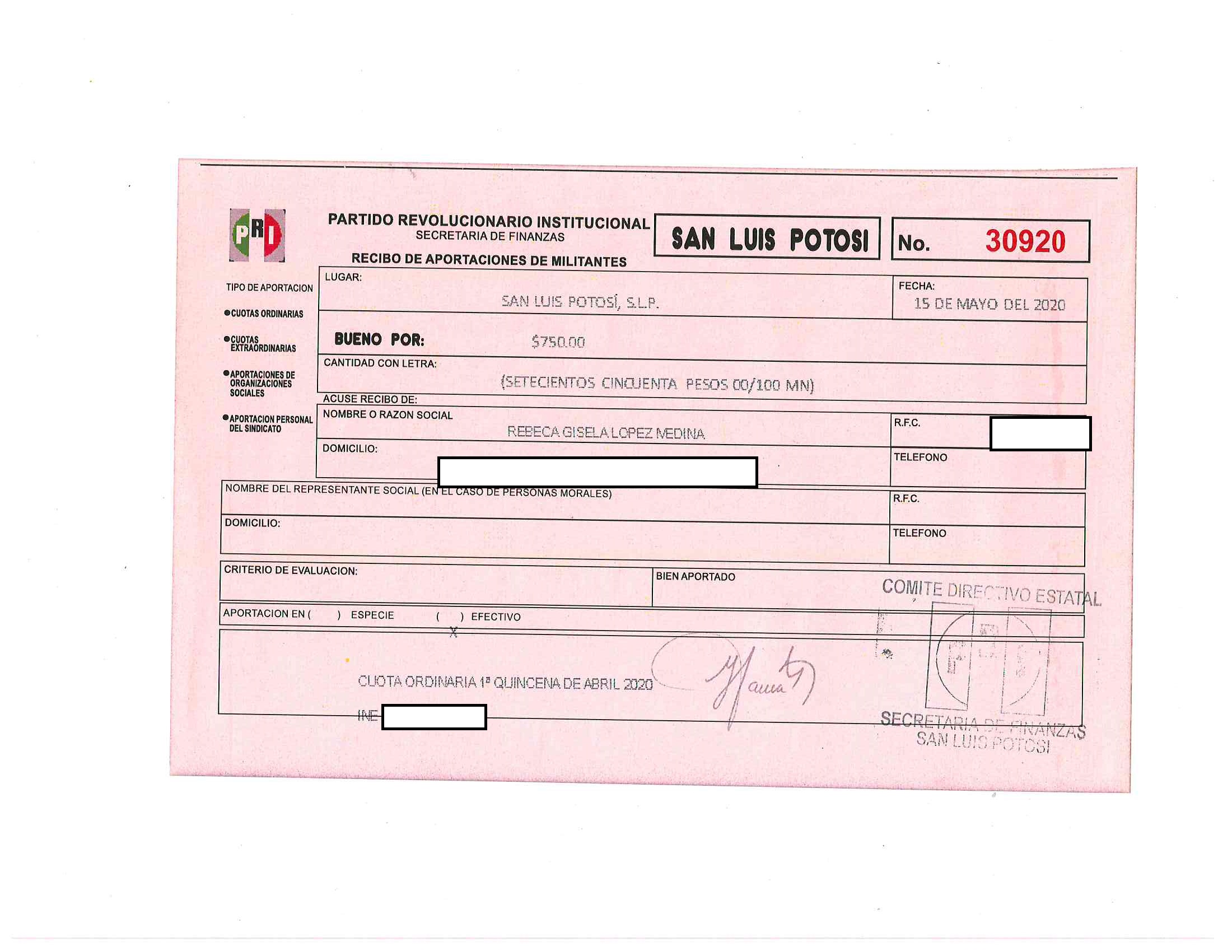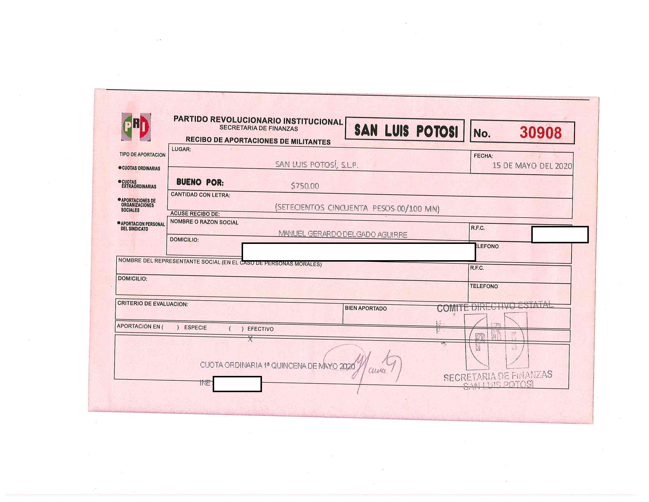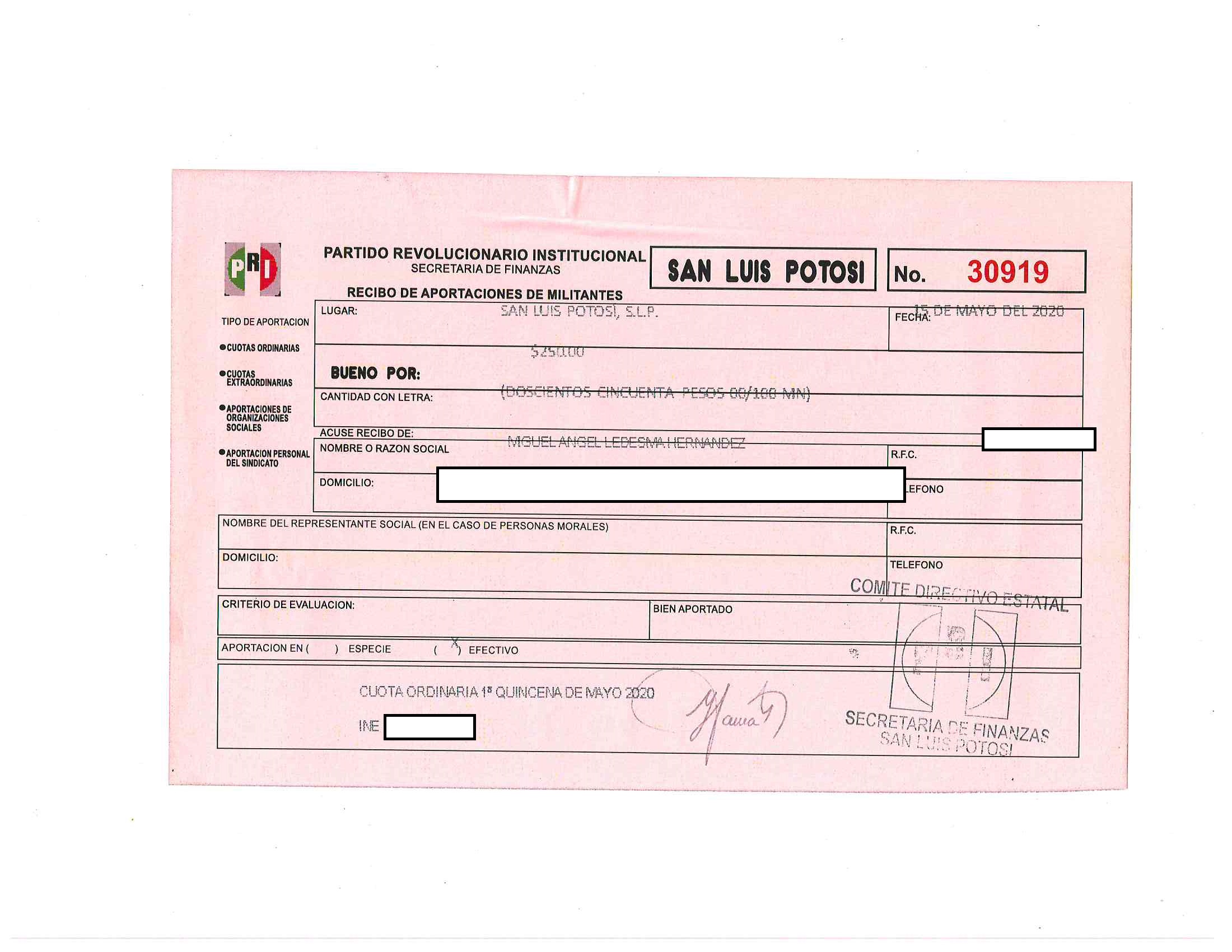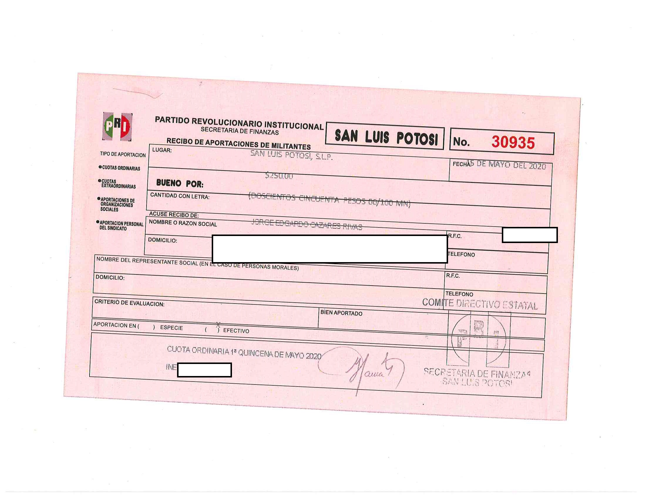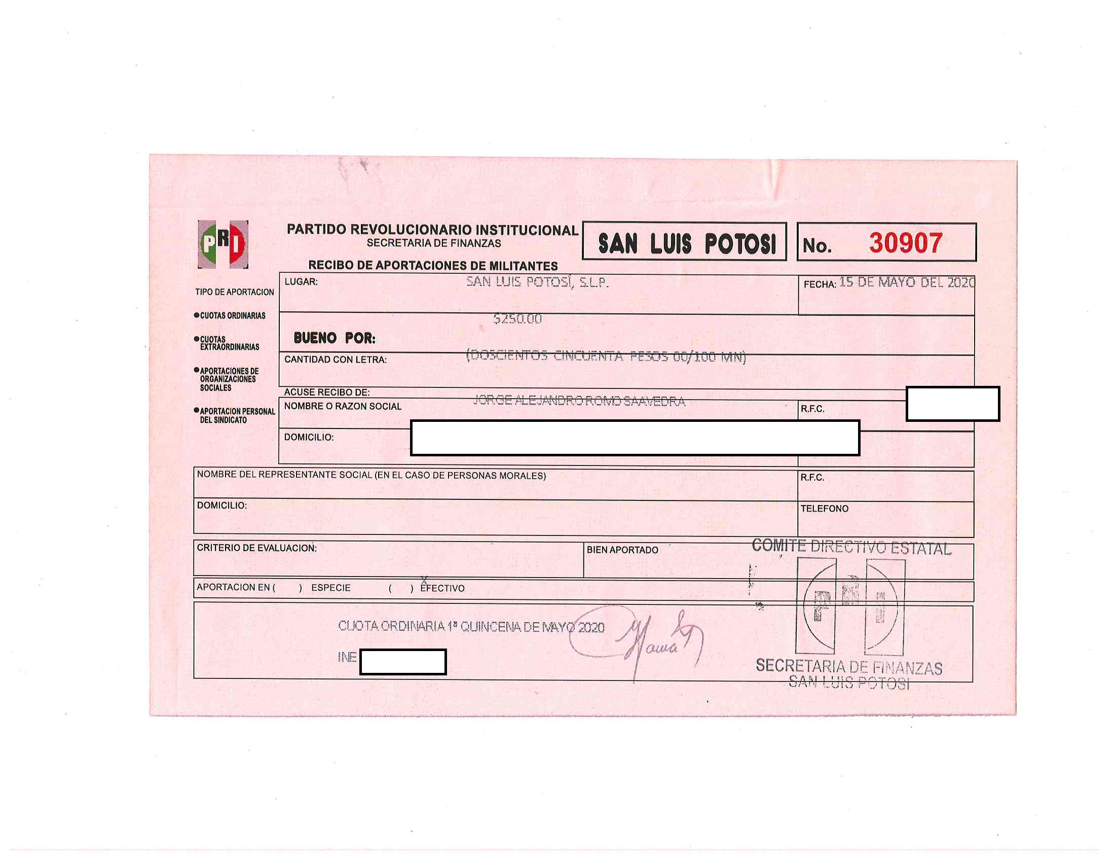 Cuotas ordinarias y extraordinarias de militantes LTAIPSLP90FVIII Las cuotas o aportaciones ordinarias y extraordinarias de militantes, afiliados, participantes o simpatizantes. Dichas cuotas o aportaciones deberán estar especificadas en los documentos que el Órgano electoral correspondiente emita anualmente. Tabla Campos