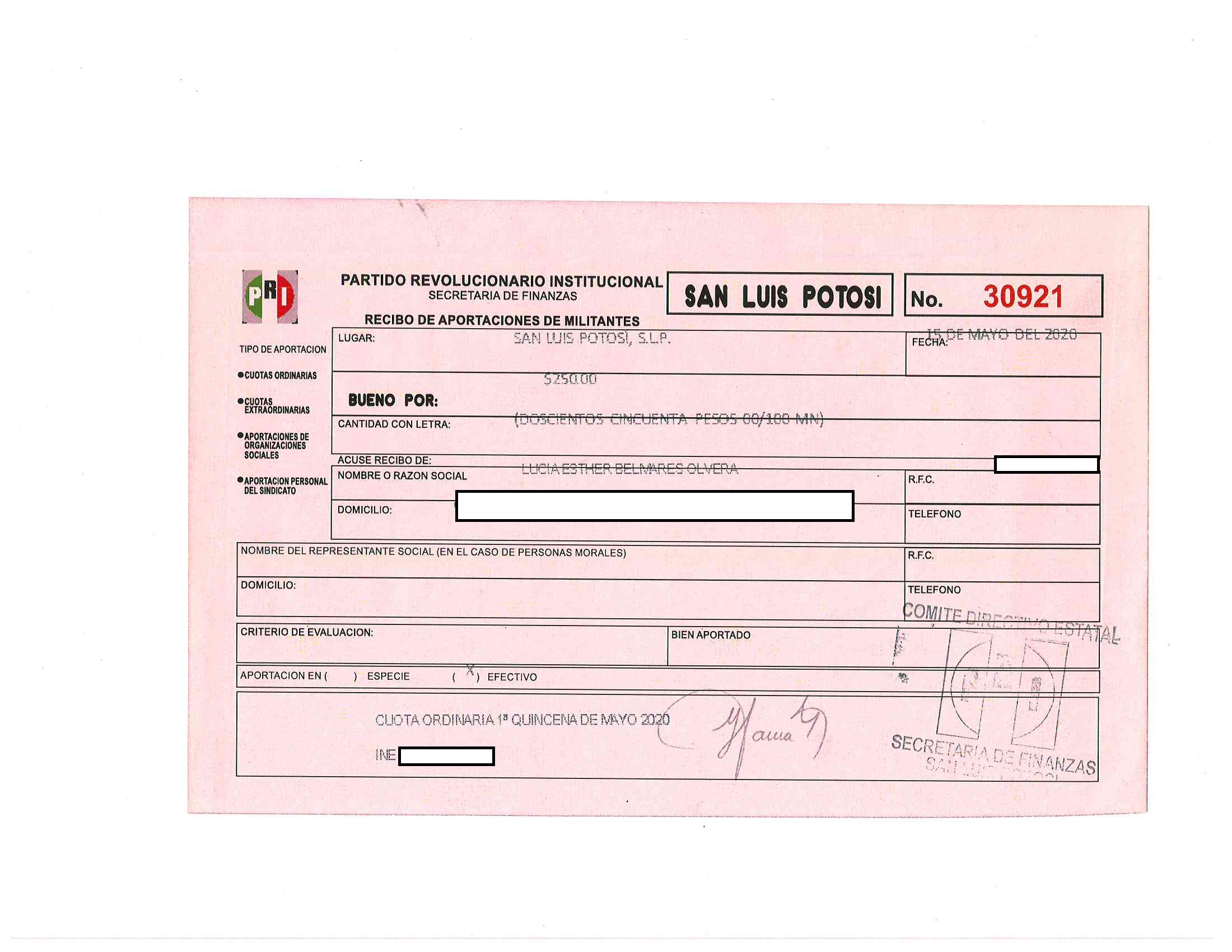 2020 01/05/2020 31/05/2020 ordinaria LUCIA ESTHER BELMARES OLVERA 15/05/2020 250 11650 http://www.cegaipslp.org.mx/HV2020Dos.nsf/nombre_de_la_vista/4C5B02582D362E528625859A0001018C/$File/30921+LUCIA+ESTHER+BELMARES+OLVERA.jpg SECRETARIA DE FINANZAS Y ADMINISTRACION 31/05/2020 31/05/2020 NO SE GENERA