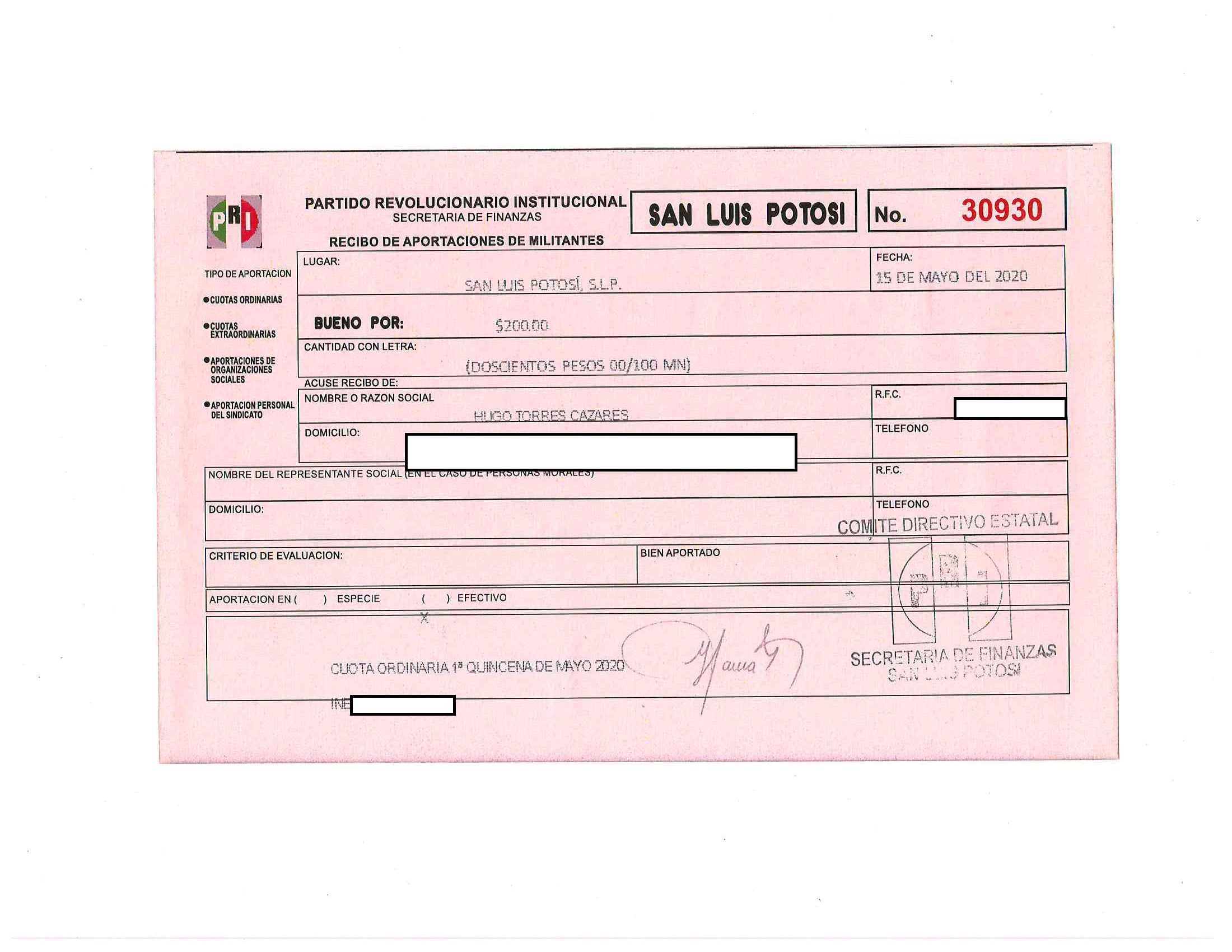 2020 01/05/2020 31/05/2020 ordinaria HUGO TORRES CAZARES 15/05/2020 200 15050 http://www.cegaipslp.org.mx/HV2020Dos.nsf/nombre_de_la_vista/4CDE1B35DEAA7C888625859A0001DA26/$File/30930+HUGO+TORRES+CAZARES.jpg SECRETARIA DE FINANZAS Y ADMINISTRACION 31/05/2020 31/05/2020 NO SE GENERA