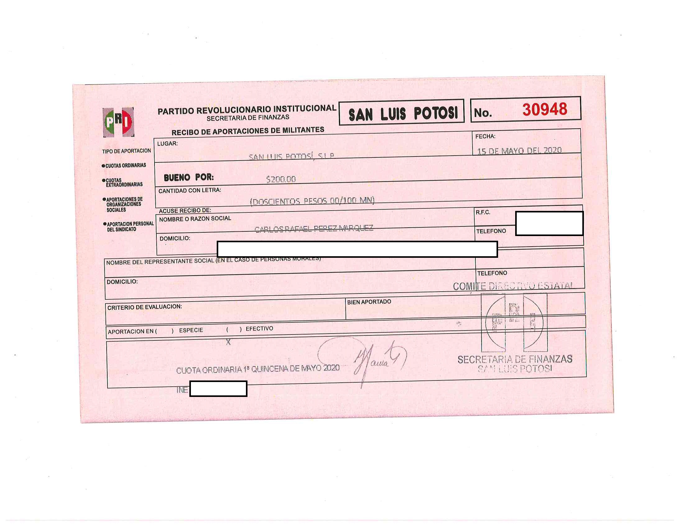 2020 01/05/2020 31/05/2020 ordinaria CARLOS RAFAEL PEREZ MARQUEZ 15/05/2020 200 21600 http://www.cegaipslp.org.mx/HV2020Dos.nsf/nombre_de_la_vista/A3FEBE2A6BFEE6158625859A0003F5DE/$File/30948+CARLOS+RAFAEL+PEREZ+MARQUEZ.jpg SECRETARIA DE FINANZAS Y ADMINISTRACION 31/05/2020 31/05/2020 NO SE GENERA