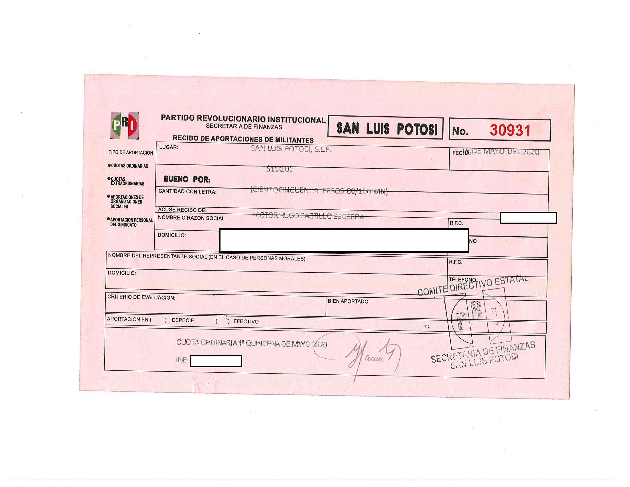 2020 01/05/2020 31/05/2020 ordinaria VICTOR HUGO CASTILLO BECERRA 15/05/2020 150 15200 http://www.cegaipslp.org.mx/HV2020Dos.nsf/nombre_de_la_vista/C74C0D12D928EA708625859A0002615F/$File/30931+VICTOR+HUGO+CASTILLO+BECERRA.jpg SECRETARIA DE FINANZAS Y ADMINISTRACION 31/05/2020 31/05/2020 NO SE GENERA