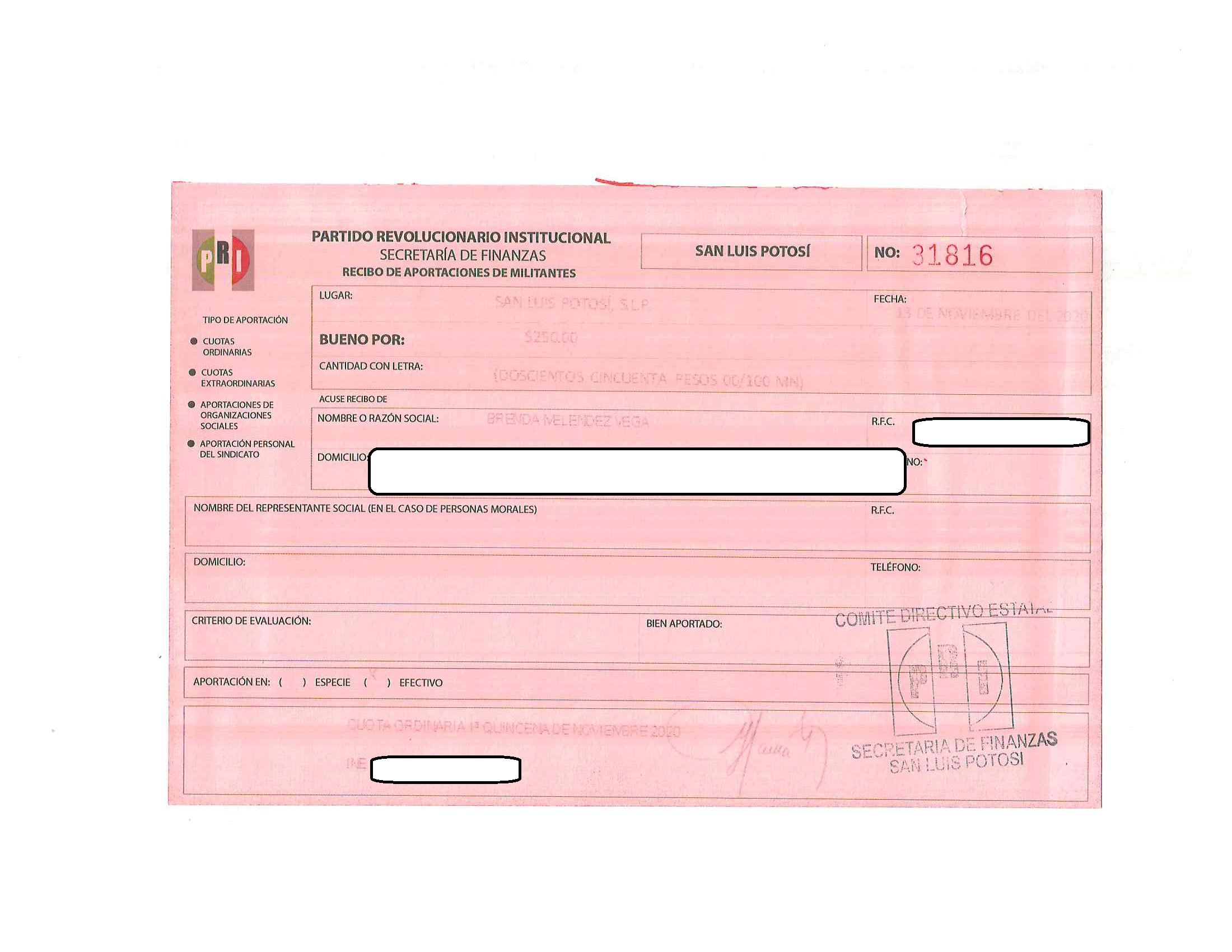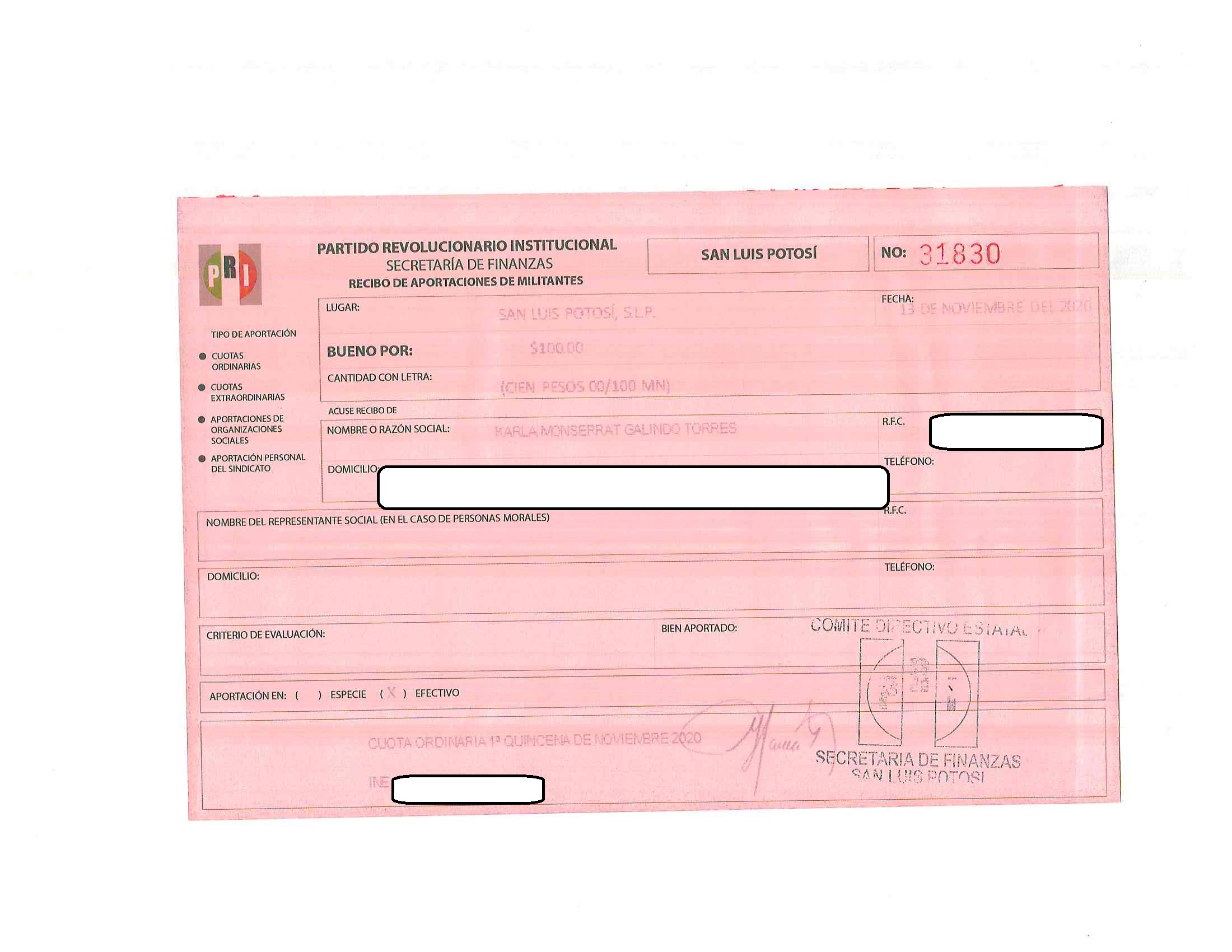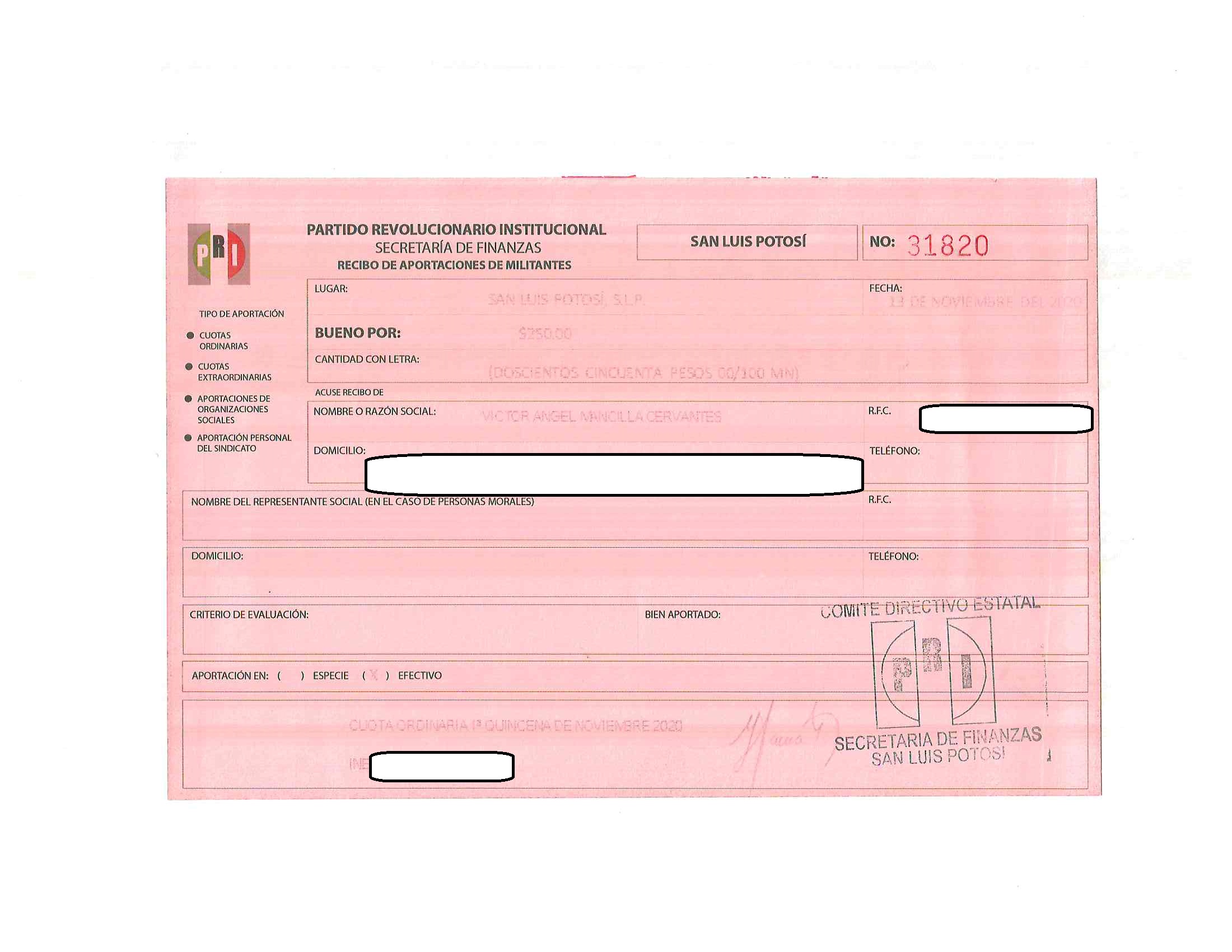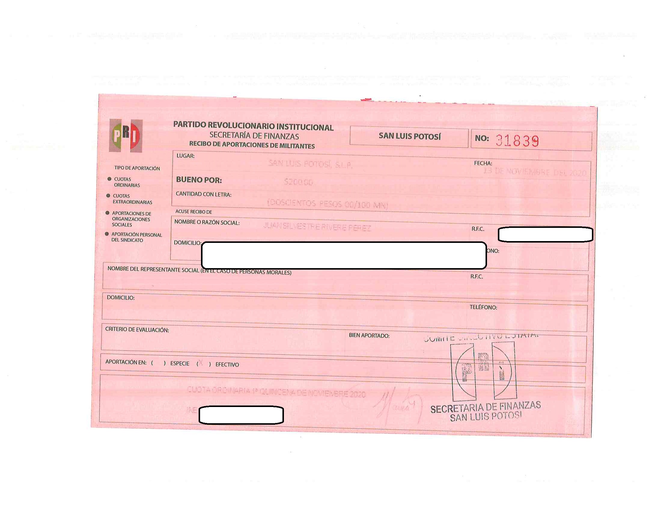 Cuotas ordinarias y extraordinarias de militantes LTAIPSLP90FVIII Las cuotas o aportaciones ordinarias y extraordinarias de militantes, afiliados, participantes o simpatizantes. Dichas cuotas o aportaciones deberán estar especificadas en los documentos que el Órgano electoral correspondiente emita anualmente. Tabla Campos