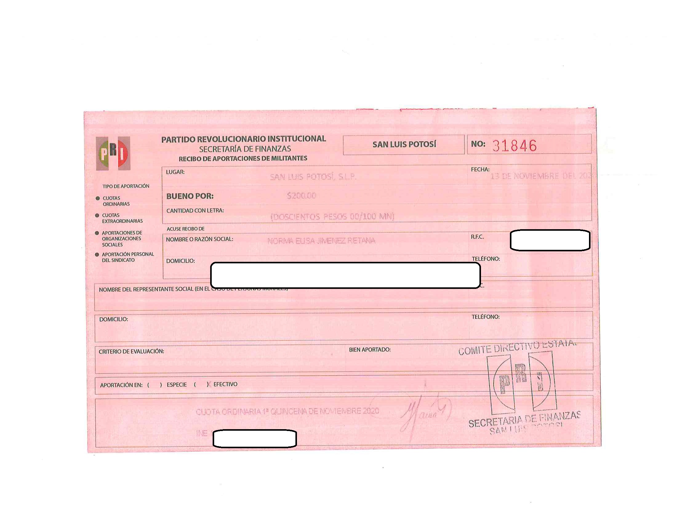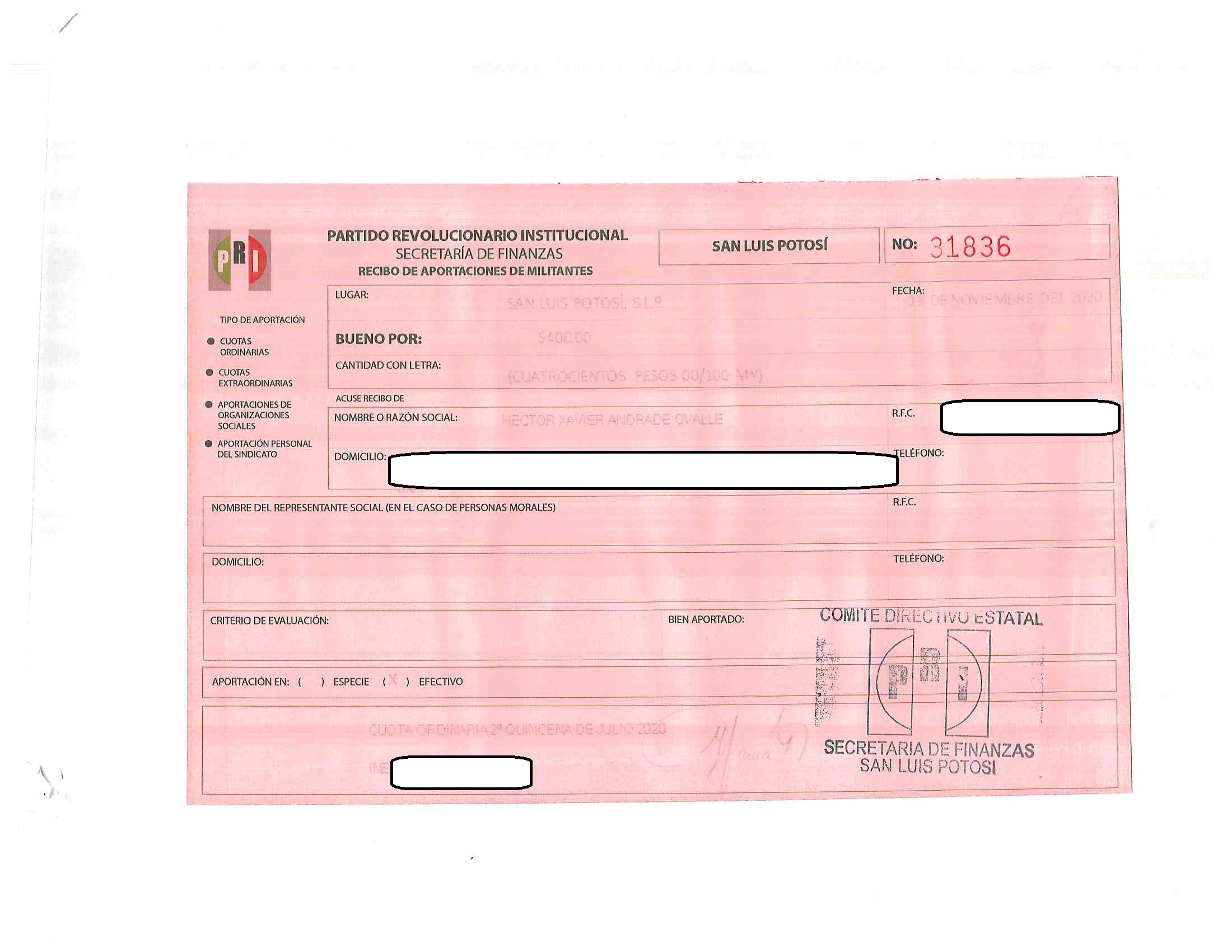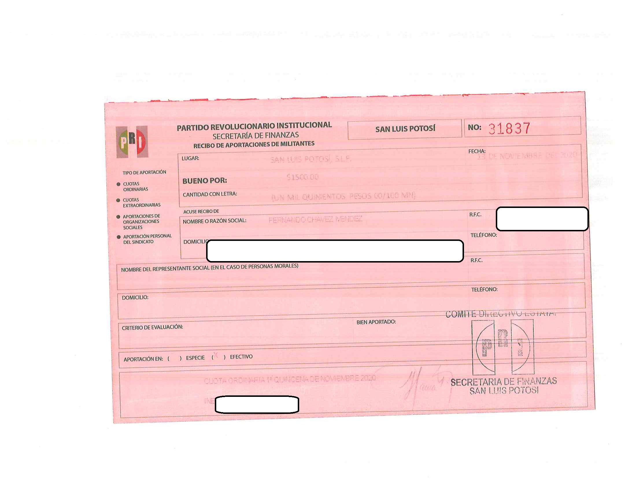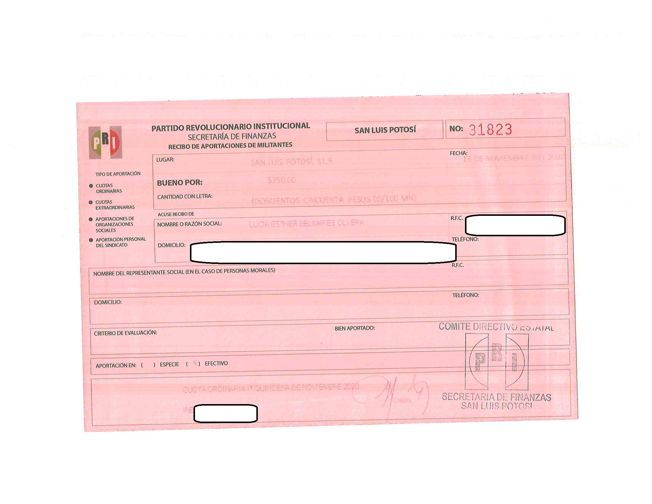 Cuotas ordinarias y extraordinarias de militantes LTAIPSLP90FVIII Las cuotas o aportaciones ordinarias y extraordinarias de militantes, afiliados, participantes o simpatizantes. Dichas cuotas o aportaciones deberán estar especificadas en los documentos que el Órgano electoral correspondiente emita anualmente. Tabla Campos