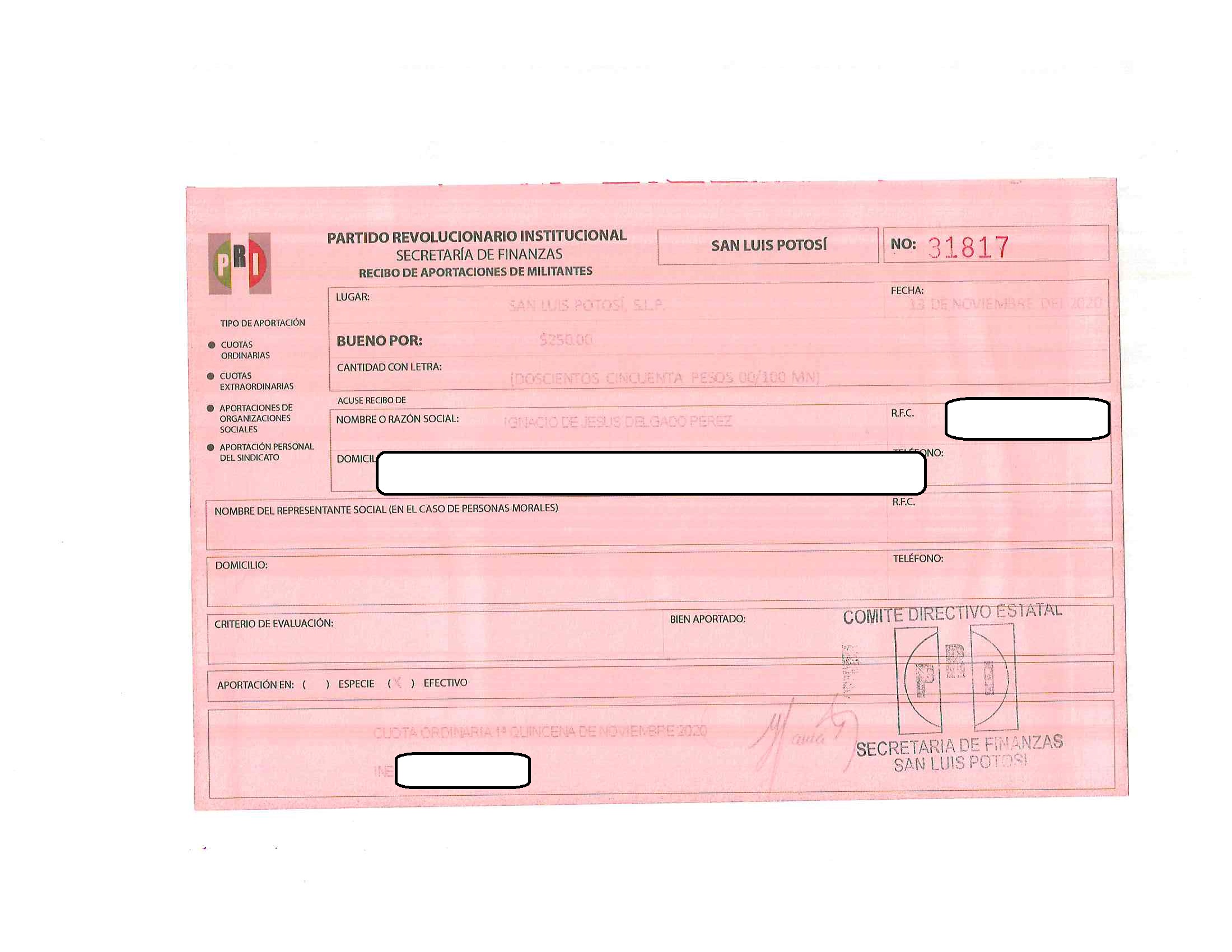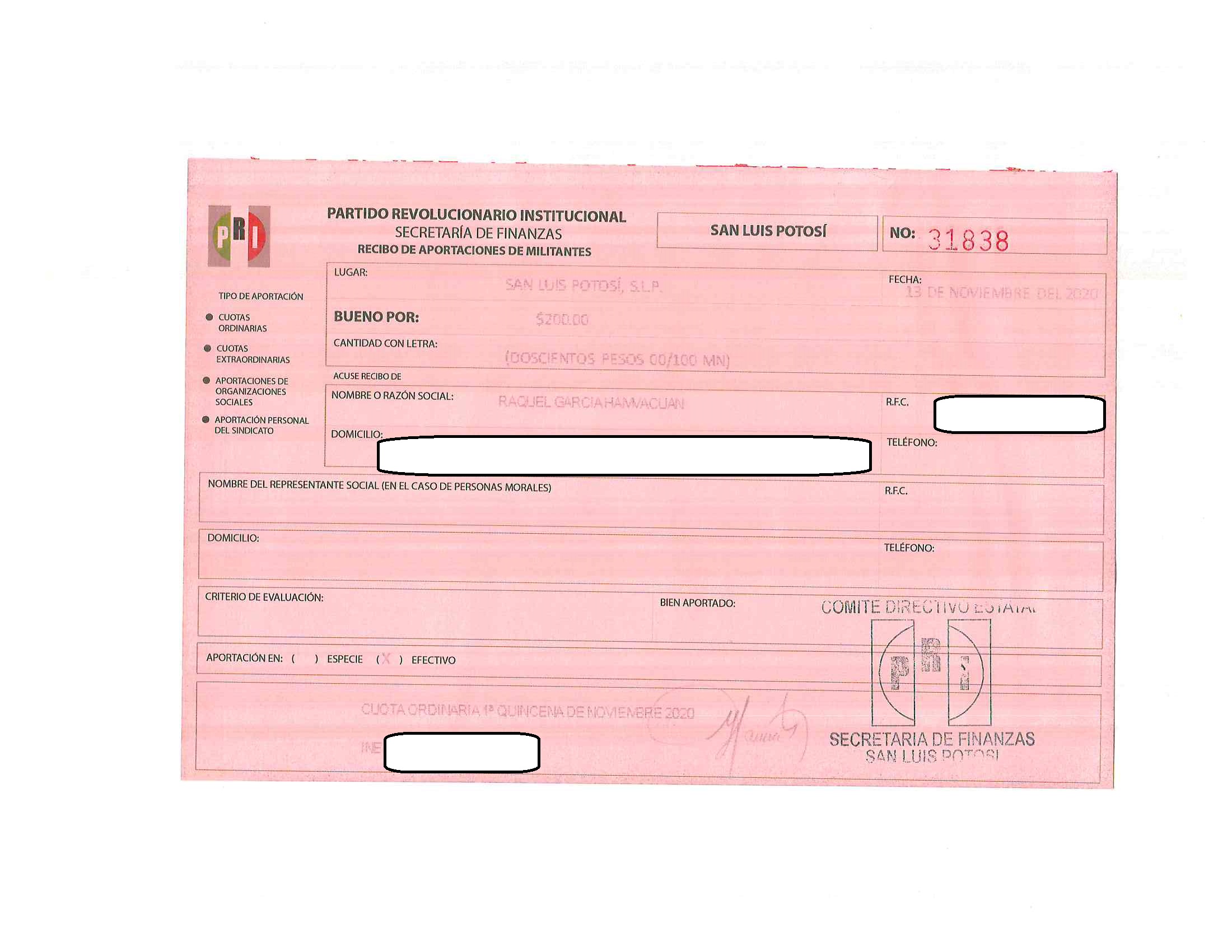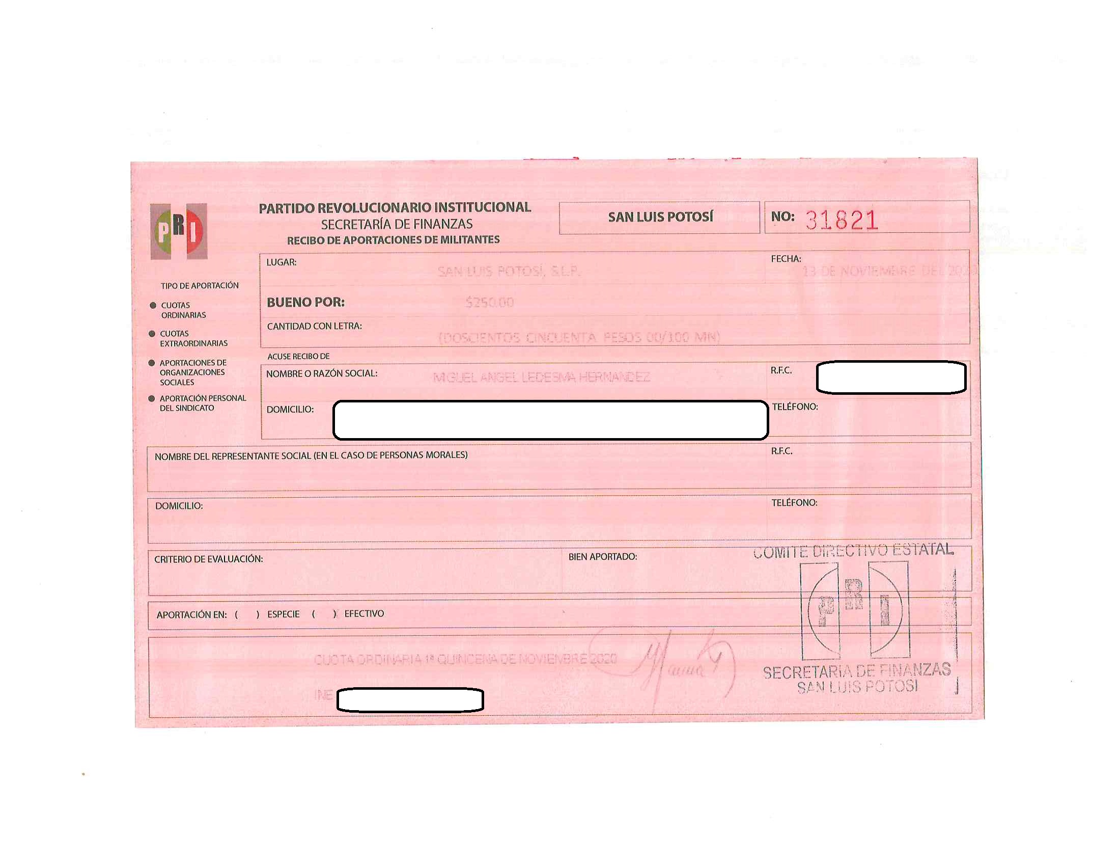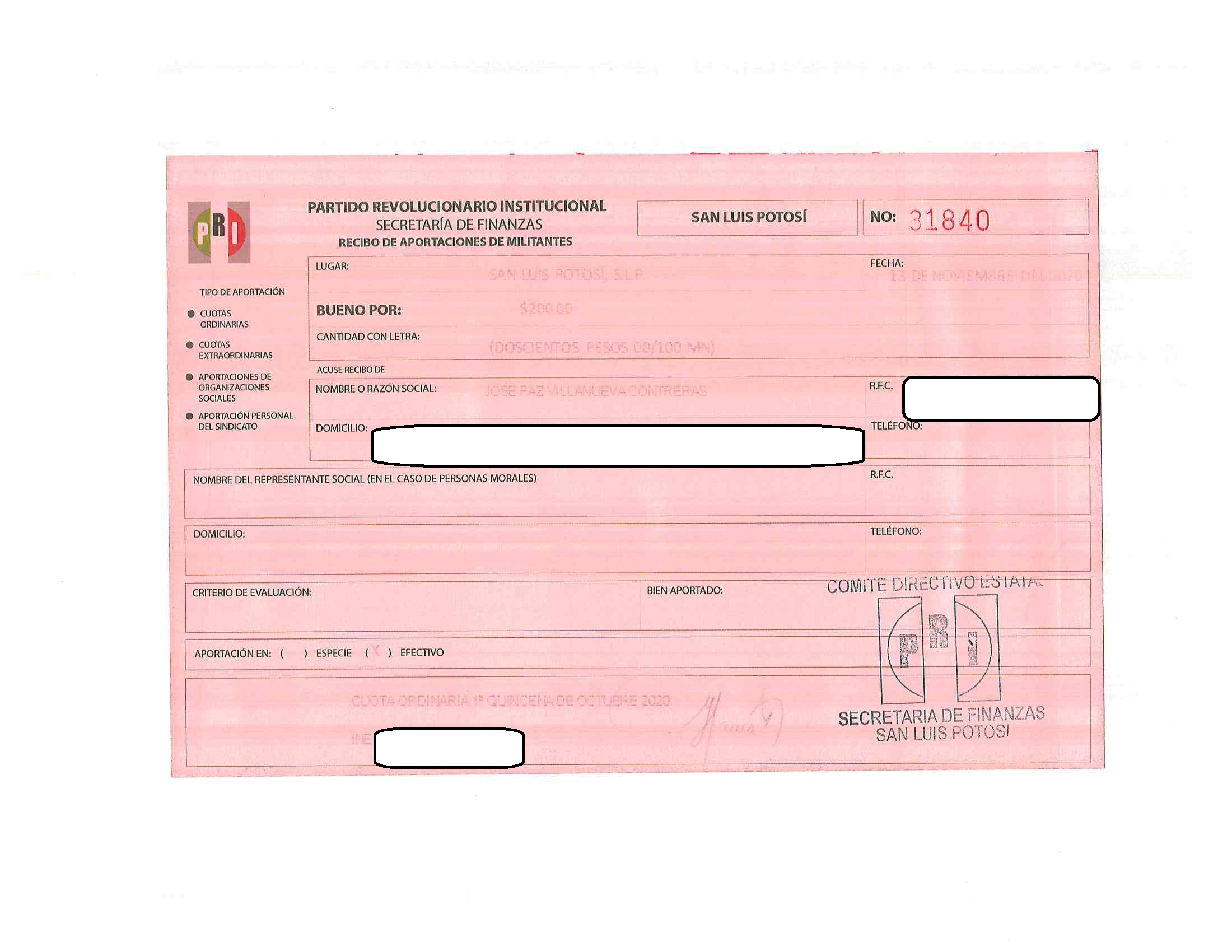 Cuotas ordinarias y extraordinarias de militantes LTAIPSLP90FVIII Las cuotas o aportaciones ordinarias y extraordinarias de militantes, afiliados, participantes o simpatizantes. Dichas cuotas o aportaciones deberán estar especificadas en los documentos que el Órgano electoral correspondiente emita anualmente. Tabla Campos