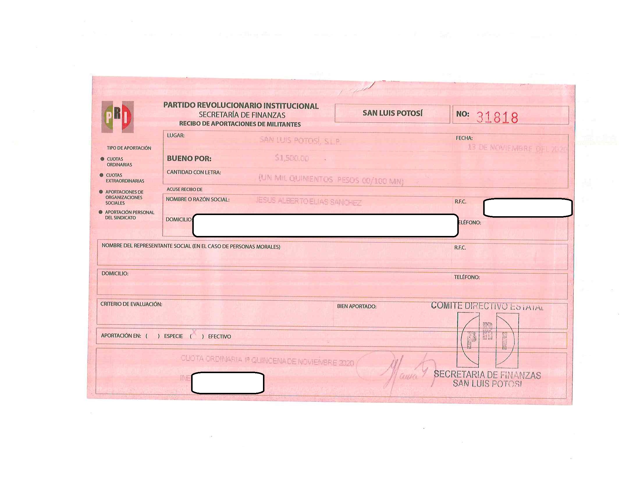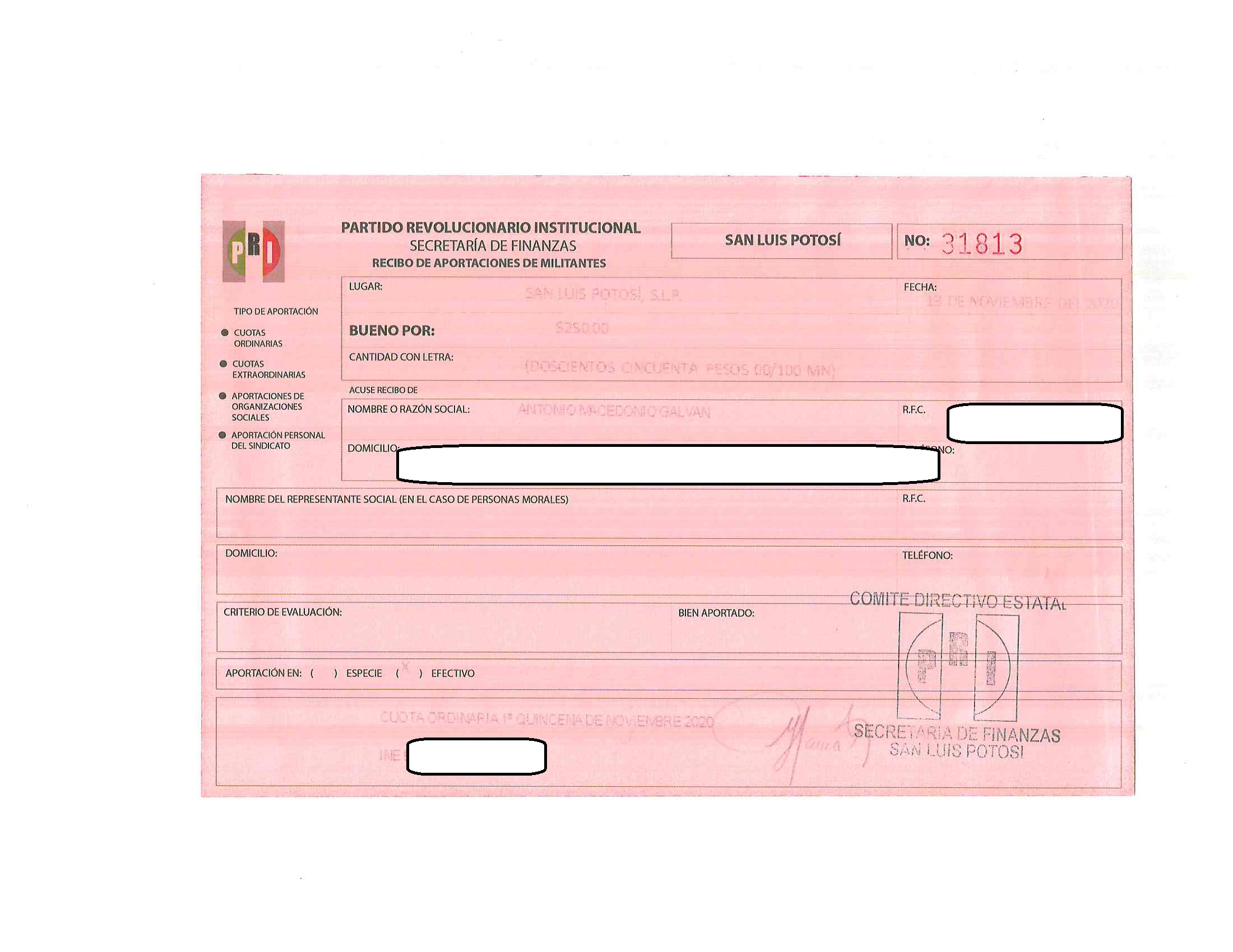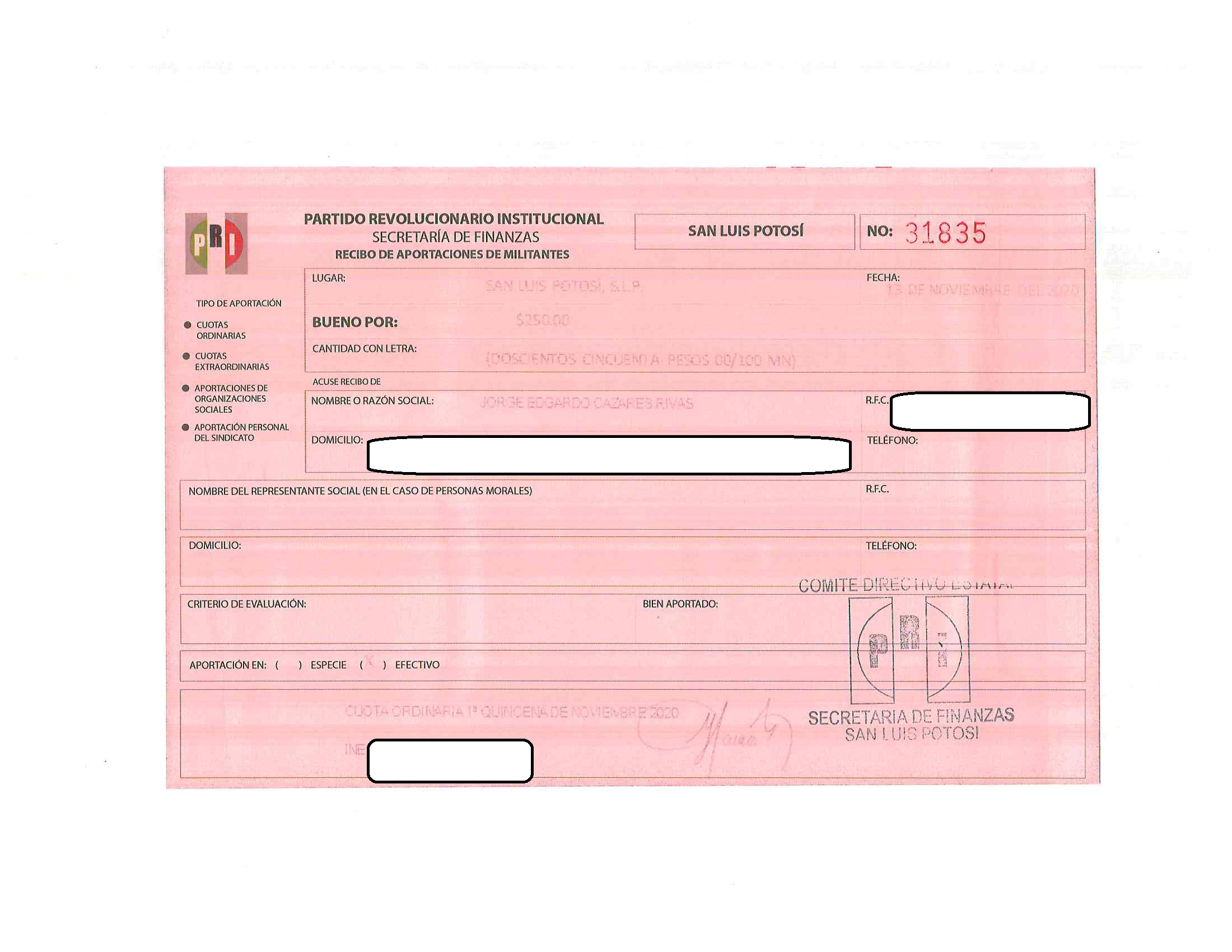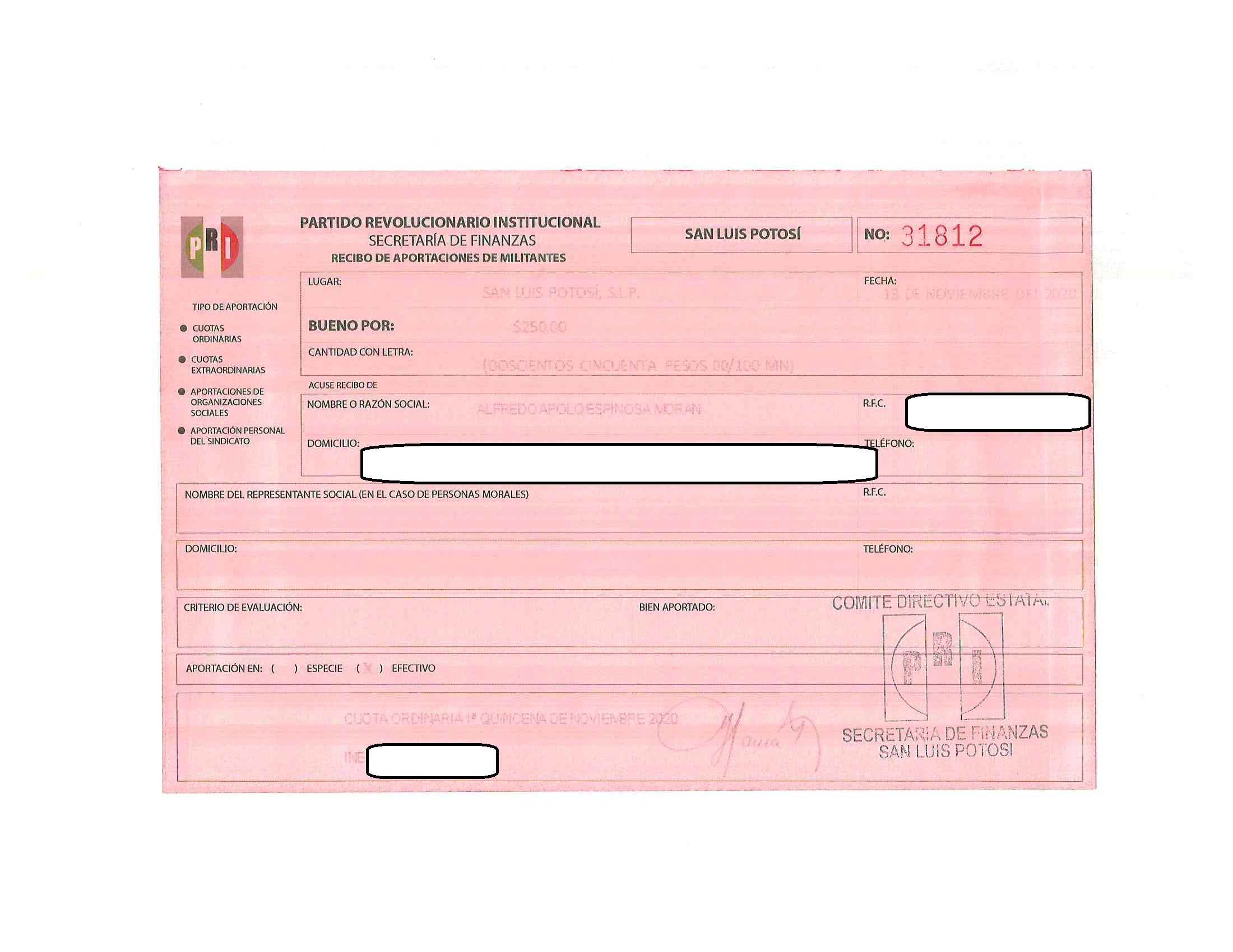 Cuotas ordinarias y extraordinarias de militantes LTAIPSLP90FVIII Las cuotas o aportaciones ordinarias y extraordinarias de militantes, afiliados, participantes o simpatizantes. Dichas cuotas o aportaciones deberán estar especificadas en los documentos que el Órgano electoral correspondiente emita anualmente. Tabla Campos