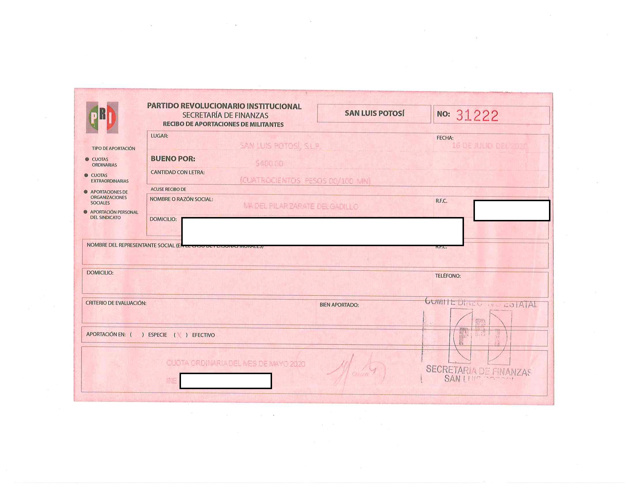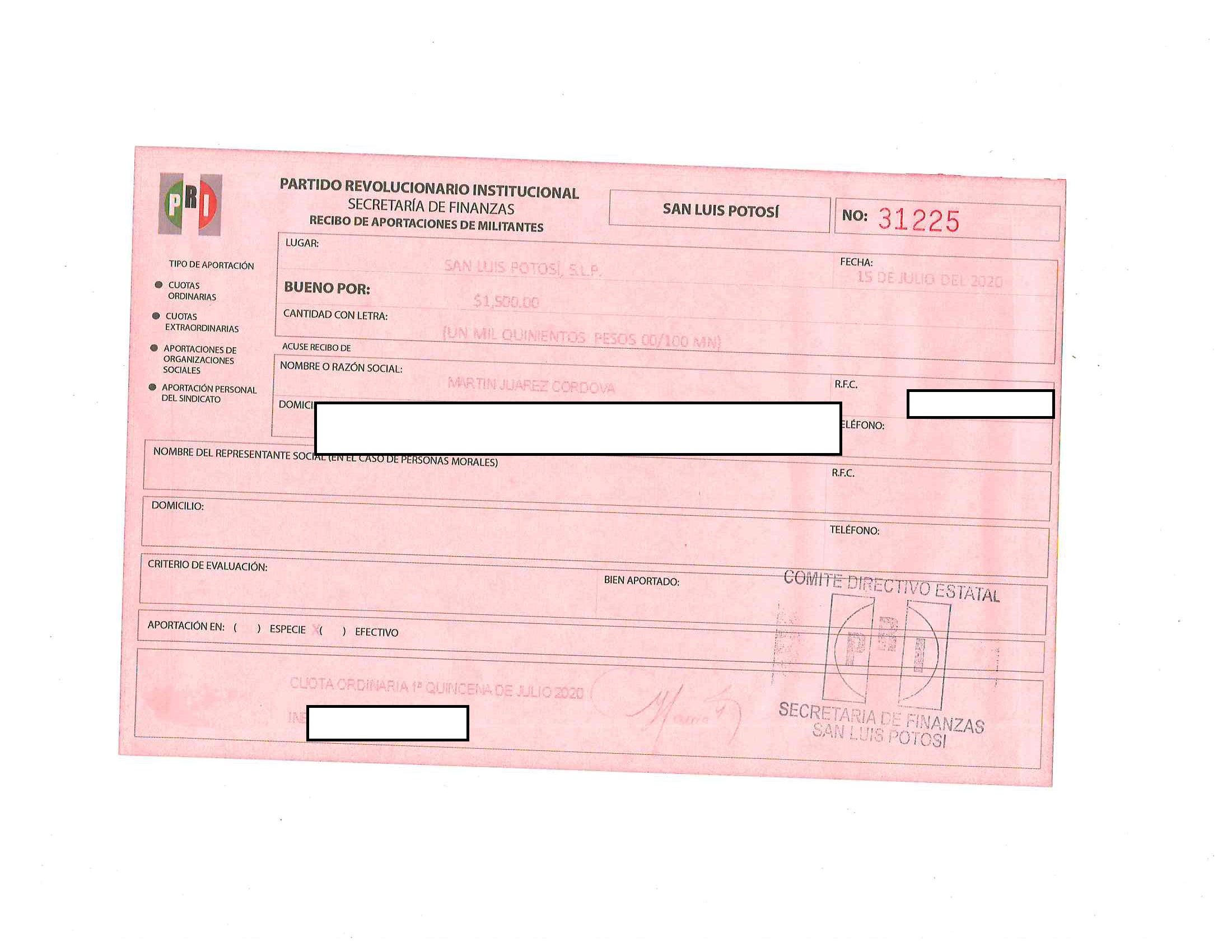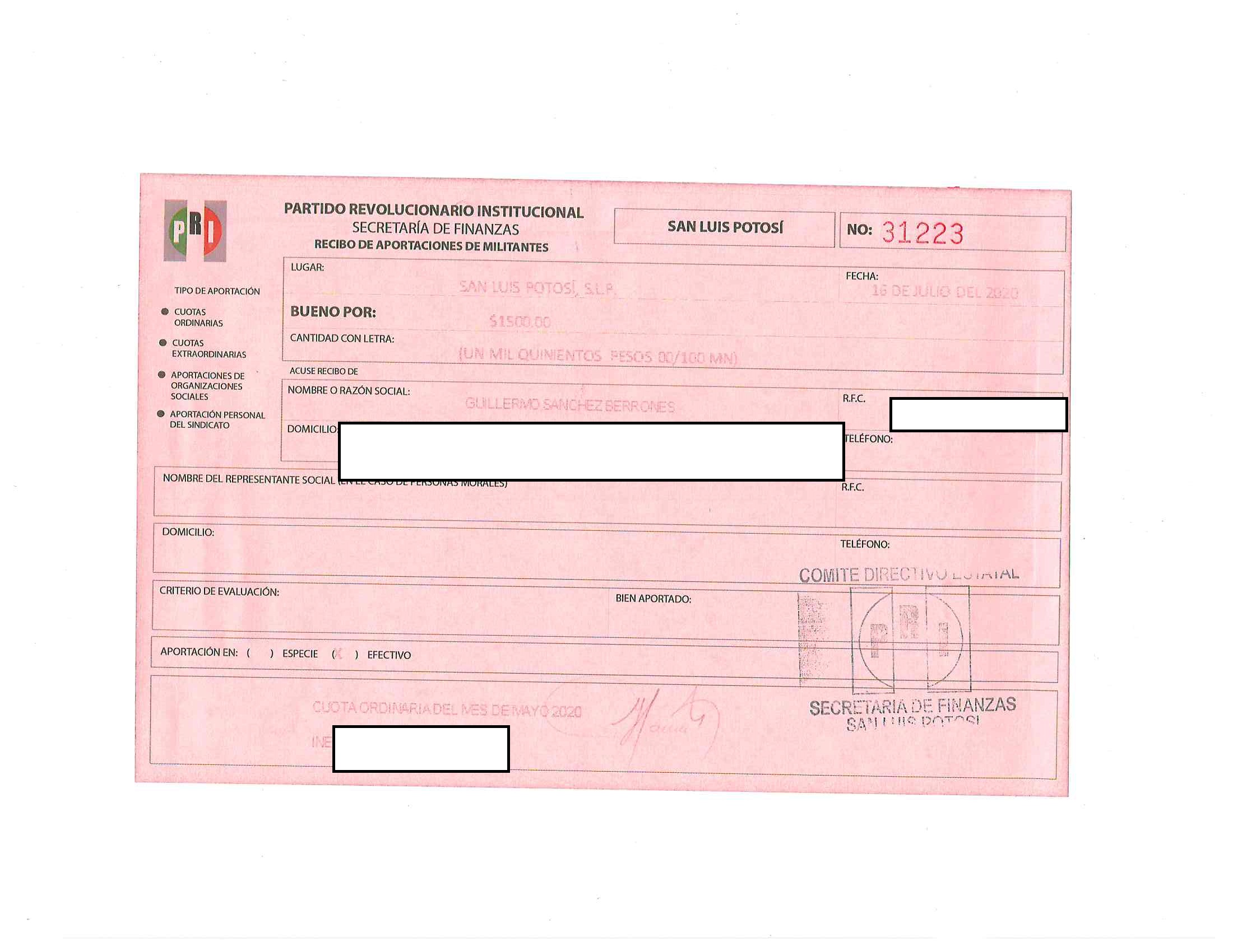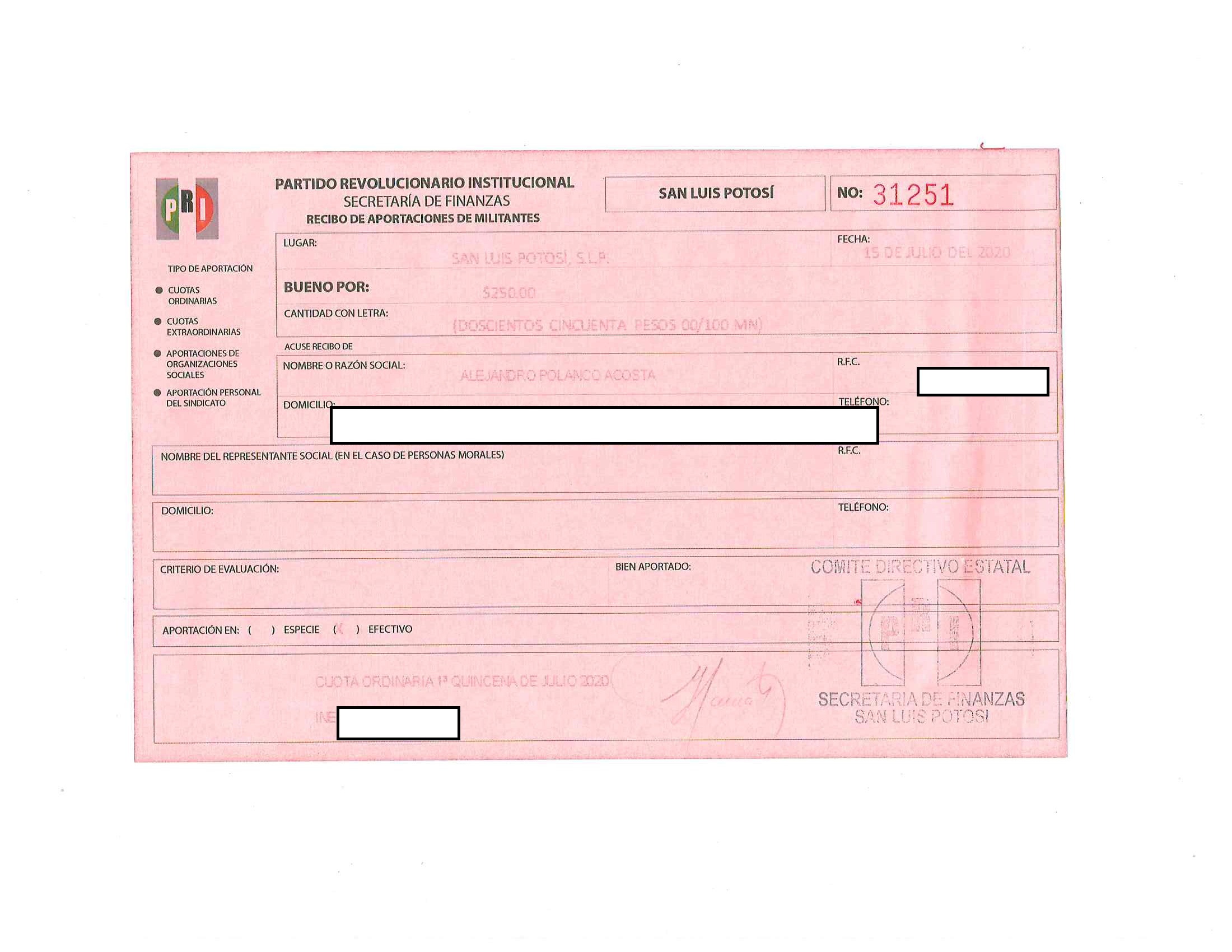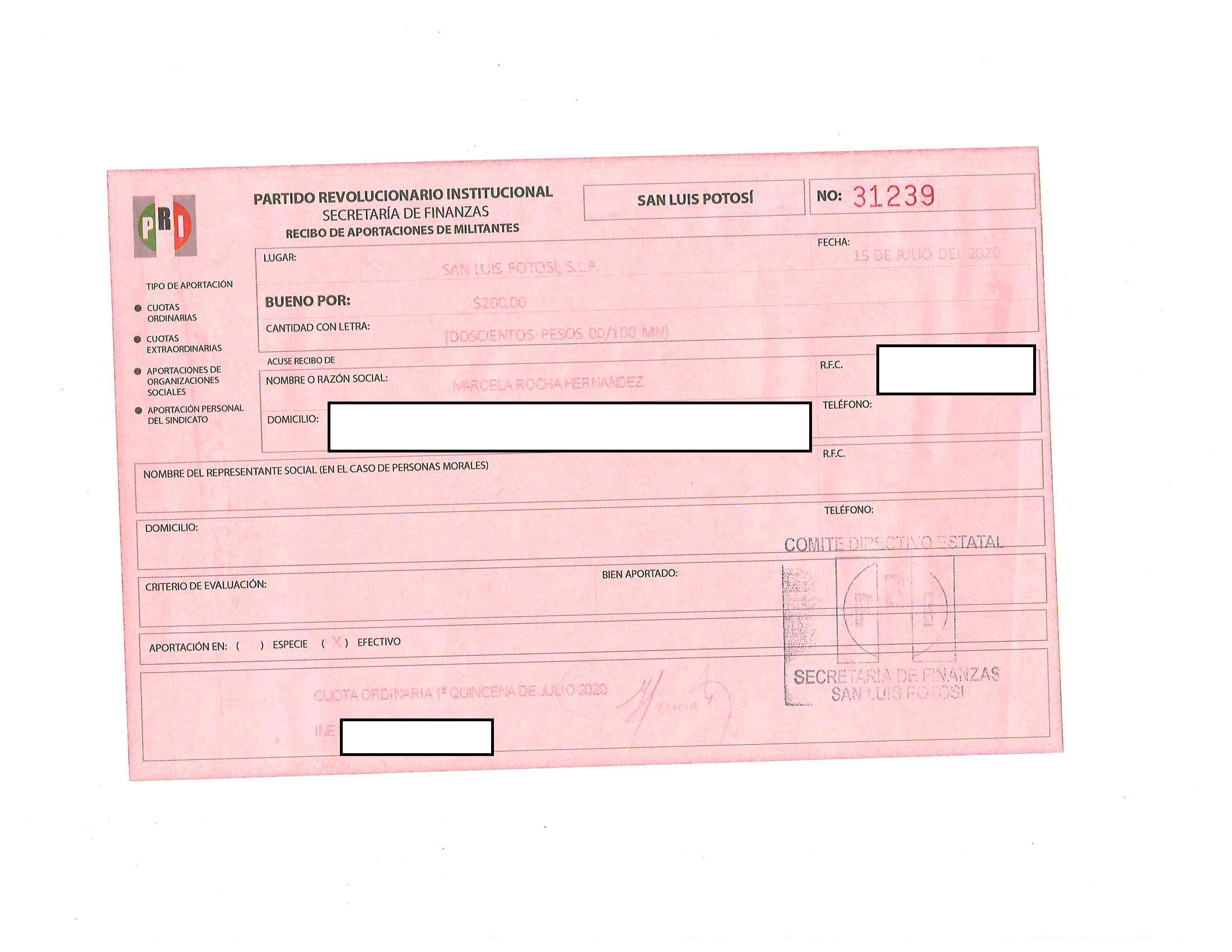 Cuotas ordinarias y extraordinarias de militantes LTAIPSLP90FVIII Las cuotas o aportaciones ordinarias y extraordinarias de militantes, afiliados, participantes o simpatizantes. Dichas cuotas o aportaciones deberán estar especificadas en los documentos que el Órgano electoral correspondiente emita anualmente. Tabla Campos