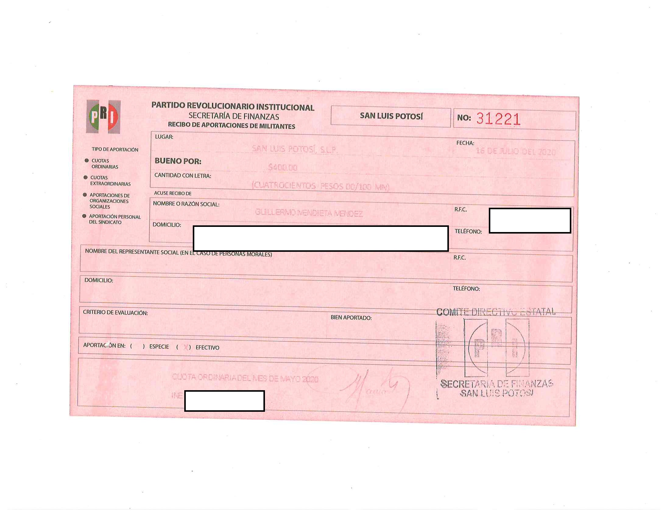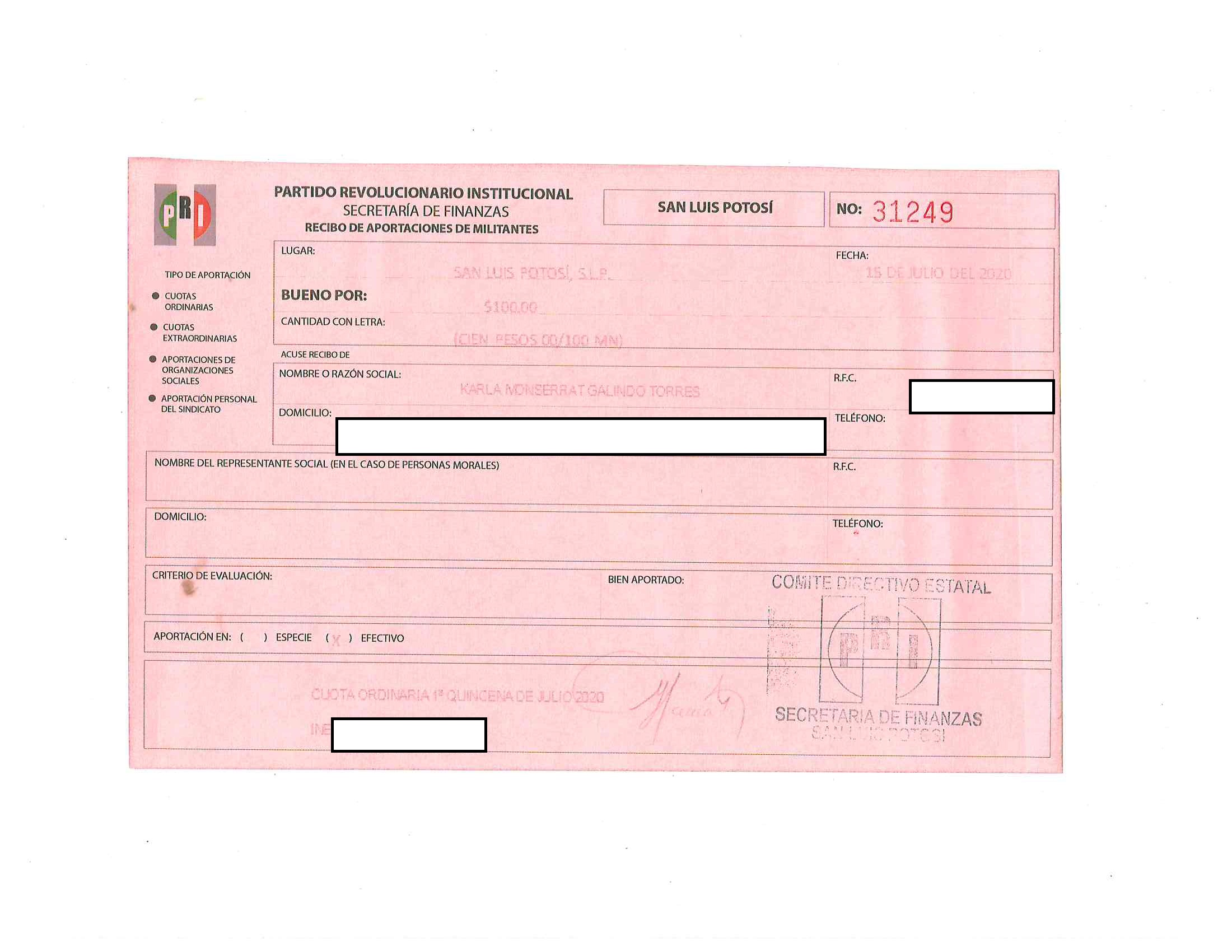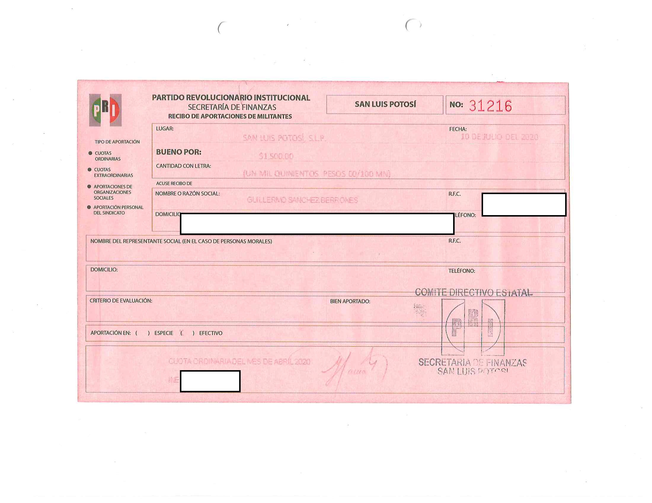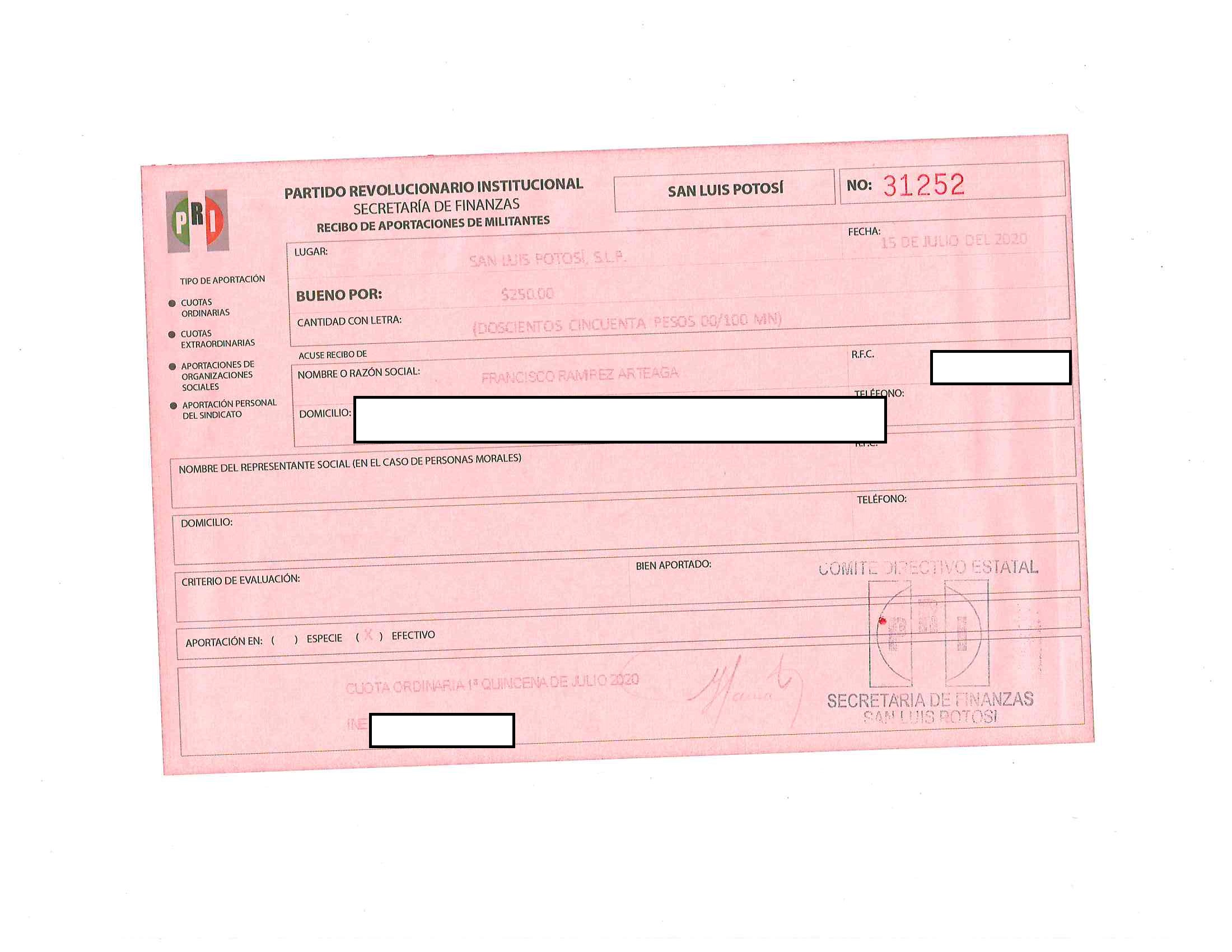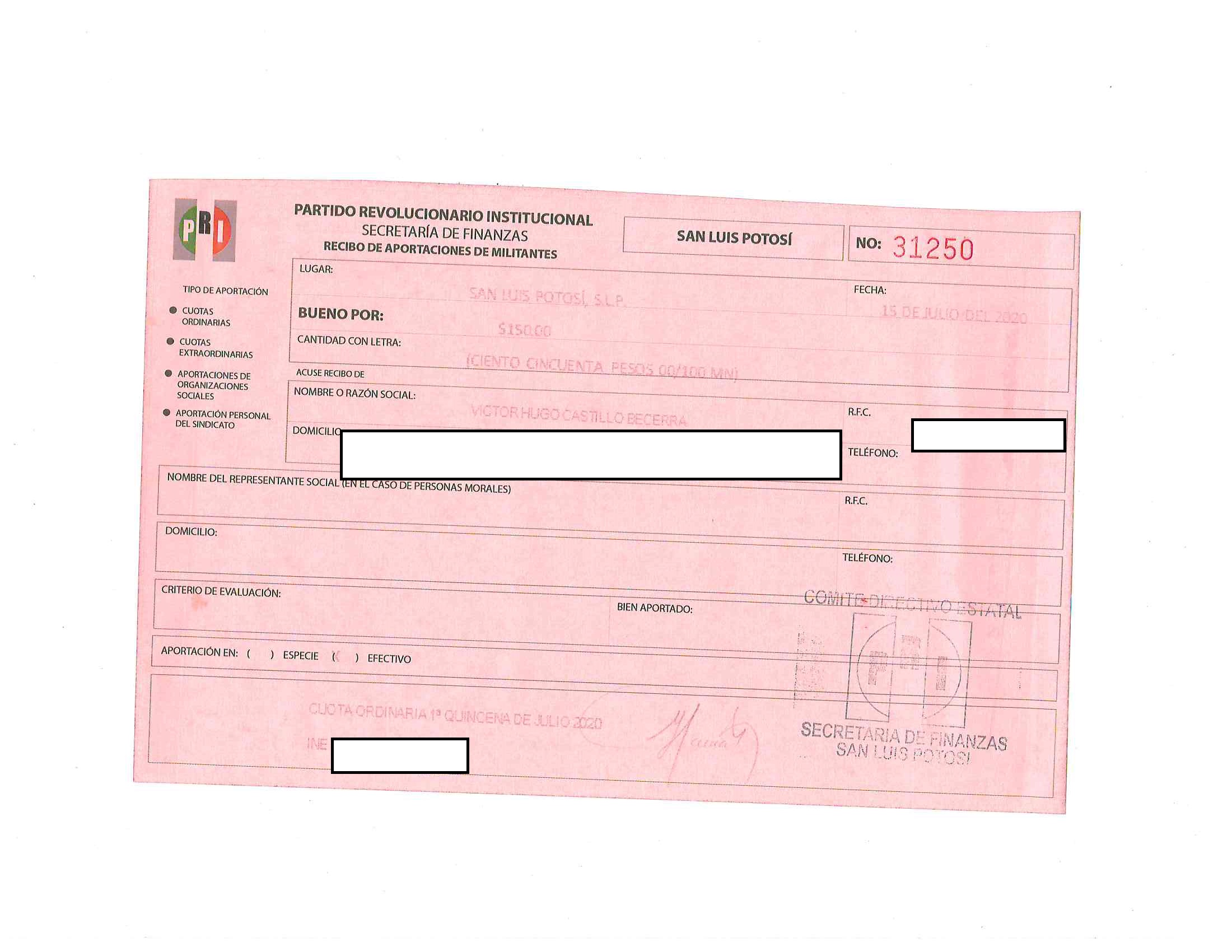 Cuotas ordinarias y extraordinarias de militantes LTAIPSLP90FVIII Las cuotas o aportaciones ordinarias y extraordinarias de militantes, afiliados, participantes o simpatizantes. Dichas cuotas o aportaciones deberán estar especificadas en los documentos que el Órgano electoral correspondiente emita anualmente. Tabla Campos