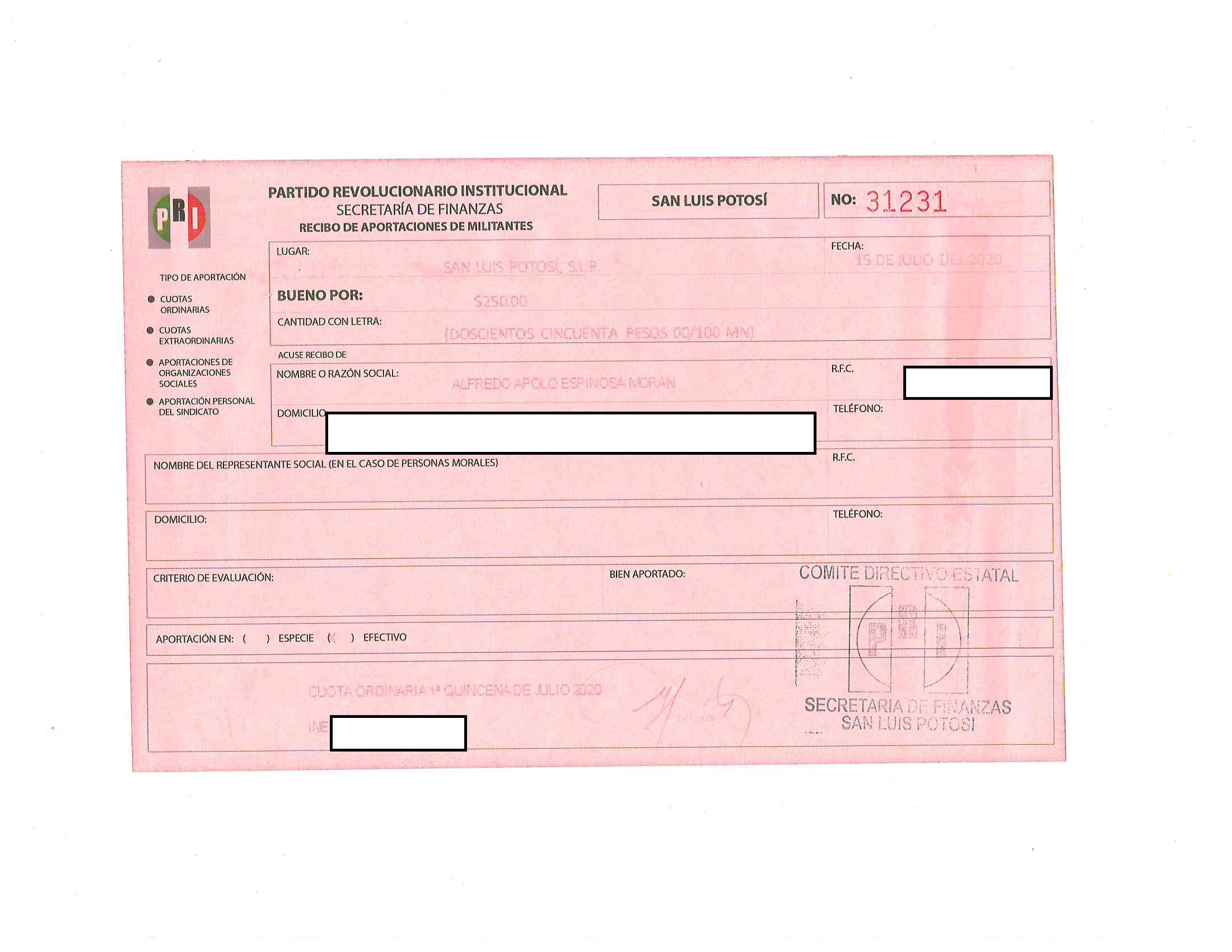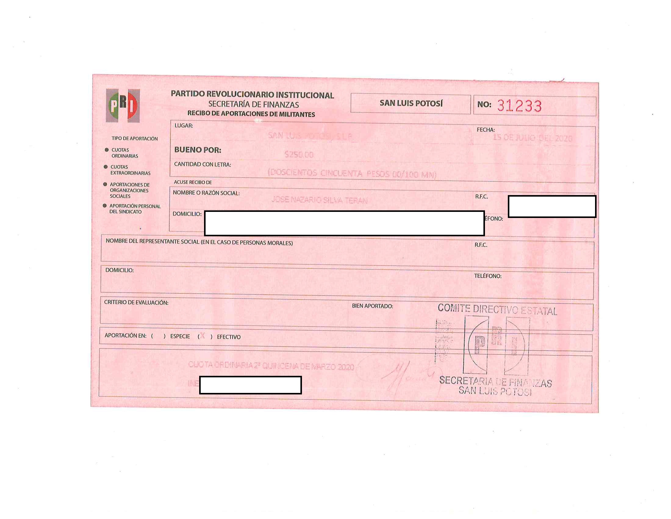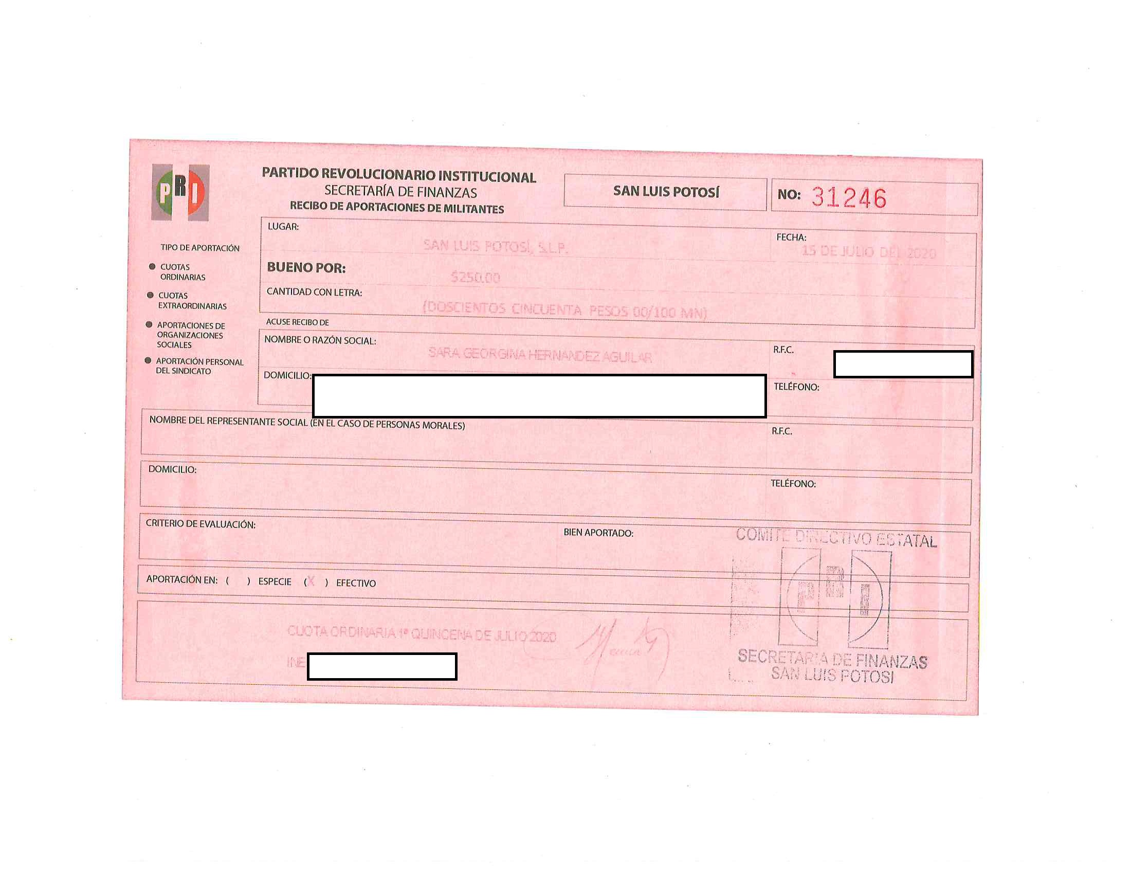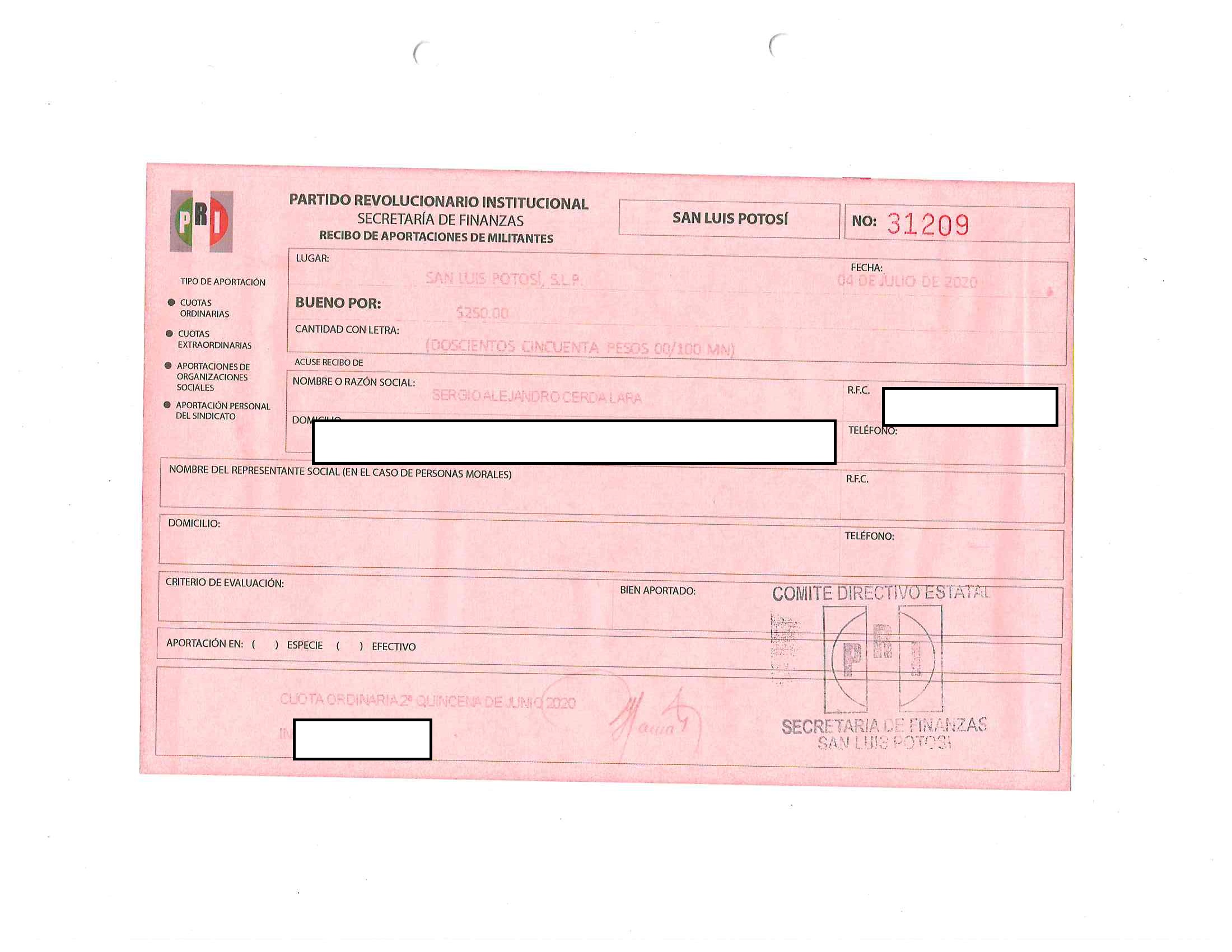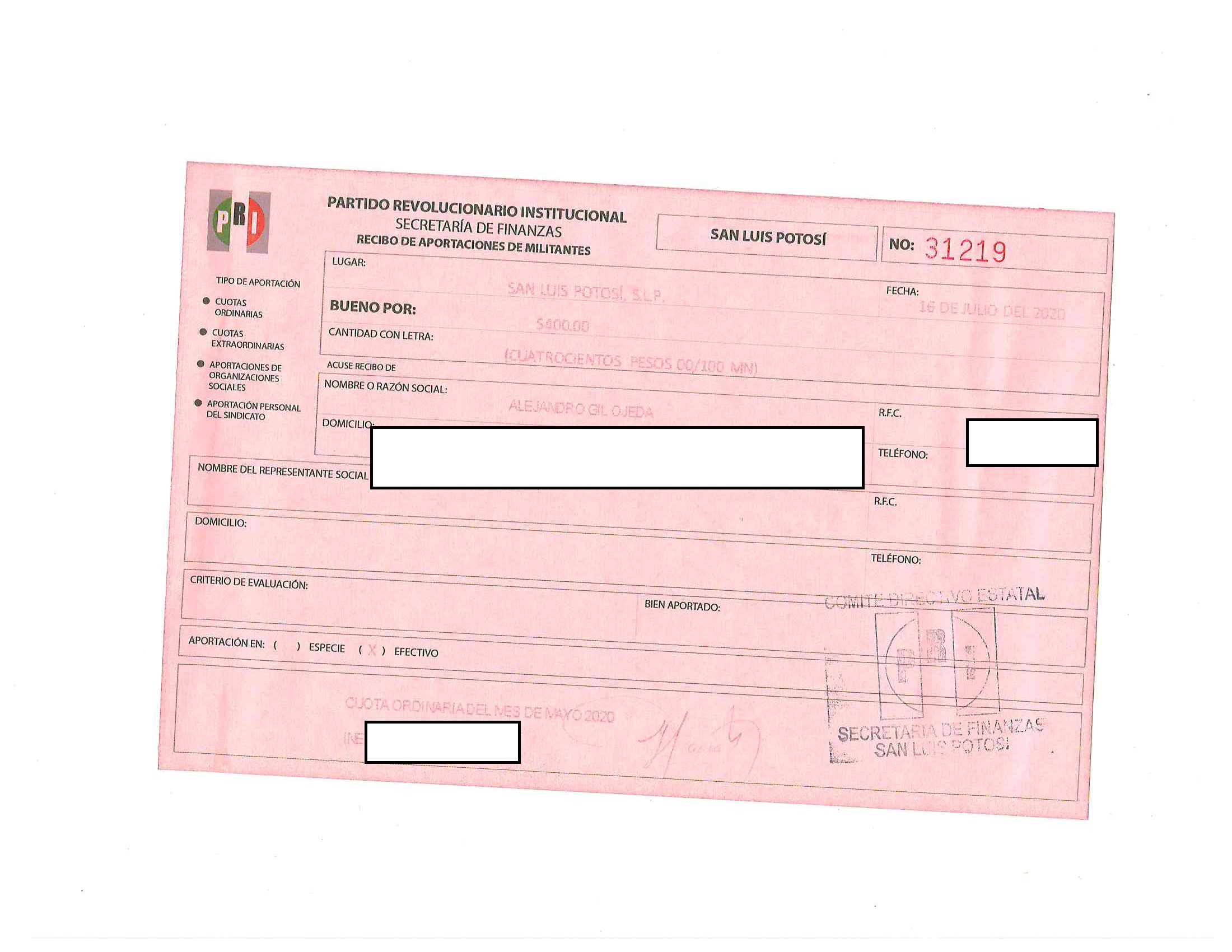 Cuotas ordinarias y extraordinarias de militantes LTAIPSLP90FVIII Las cuotas o aportaciones ordinarias y extraordinarias de militantes, afiliados, participantes o simpatizantes. Dichas cuotas o aportaciones deberán estar especificadas en los documentos que el Órgano electoral correspondiente emita anualmente. Tabla Campos