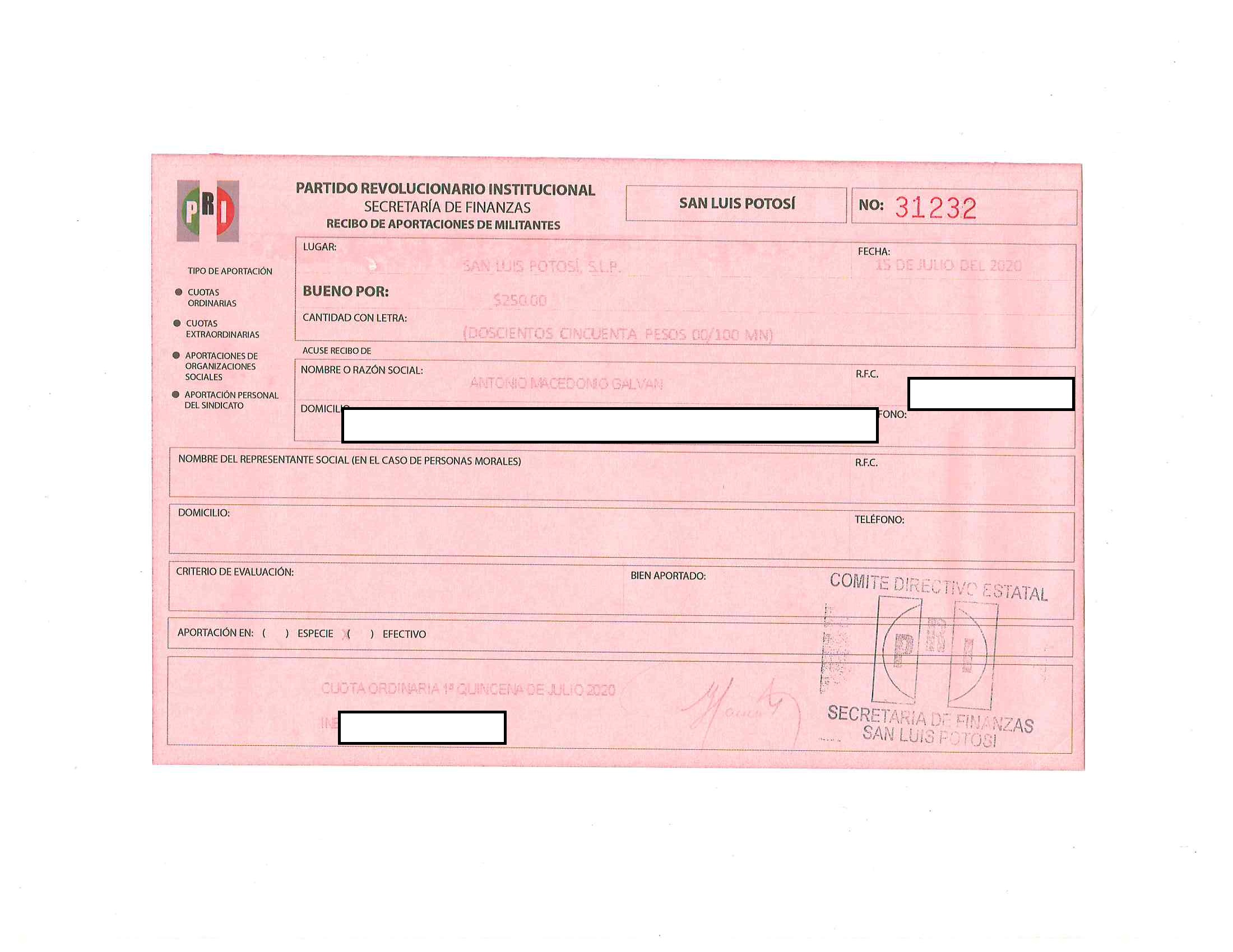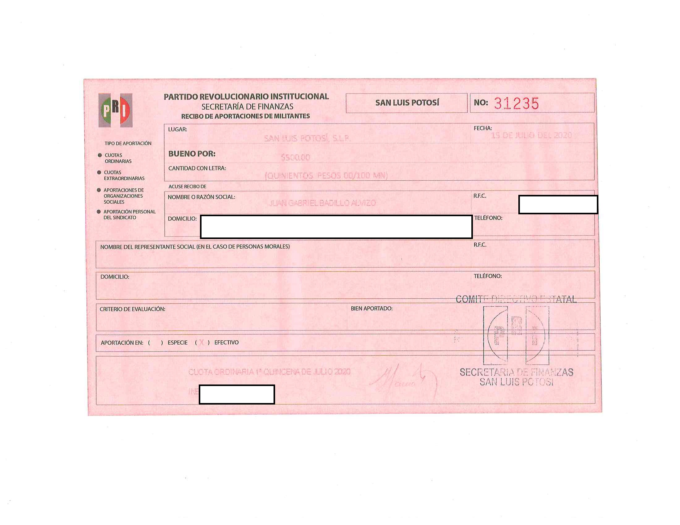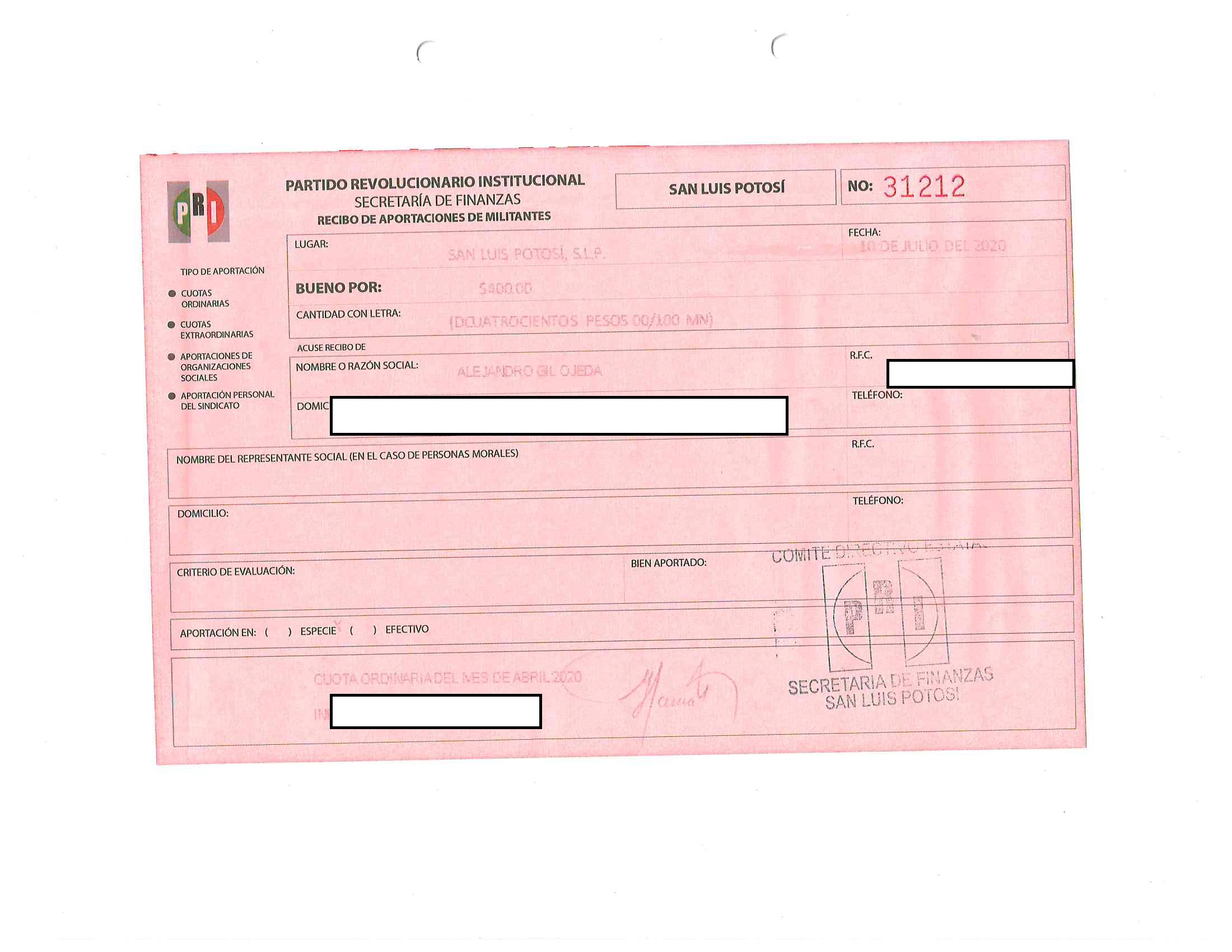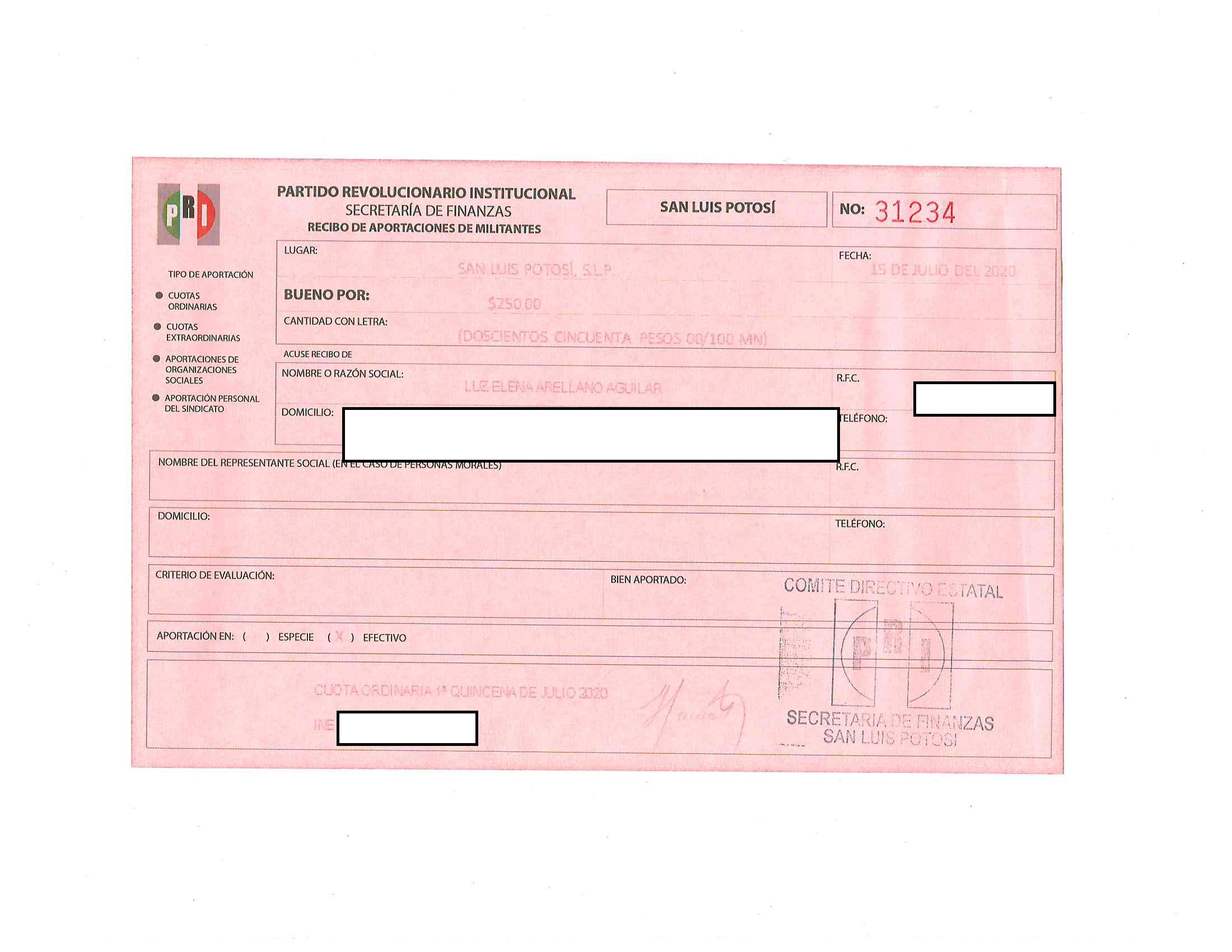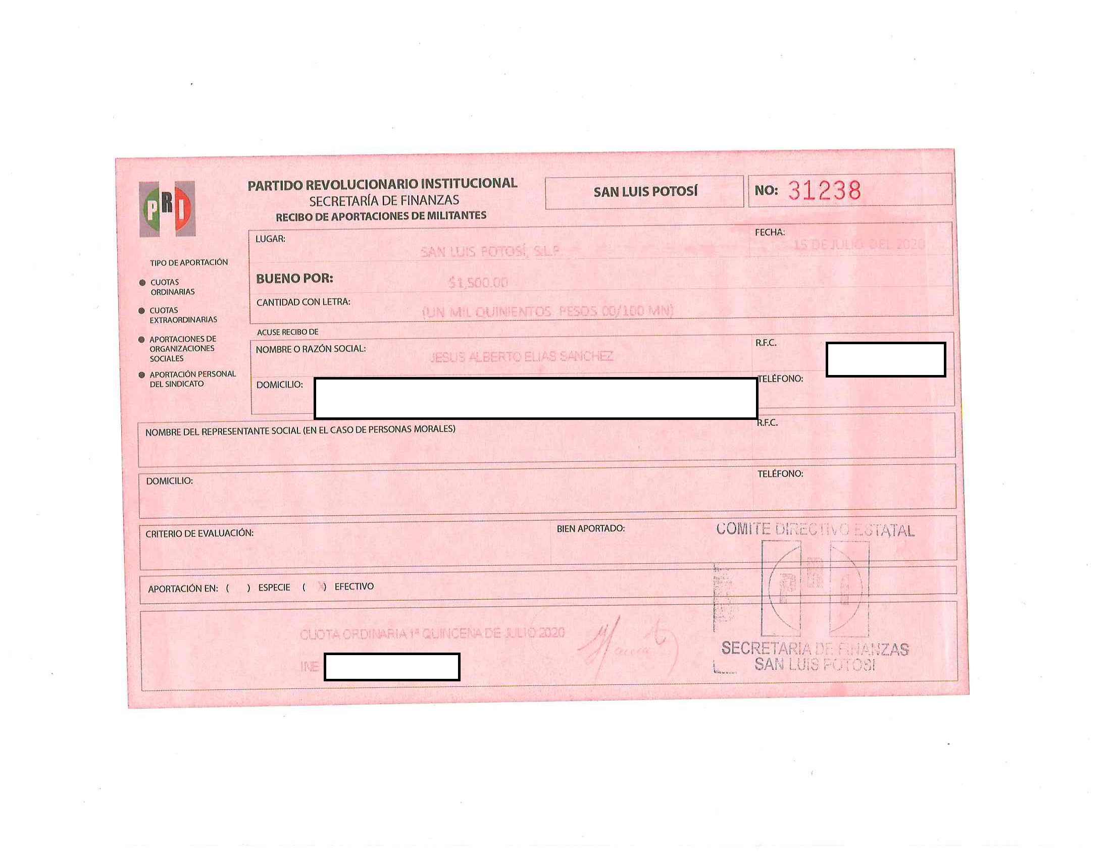 Cuotas ordinarias y extraordinarias de militantes LTAIPSLP90FVIII Las cuotas o aportaciones ordinarias y extraordinarias de militantes, afiliados, participantes o simpatizantes. Dichas cuotas o aportaciones deberán estar especificadas en los documentos que el Órgano electoral correspondiente emita anualmente. Tabla Campos