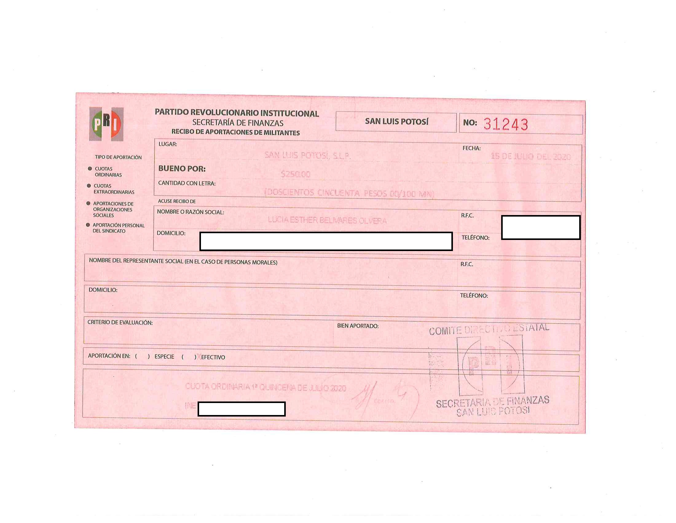 2020 01/07/2020 31/07/2020 ordinaria LUCIA ESTHER BELMARES OLVERA 15/07/2020 250 26100 http://www.cegaipslp.org.mx/HV2020Dos.nsf/nombre_de_la_vista/2E8210A4C8160CC2862585B500540DCE/$File/31243+LUCIA++ESTHER+BELMARES+OLVERA.jpg SECRETARIA DE FINANZAS Y ADMINISTRACION 31/07/2020 31/07/2020 NO SE GENERA