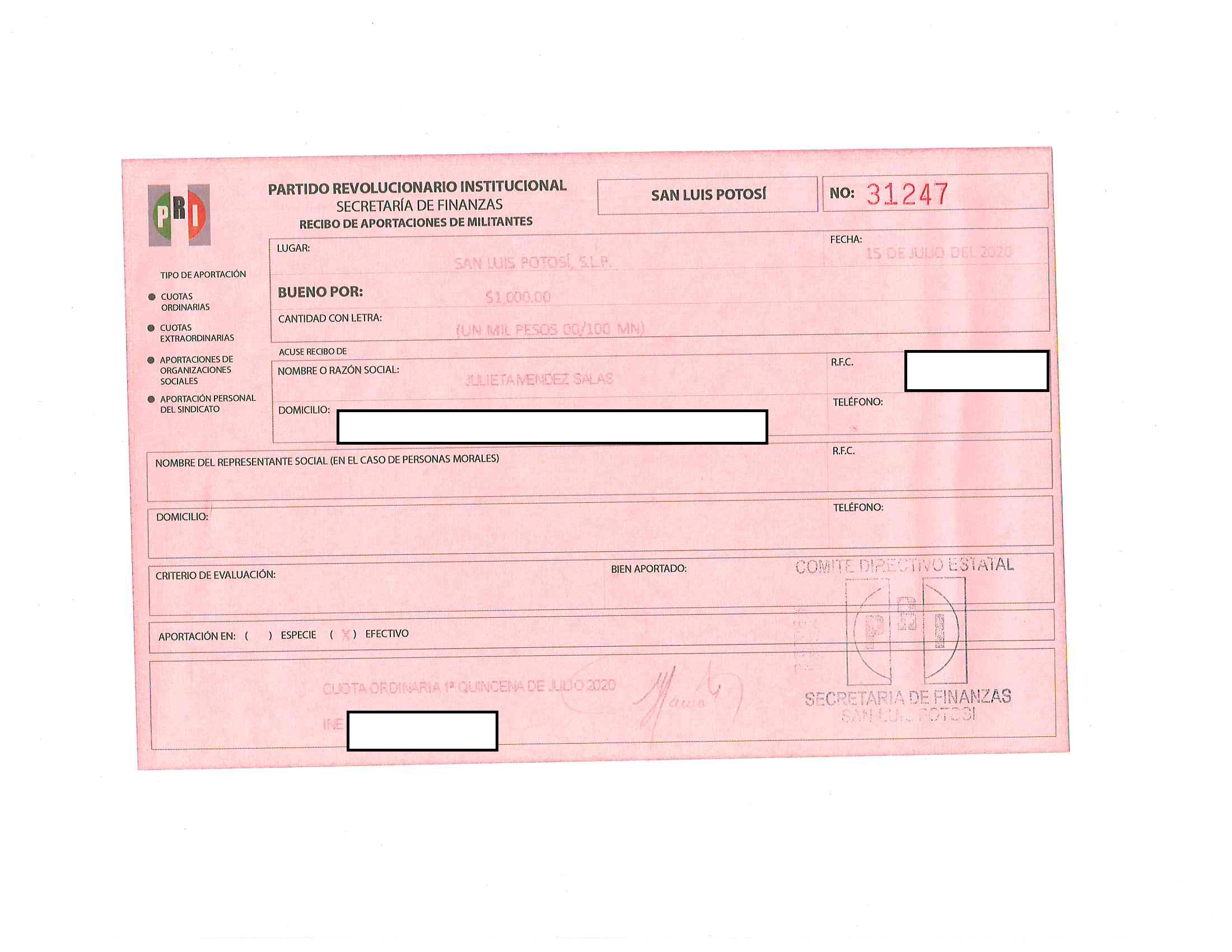 2020 01/07/2020 31/07/2020 ordinaria JULIETA MENDEZ SALAS 15/07/2020 1000 27850 http://www.cegaipslp.org.mx/HV2020Dos.nsf/nombre_de_la_vista/88095D6D280E96B1862585B500544C30/$File/31247JULIETA+MENDEZ++SALAS.jpg SECRETARIA DE FINANZAS Y ADMINISTRACION 31/07/2020 31/07/2020 NO SE GENERA