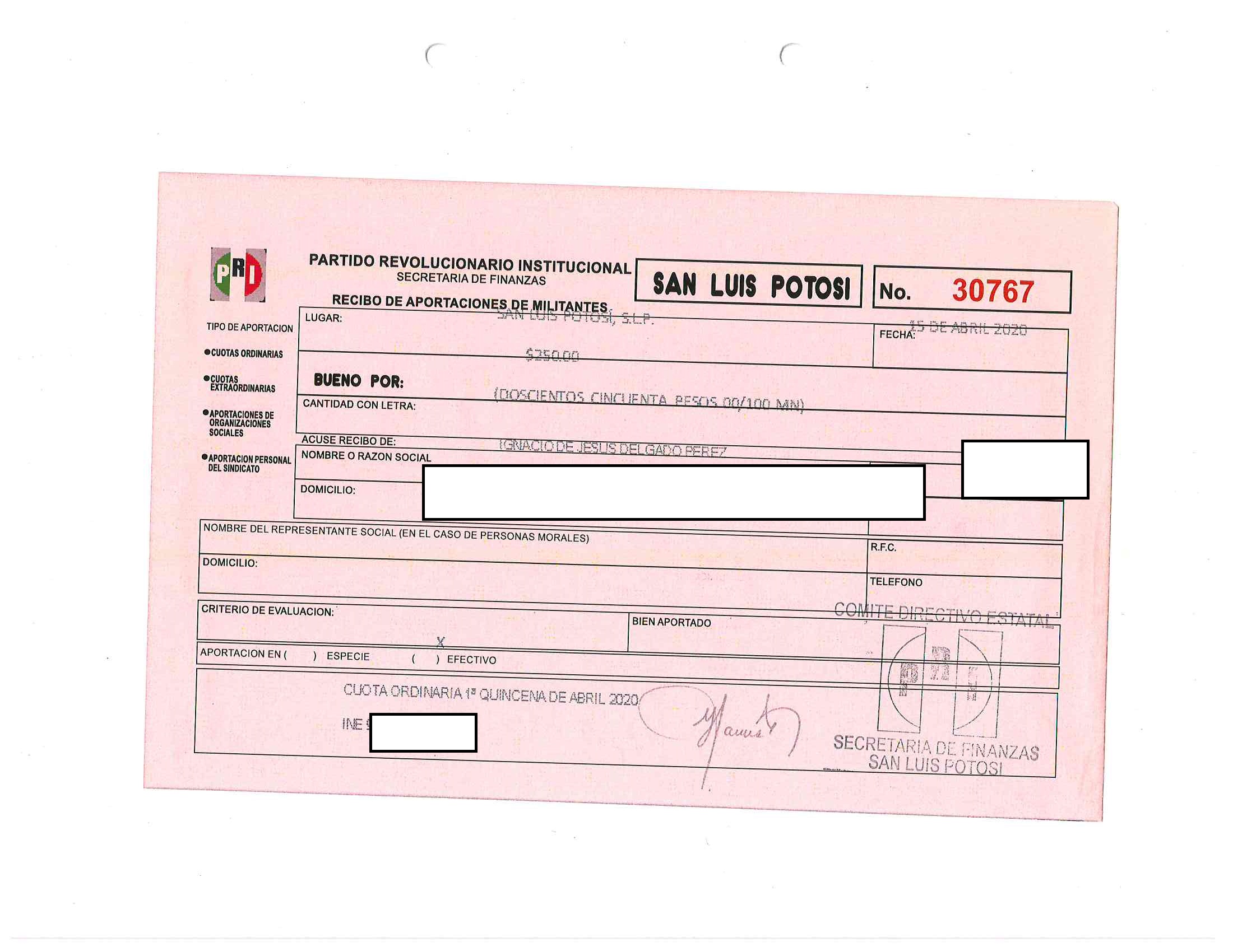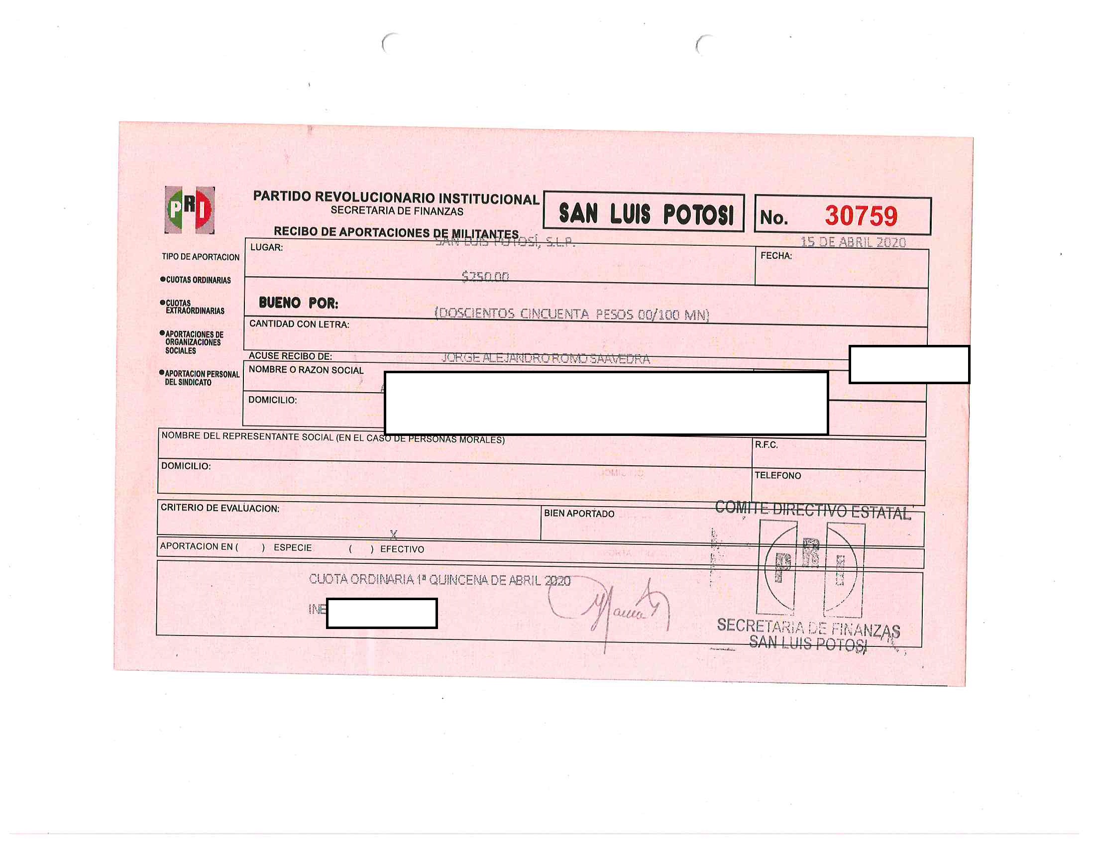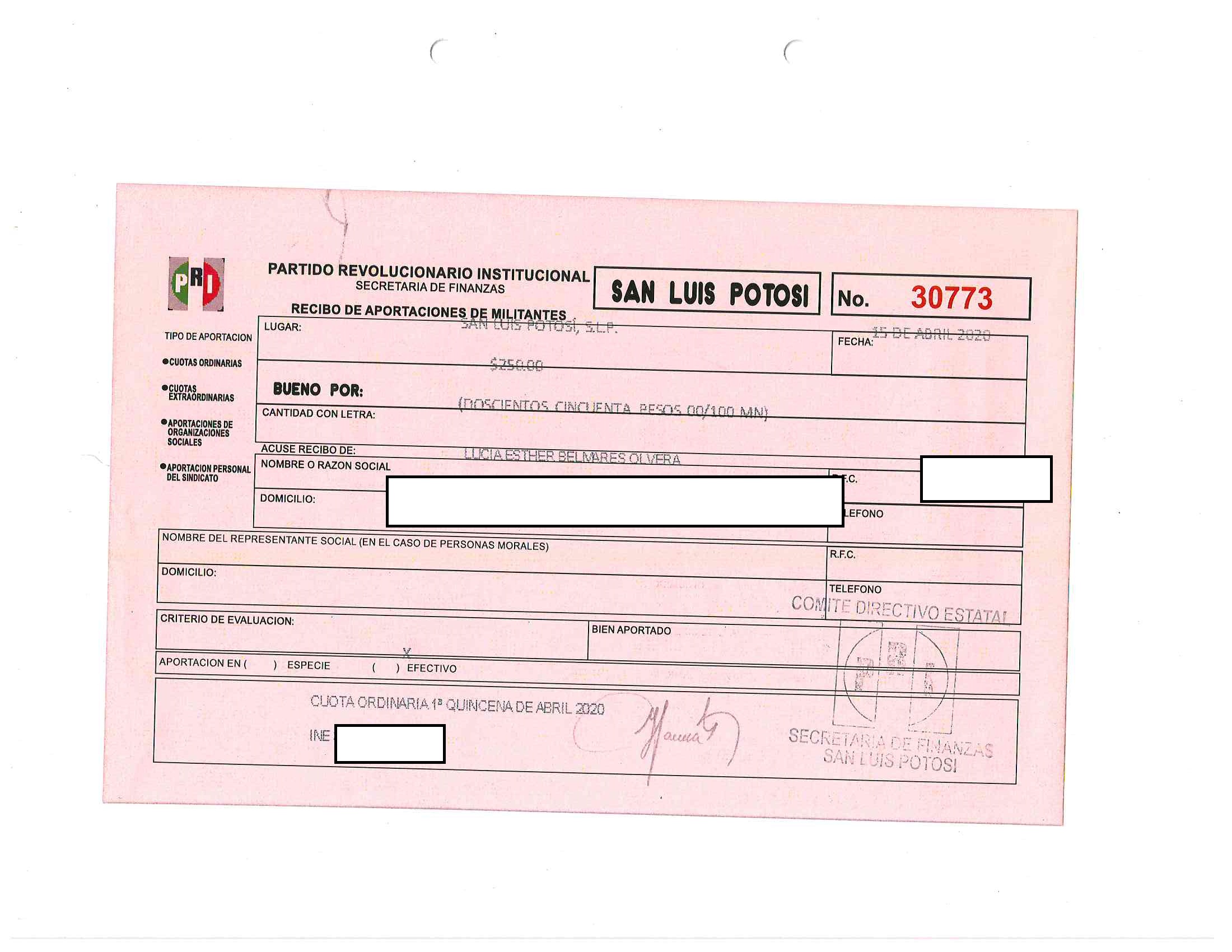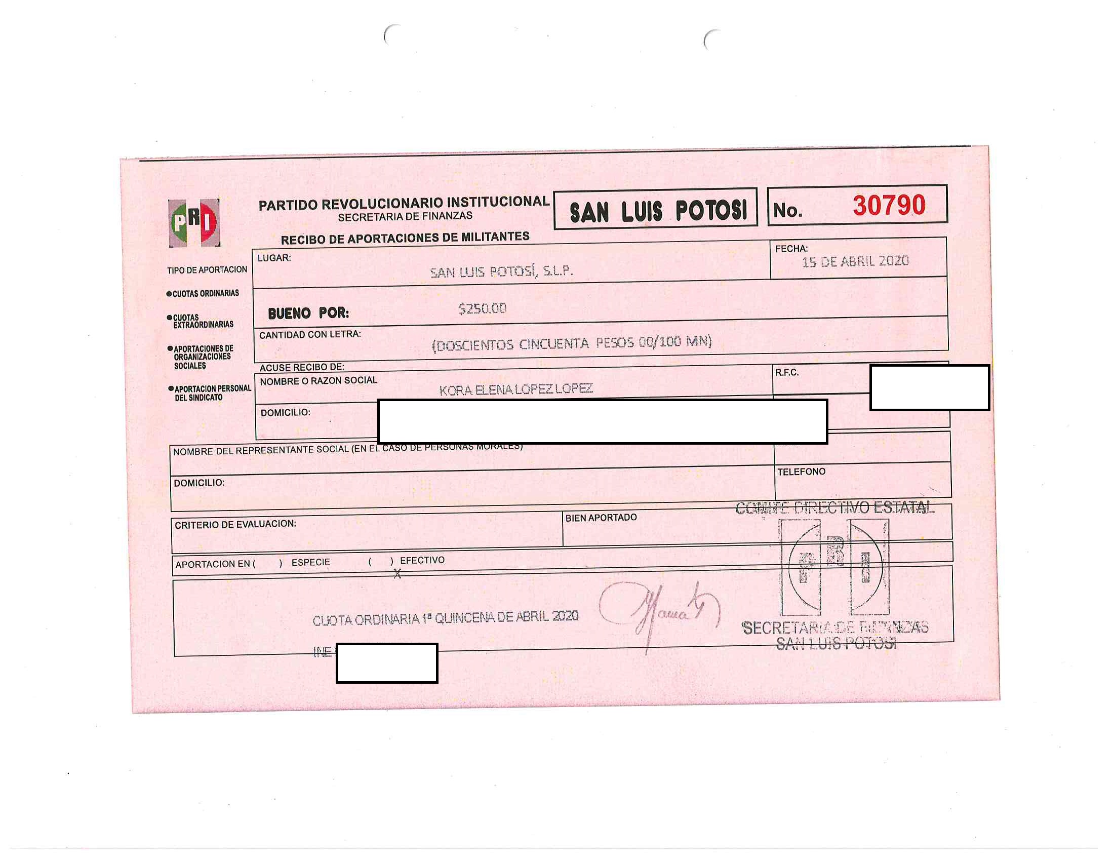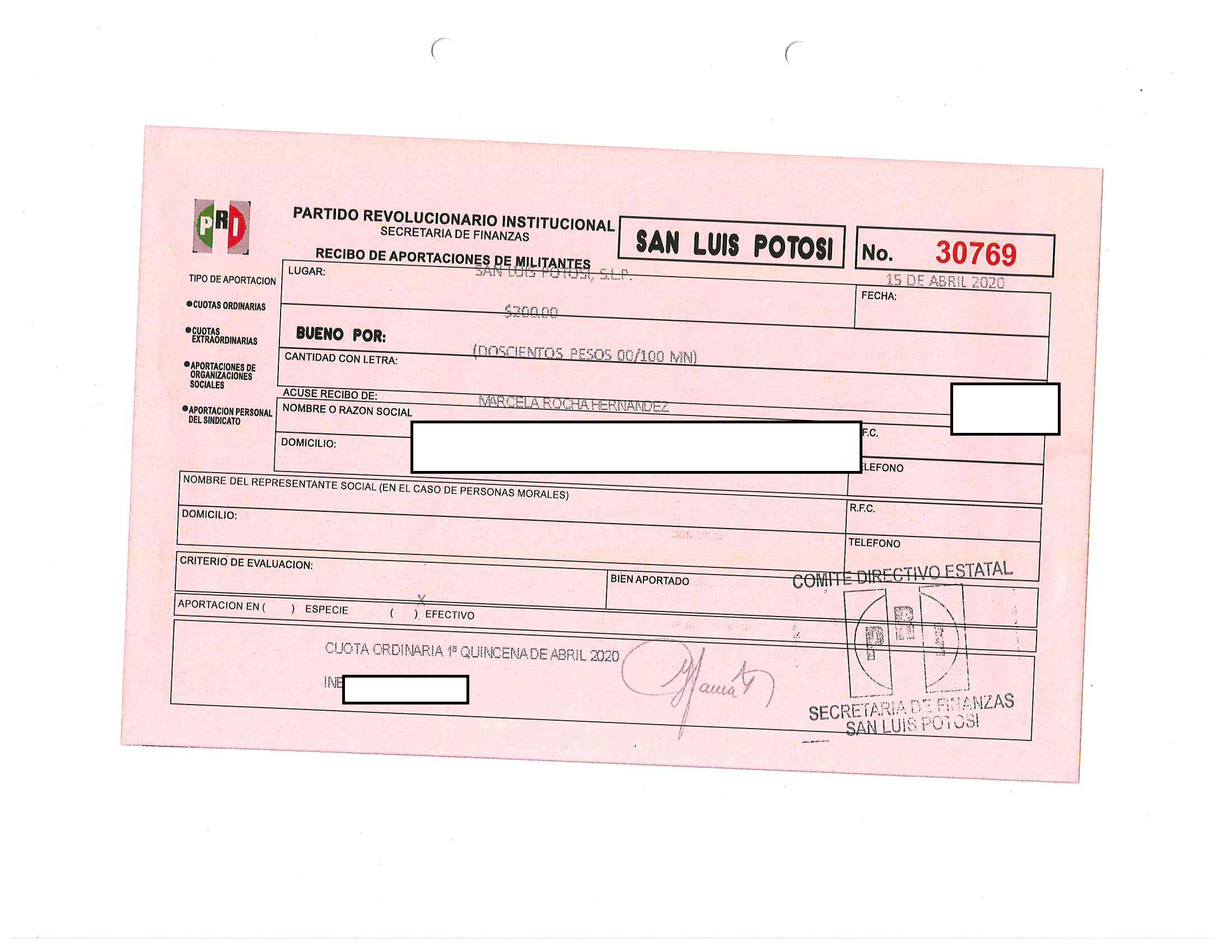 Cuotas ordinarias y extraordinarias de militantes LTAIPSLP90FVIII Las cuotas o aportaciones ordinarias y extraordinarias de militantes, afiliados, participantes o simpatizantes. Dichas cuotas o aportaciones deberán estar especificadas en los documentos que el Órgano electoral correspondiente emita anualmente. Tabla Campos