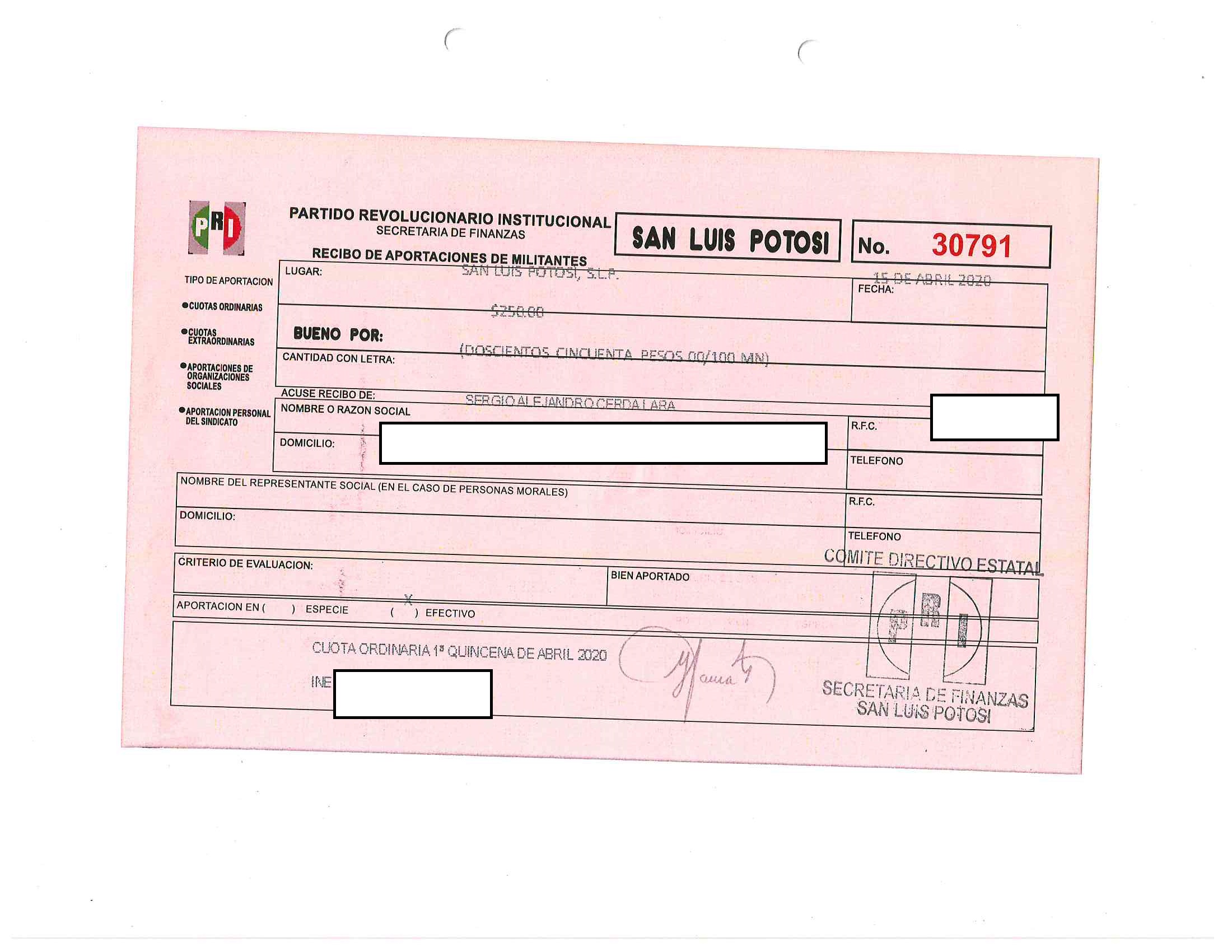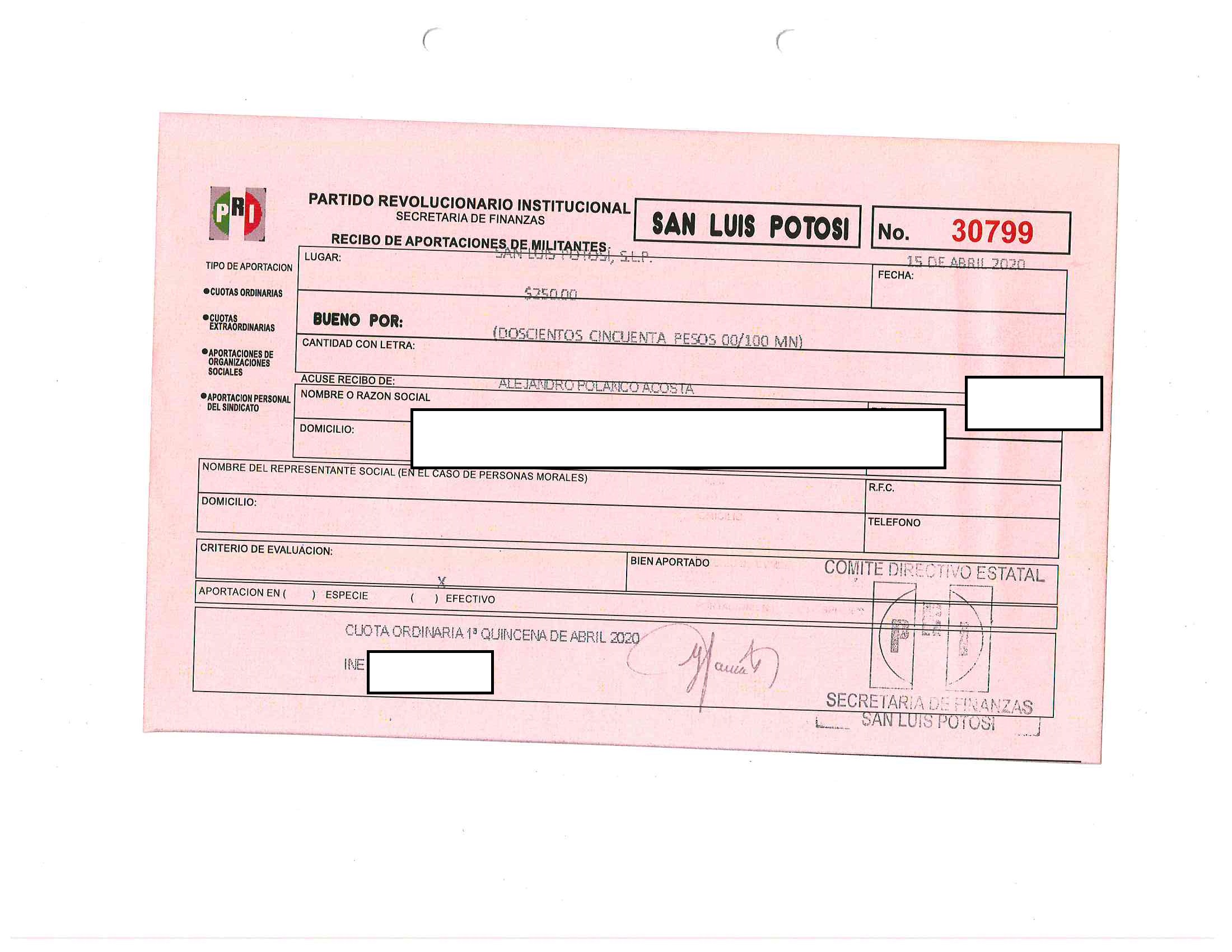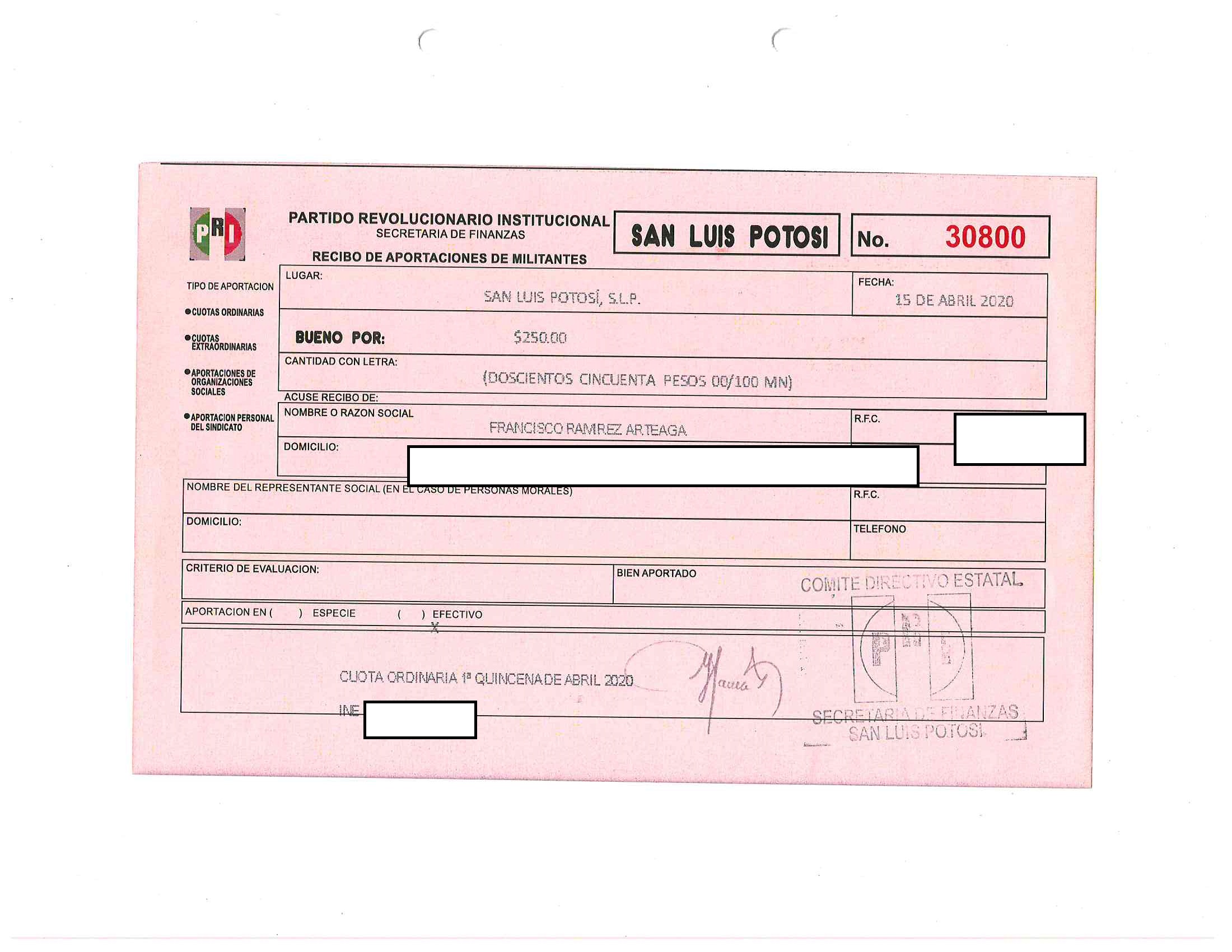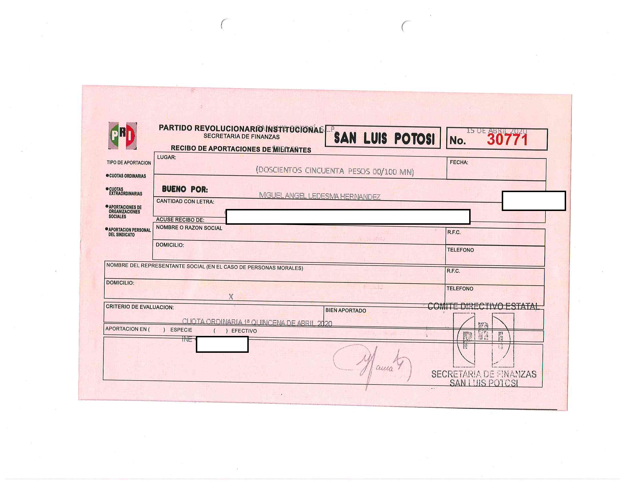Cuotas ordinarias y extraordinarias de militantes LTAIPSLP90FVIII Las cuotas o aportaciones ordinarias y extraordinarias de militantes, afiliados, participantes o simpatizantes. Dichas cuotas o aportaciones deberán estar especificadas en los documentos que el Órgano electoral correspondiente emita anualmente. Tabla Campos