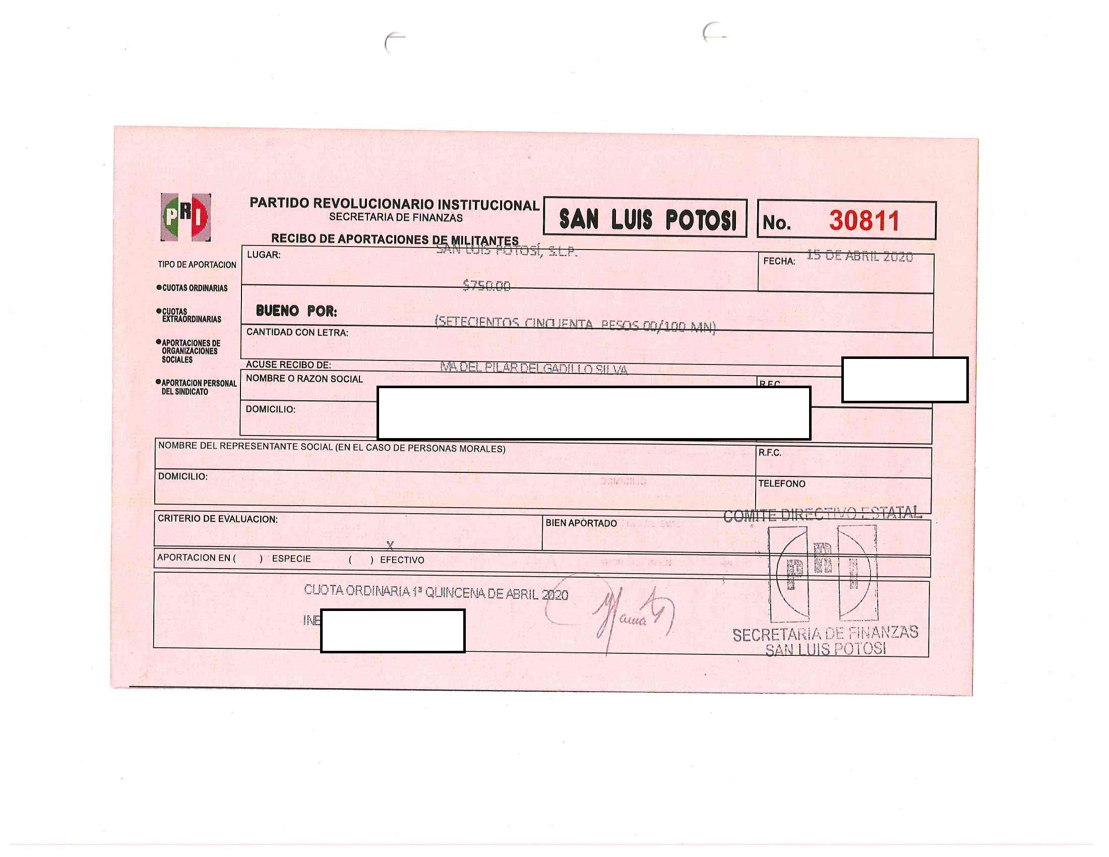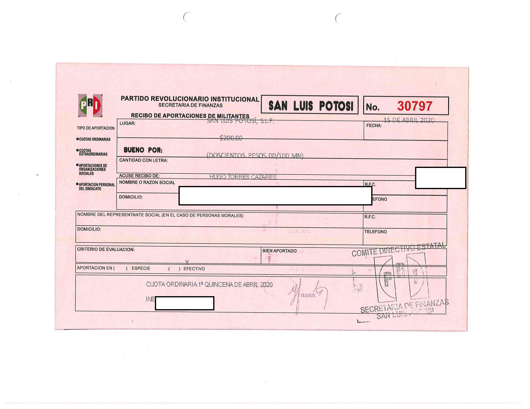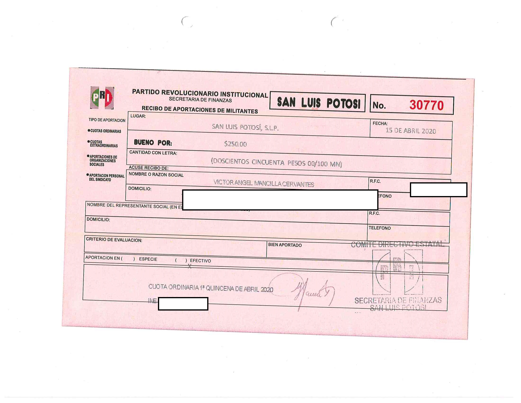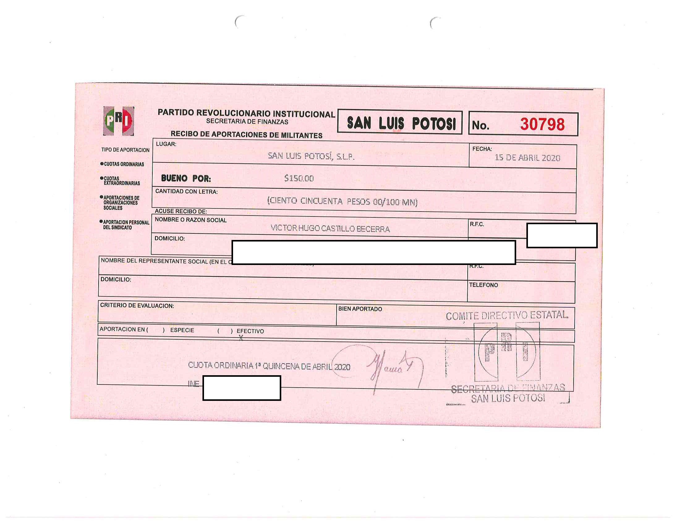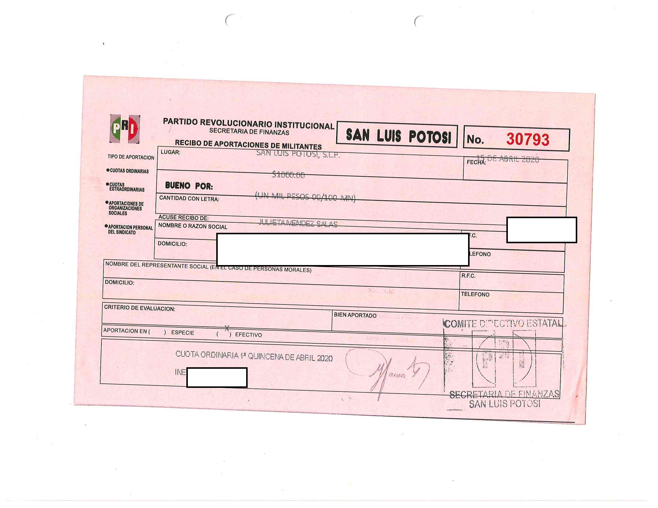 Cuotas ordinarias y extraordinarias de militantes LTAIPSLP90FVIII Las cuotas o aportaciones ordinarias y extraordinarias de militantes, afiliados, participantes o simpatizantes. Dichas cuotas o aportaciones deberán estar especificadas en los documentos que el Órgano electoral correspondiente emita anualmente. Tabla Campos