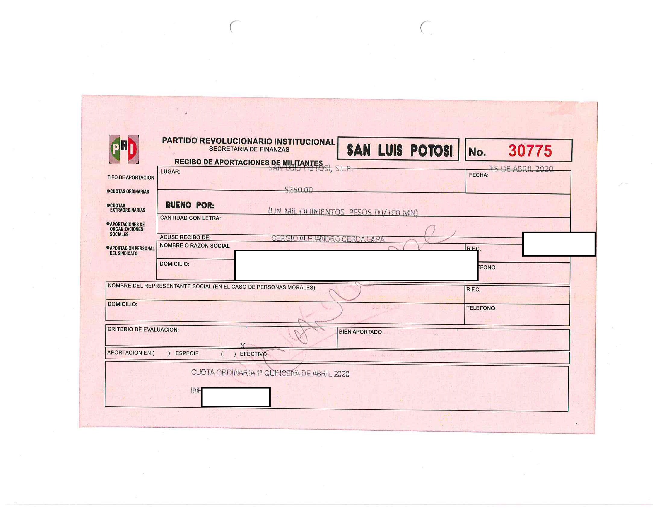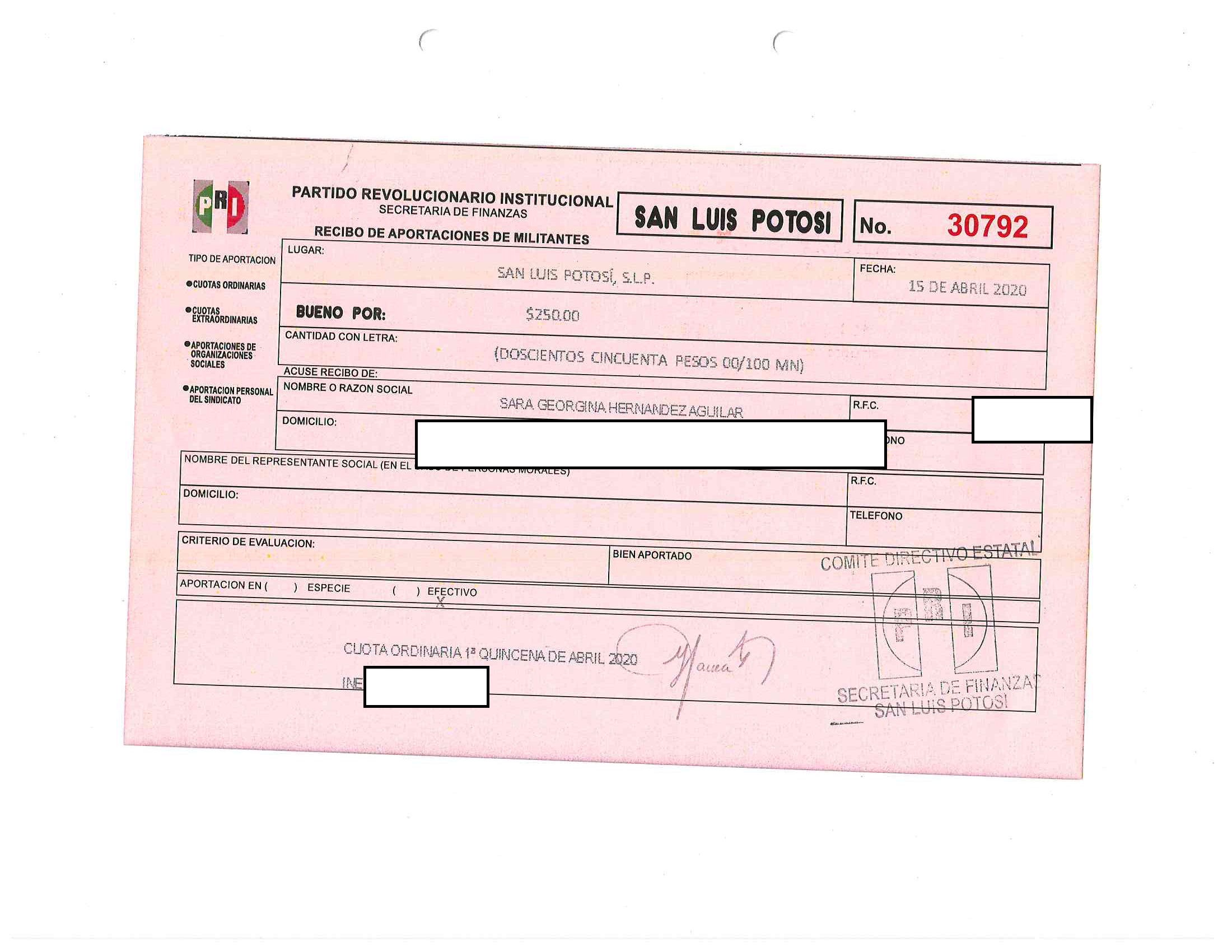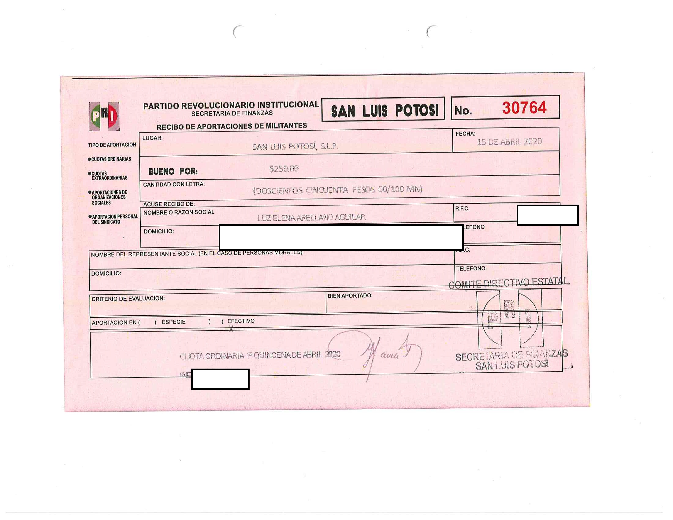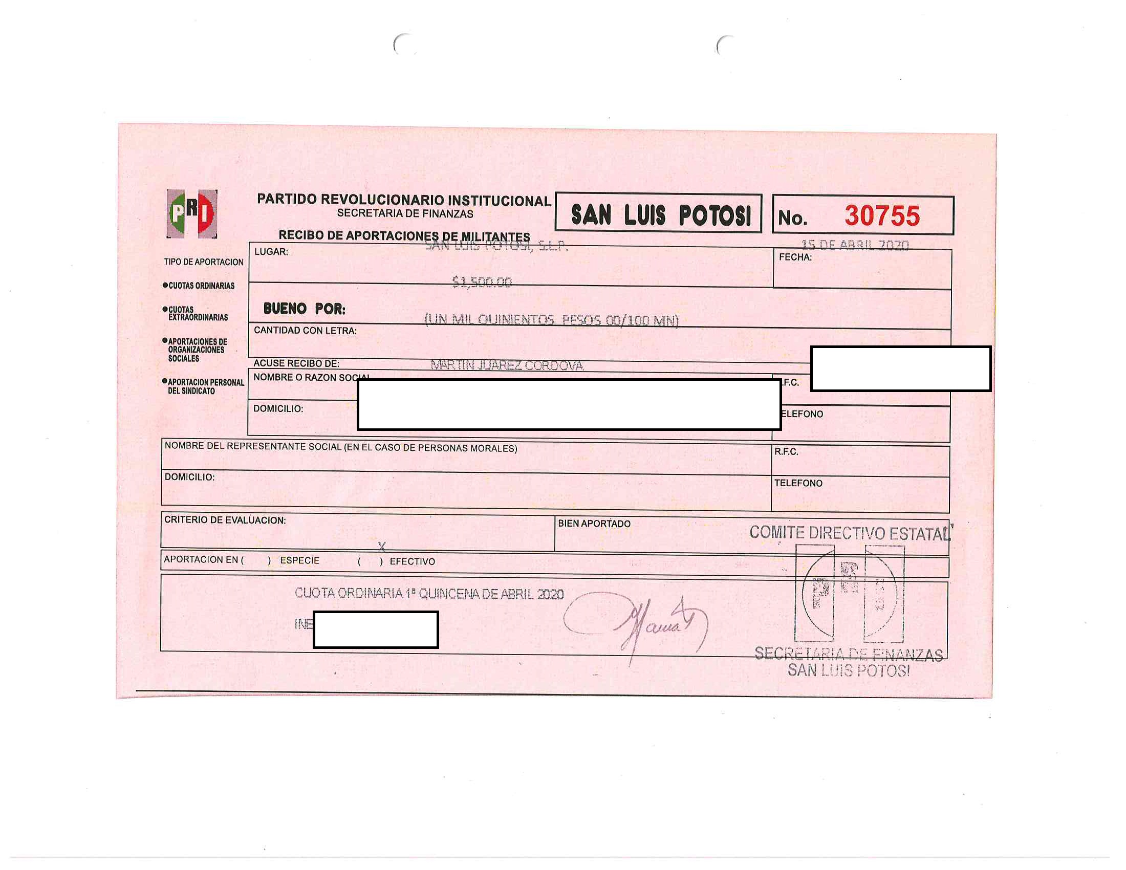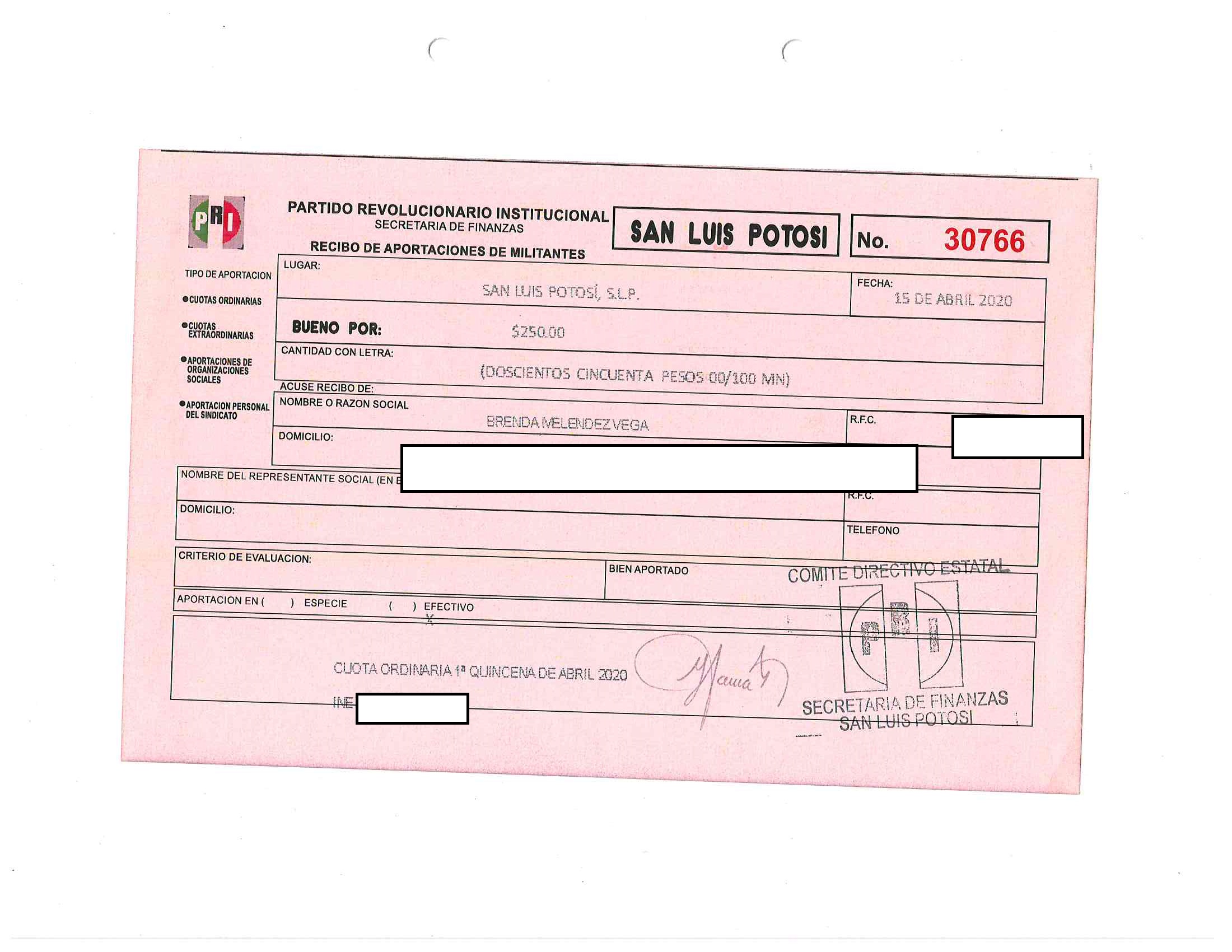 Cuotas ordinarias y extraordinarias de militantes LTAIPSLP90FVIII Las cuotas o aportaciones ordinarias y extraordinarias de militantes, afiliados, participantes o simpatizantes. Dichas cuotas o aportaciones deberán estar especificadas en los documentos que el Órgano electoral correspondiente emita anualmente. Tabla Campos