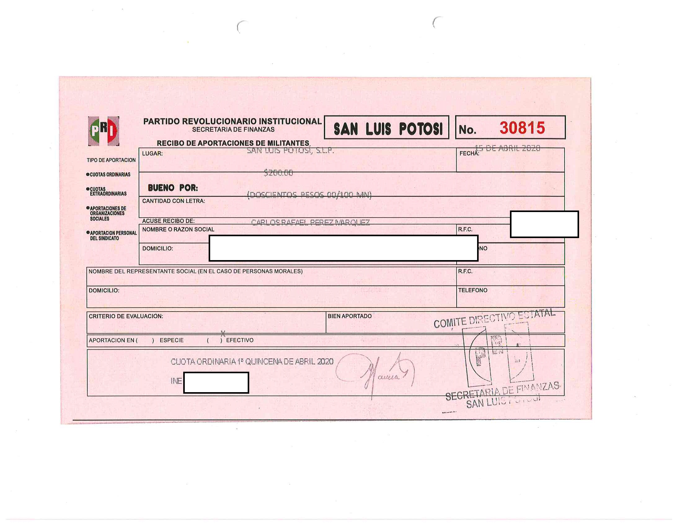 2020 01/04/2020 30/04/2020 ordinaria CARLOS RAFAEL PEREZ MARQUEZ 15/04/2020 200 20850 http://www.cegaipslp.org.mx/HV2020Dos.nsf/nombre_de_la_vista/18157CD7ECF7C314862585970000B476/$File/30815+CARLOS+RAFAEL+PEREZ+MARQUEZ.jpg SECRETARIA DE FINANZAS Y ADMINISTRACION 30/04/2020 30/04/2020 NO SE GENERA