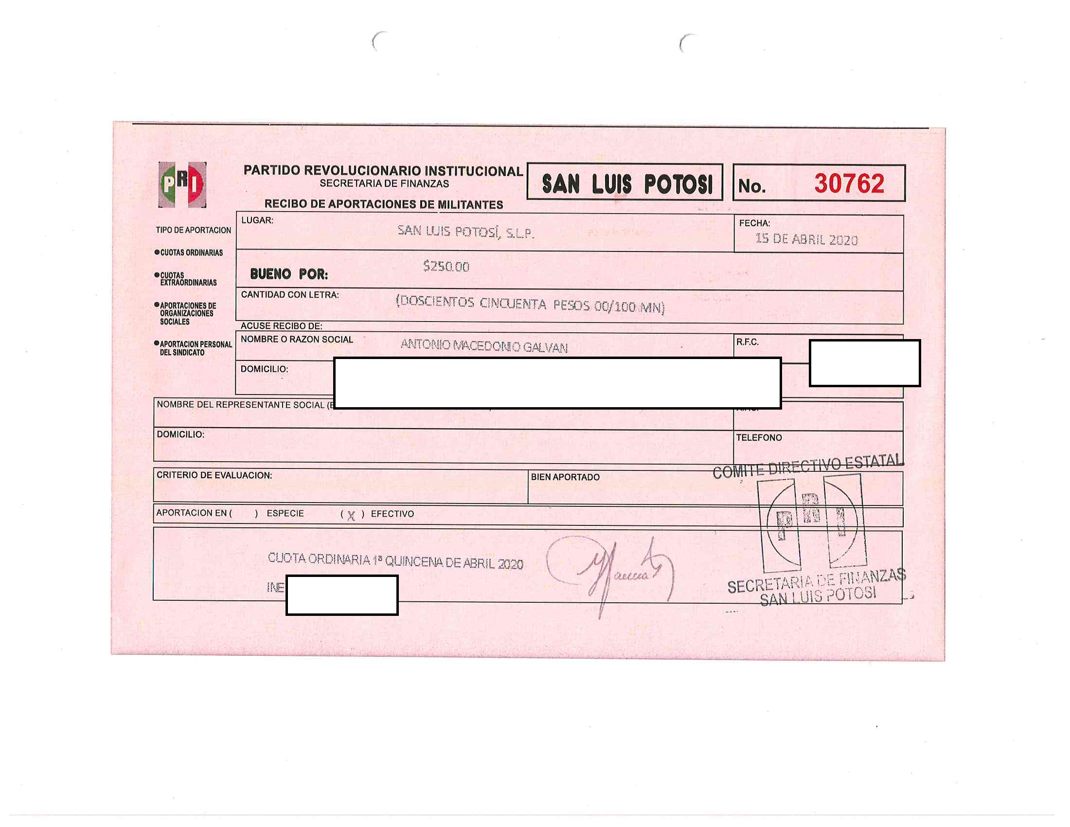 2020 01/04/2020 30/04/2020 ordinaria ANTONIO MACEDONIO GALVAN 15/04/2020 250 6950 http://www.cegaipslp.org.mx/HV2020Dos.nsf/nombre_de_la_vista/4DC9F518C766164D86258596007FA6B9/$File/30762+ANTONIO+MACEDONIO+GALVAN.jpg SECRETARIA DE FINANZAS Y ADMINISTRACION 30/04/2020 30/04/2020 NO SE GENERA