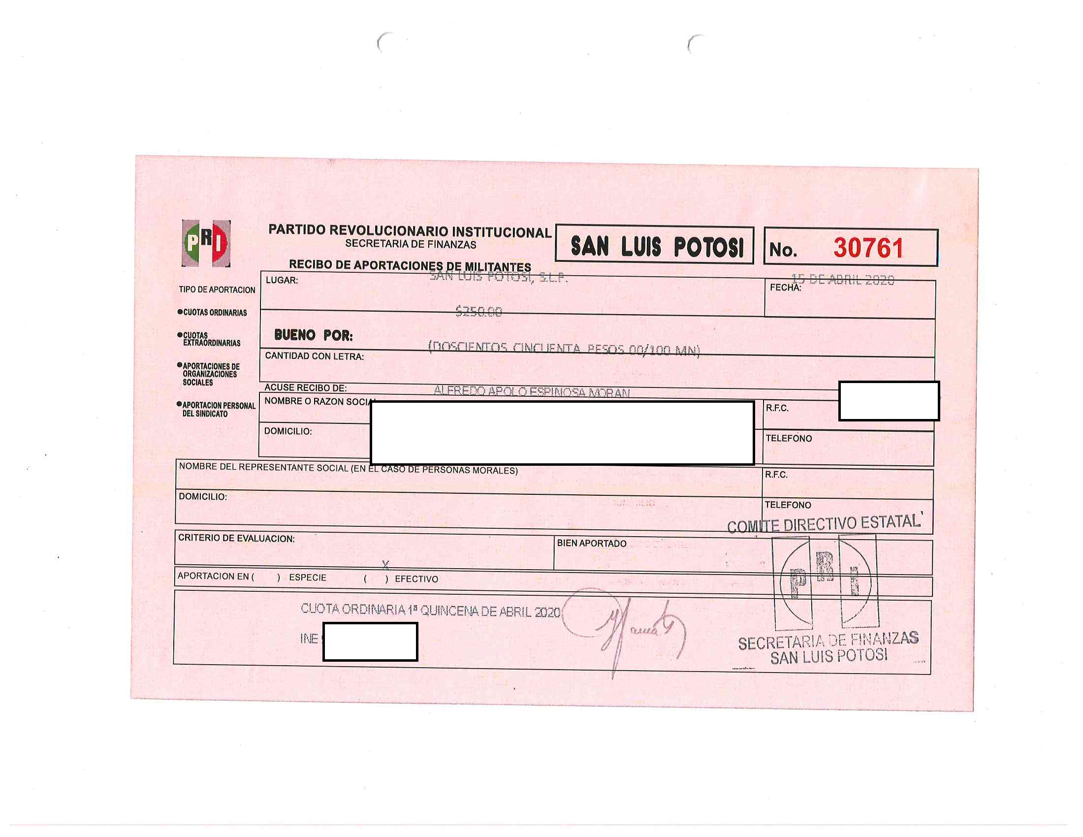 2020 01/04/2020 30/04/2020 ordinaria ALFREDO APOLO ESPINOSA MORAN 15/04/2020 250 6700 http://www.cegaipslp.org.mx/HV2020Dos.nsf/nombre_de_la_vista/A2526942D13A574686258596007F9635/$File/30761+ALFREDO+APOLO+ESPINOSA+MORAN.jpg SECRETARIA DE FINANZAS Y ADMINISTRACION 30/04/2020 30/04/2020 NO SE GENERA