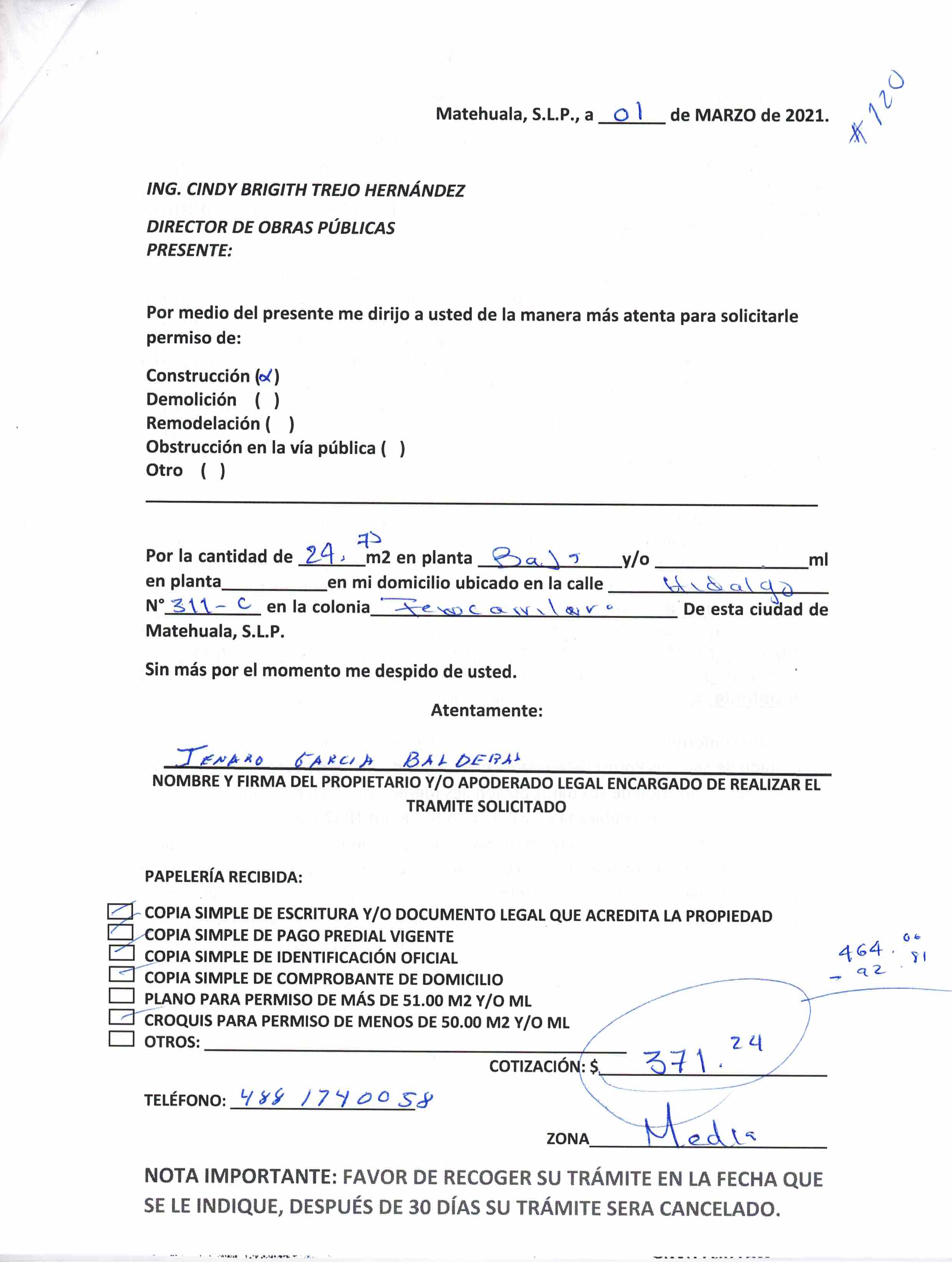 2021 01/03/2021 31/03/2021 D.O.P./L.C./120/2021 CONSTRUCCIÓN JUANA MARÍA GARCIA BALDERAS NO SE GENERA CALLE HIDALGO 311 C COLONIA FERROCARRILERA 20 MATEHUALA 20 MATEHUALA 24 San Luis Potosí 78710 "http://www.cegaipslp.org.mx/HV2021.nsf/nombre_de_la_vista/E346204ADEB8276E862586AF00571467/$File/05+JUANA+MA.+GARCIA+BALDERAS.jpeg " 02/03/2021 02/03/2022 HABITACIONAL "http://www.cegaipslp.org.mx/HV2021.nsf/nombre_de_la_vista/7047770287176F40862586B0005026D5/$File/05+JUANA+MA.+GARCIA+BALDERAS.jpeg " DIRECCIÓN DE OBRAS PÚBLICAS 26/02/2022 26/01/2022 20% DESCUENTO