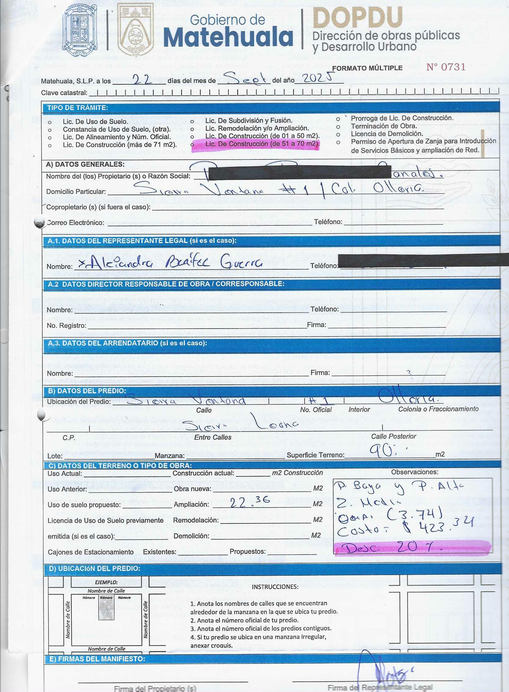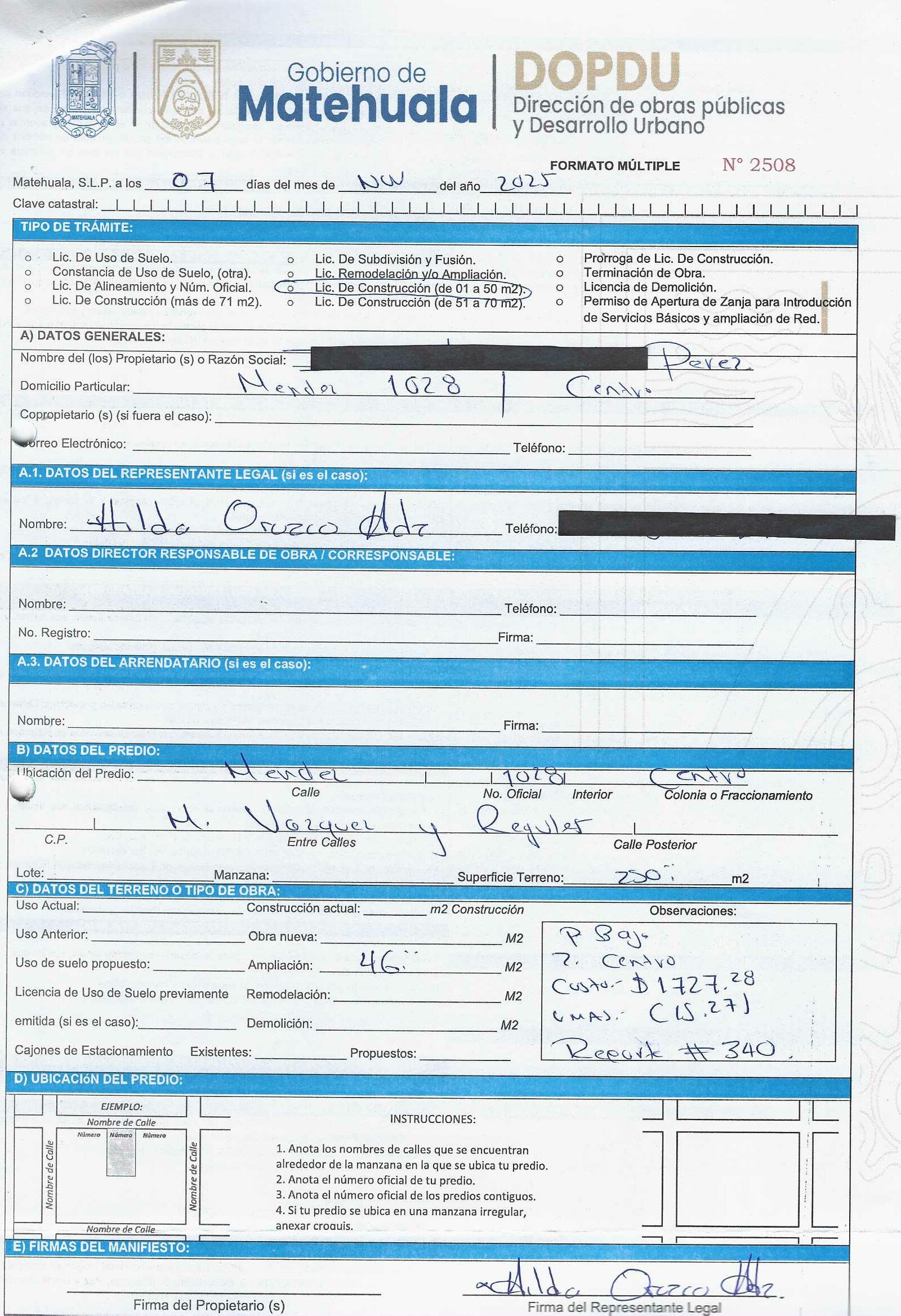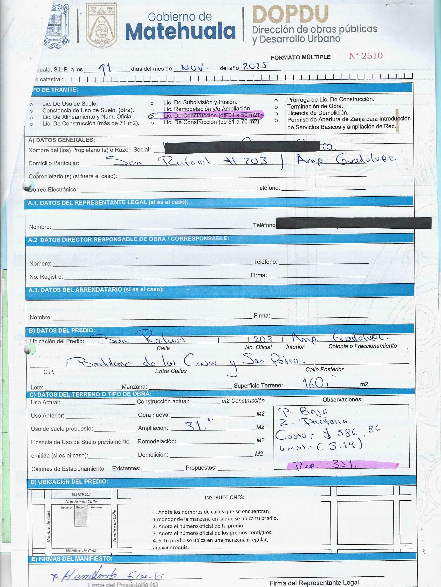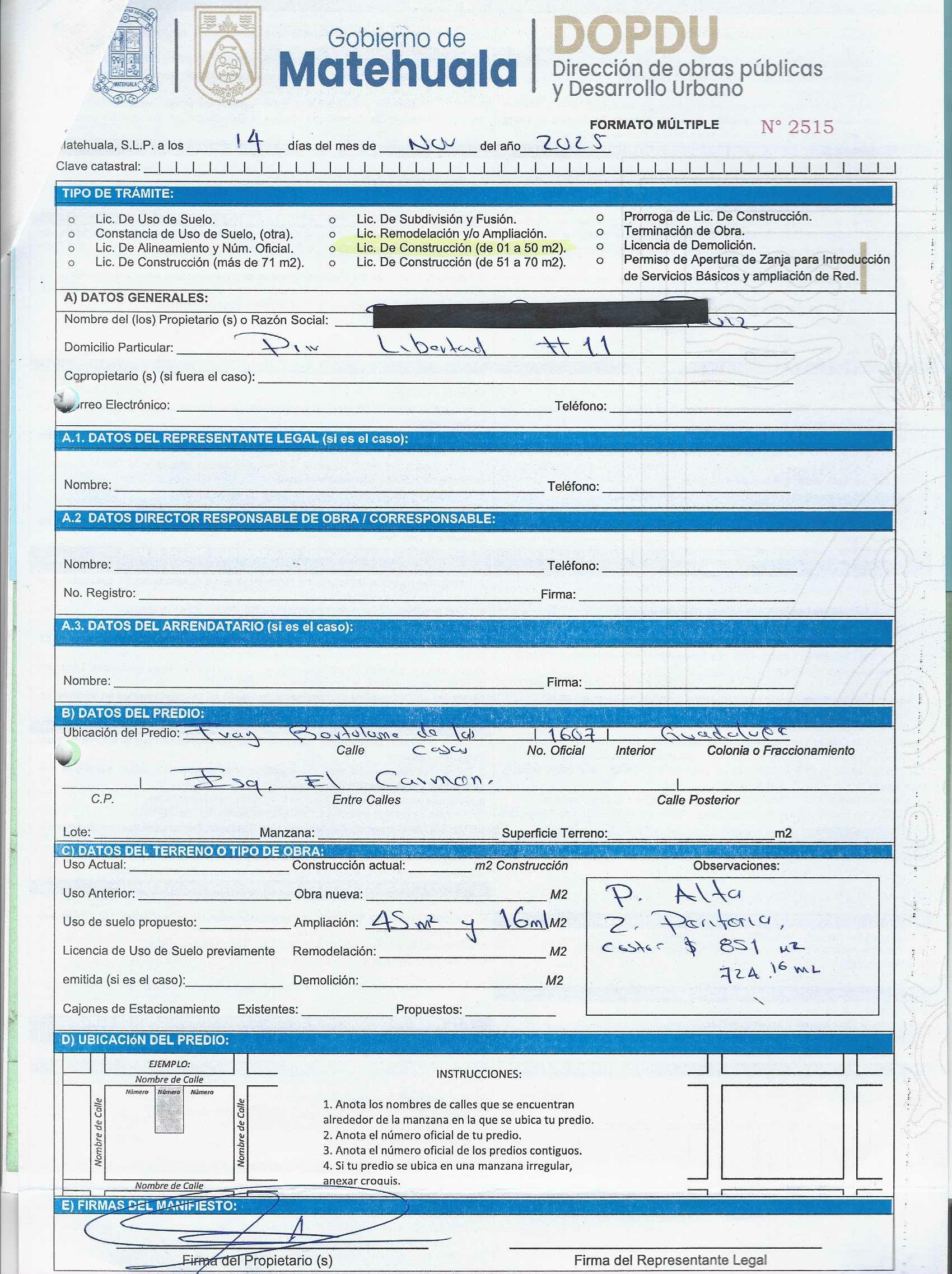 2025 01/11/2025 30/11/2025 DOP/LC/457/2025 CONSTRUCCION ANA MARIA ZAVALA PEREZ no se genero información Calle MENDEZ 1028 0 Colonia 20 MATEHUALA 20 MATEHUALA 24 San Luis Potosí 78700 http://www.cegaipslp.org.mx/HV2025.nsf/nombre_de_la_vista/873FF39A423C1C2306258D5A006C6EC6/$File/10+ANA+MARIA+ZAVALA+PEREZ.jpg 11/11/2025 11/11/2026 HABITACIONAL "http://www.cegaipslp.org.mx/HV2025.nsf/nombre_de_la_vista/05A4C2310D650AE306258D5B00544D8F/$File/10+ANA+MARIA+ZAVALA+PEREZ.jpg " DIRECCIÓN DE OBRAS PÚBLICAS Y DESARROLLO URBANO 09/12/2025 COBRO NORMAL