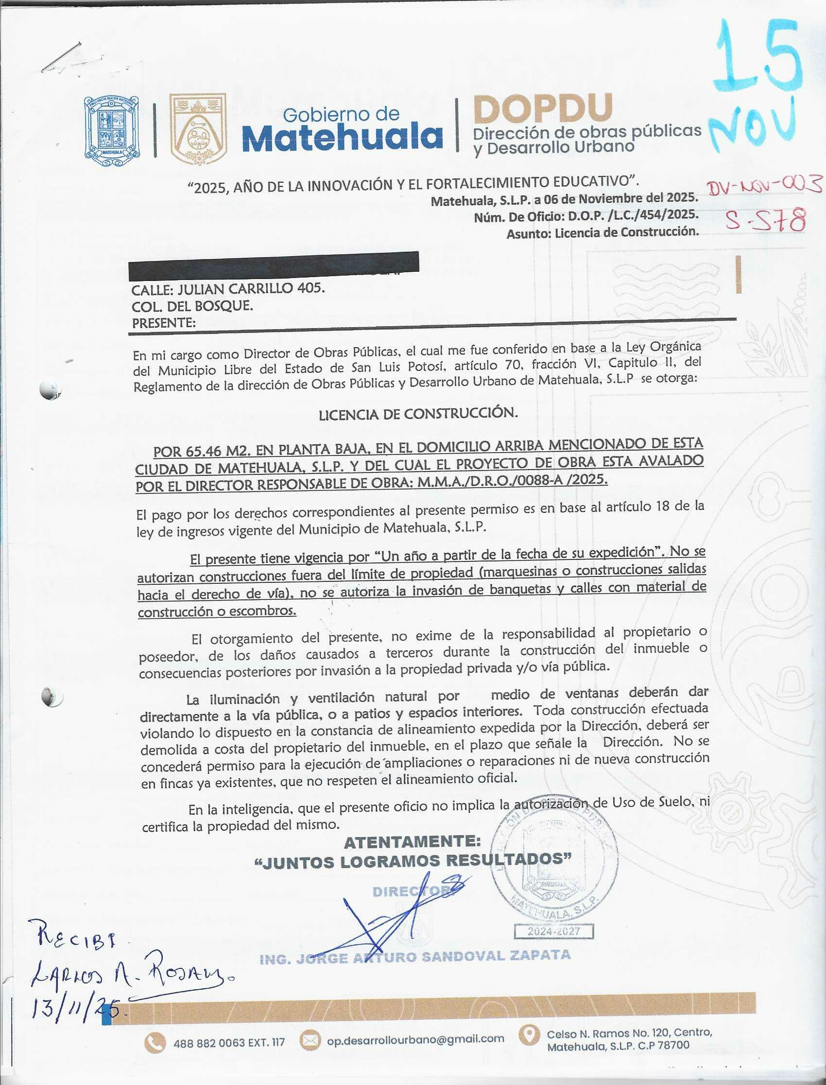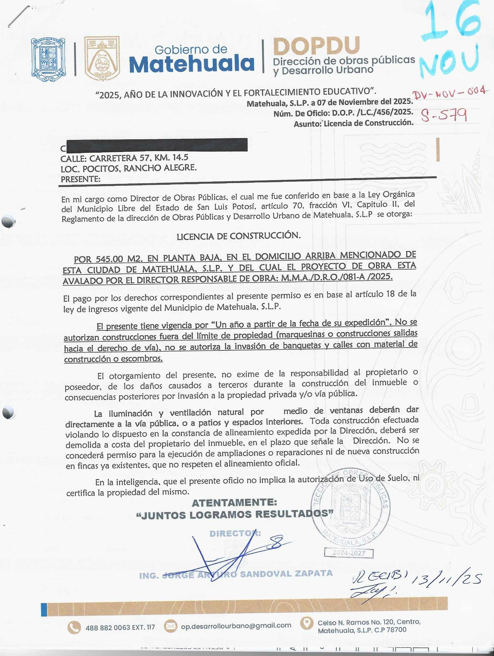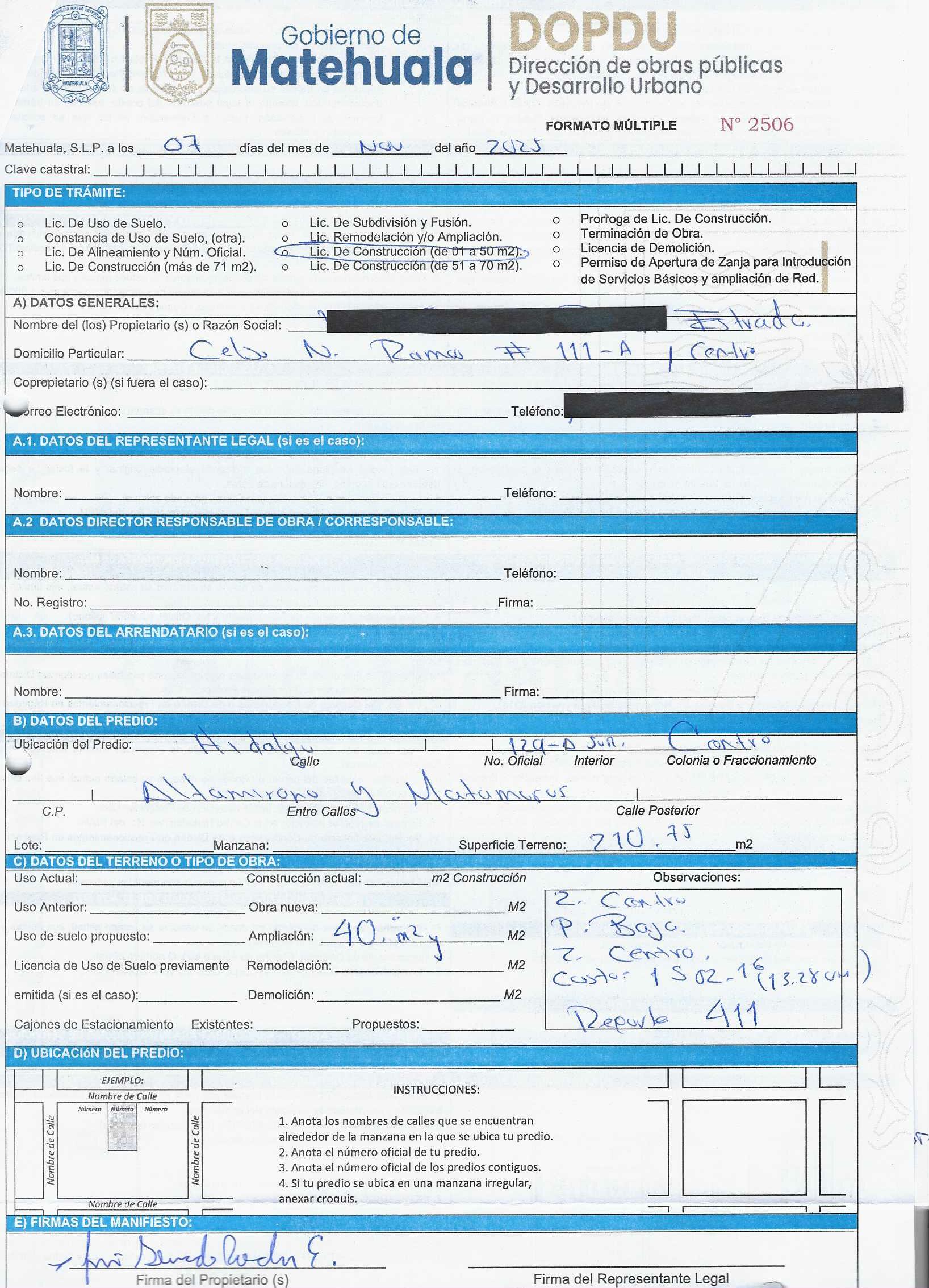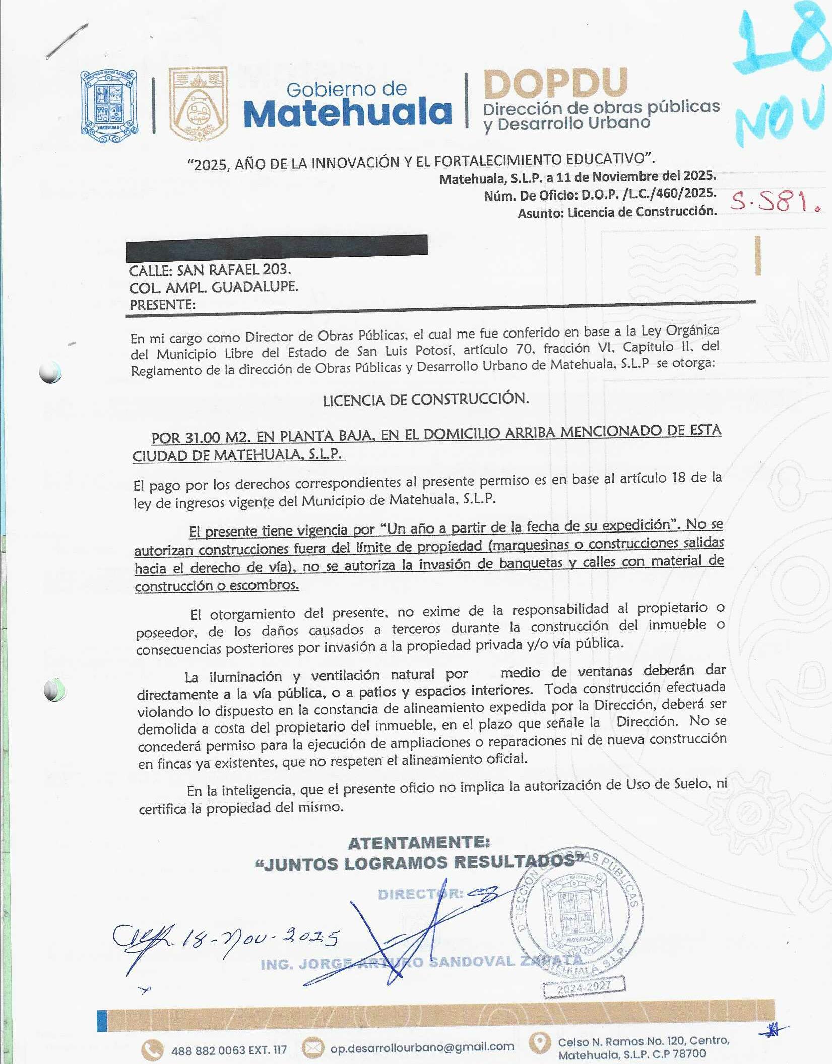 2025 01/11/2025 30/11/2025 DOP/LC/460/2025 CONSTRUCCION HERMELINDO GARCIA GARCIA no se genero información Calle SAN RAFAEL 203 0 Colonia 20 MATEHUALA 20 MATEHUALA 24 San Luis Potosí 78786 "http://www.cegaipslp.org.mx/HV2025.nsf/nombre_de_la_vista/C487F278397053A106258D5A006D3645/$File/18+HERMELINDO+GARCIA+GARCIA.jpg " 11/11/2025 11/11/2026 HABITACIONAL "http://www.cegaipslp.org.mx/HV2025.nsf/nombre_de_la_vista/670F75D19A0CB54906258D5B005542D5/$File/18+HERMELINDO+GARCIA+GARCIA.jpg " DIRECCIÓN DE OBRAS PÚBLICAS Y DESARROLLO URBANO 09/12/2025 COBRO NORMAL