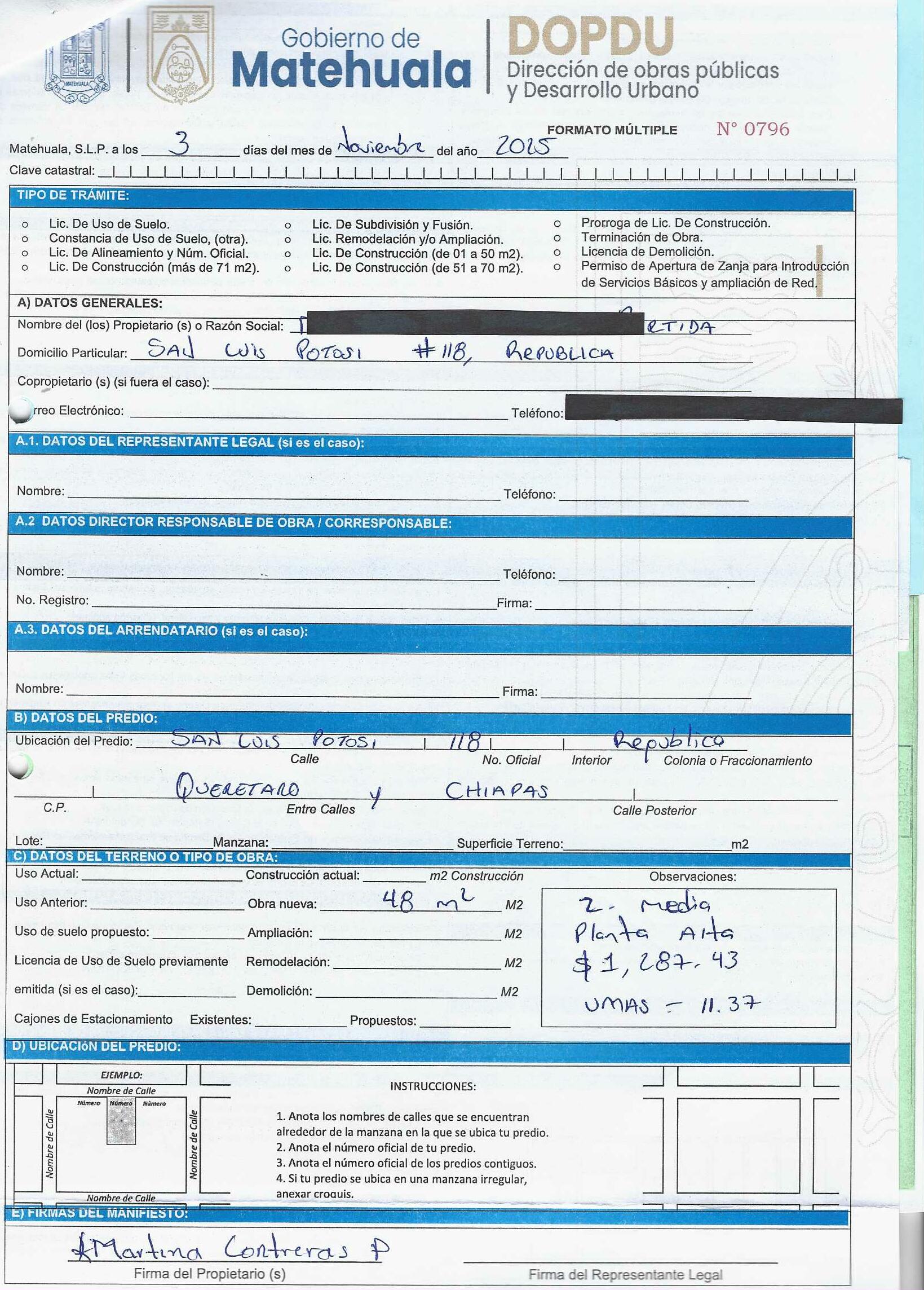 2025 01/11/2025 30/11/2025 DOP/LC/448/2025 CONSTRUCCION MARTINA CONTRERAS PARTIDA no se genero información Calle SAN LUIS POTOSI 118 0 Colonia 20 MATEHUALA 20 MATEHUALA 24 San Luis Potosí 78740 "http://www.cegaipslp.org.mx/HV2025.nsf/nombre_de_la_vista/237C0B11B801472606258D5A00649F6C/$File/04+MARTINA+CONTRERAS+PARTIDA.jpg " 4/11/2025 4/11/2026 HABITACIONAL "http://www.cegaipslp.org.mx/HV2025.nsf/nombre_de_la_vista/BDFE23ED180FF37406258D5B0053D247/$File/04+MARTINA+CONTRERAS+PARTIDA.jpg " DIRECCIÓN DE OBRAS PÚBLICAS Y DESARROLLO URBANO 09/12/2025 COBRO NORMAL