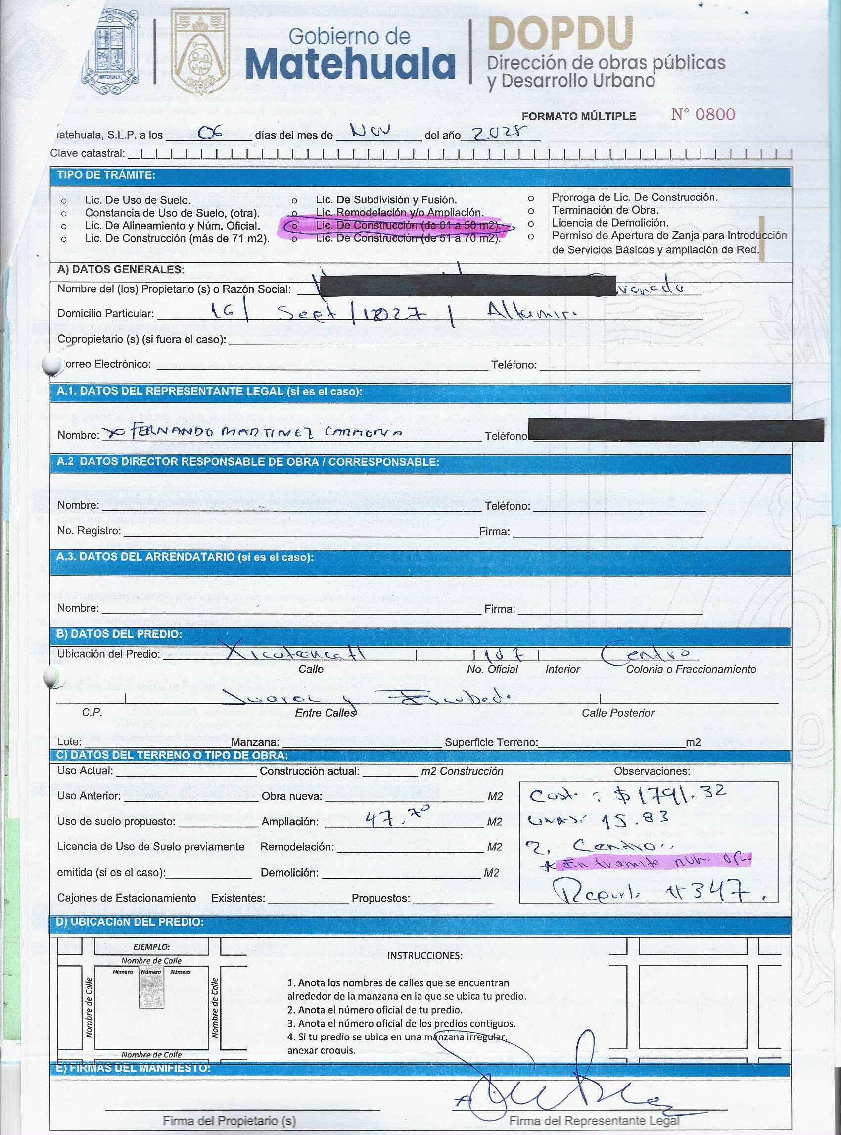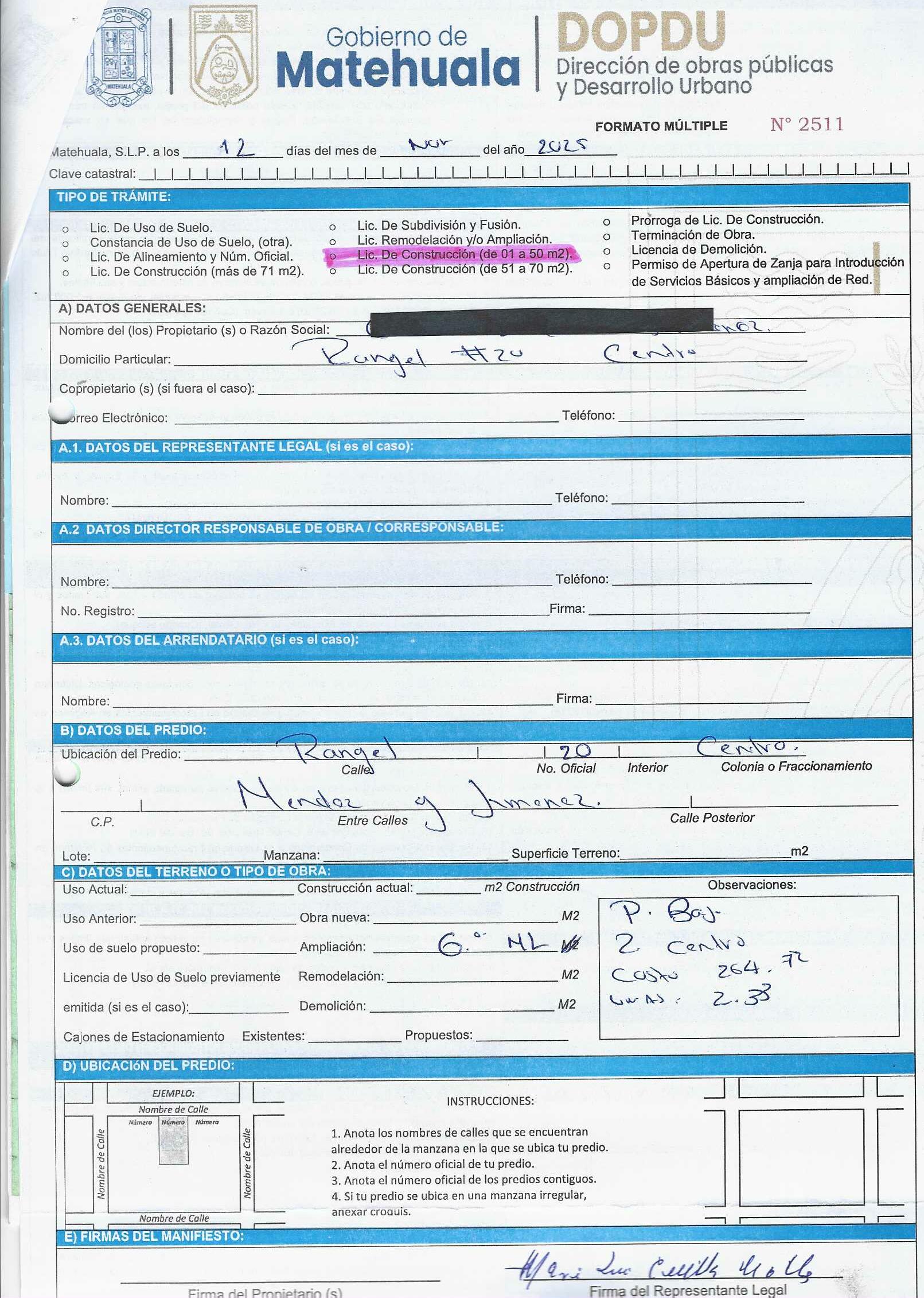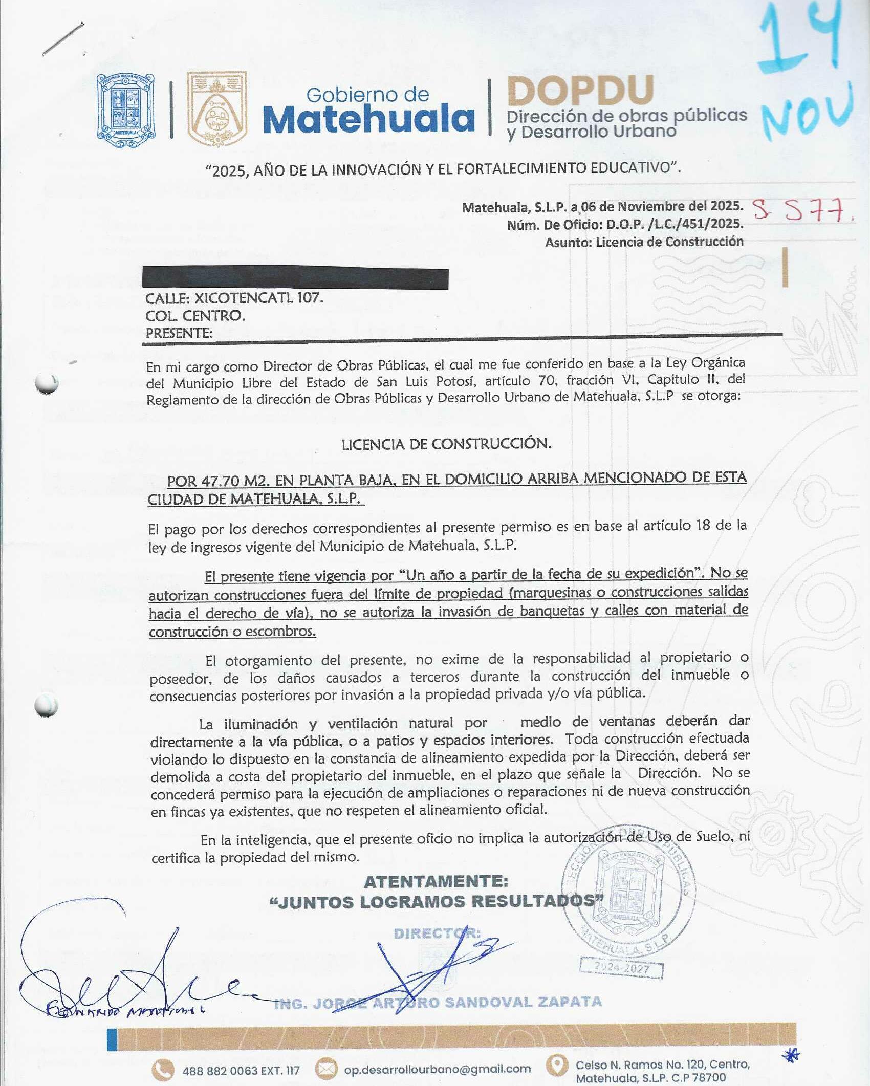2025 01/11/2025 30/11/2025 DOP/LC/451/2025 CONSTRUCCION HERMILA MENDOZA CORONADO no se genero información Calle XICOTENCATL 107 0 Colonia 20 MATEHUALA 20 MATEHUALA 24 San Luis Potosí 78700 "http://www.cegaipslp.org.mx/HV2025.nsf/nombre_de_la_vista/DB206B4BCDB4EDBB06258D5A006CE701/$File/14+HERMILA+MENDOZA+CORONADO.jpg " 18/11/2025 18/11/2026 HABITACIONAL "http://www.cegaipslp.org.mx/HV2025.nsf/nombre_de_la_vista/B4C2207C585647B406258D5B0054C7B0/$File/14+HERMILA+MENDOZA+CORONADO.jpg " DIRECCIÓN DE OBRAS PÚBLICAS Y DESARROLLO URBANO 09/12/2025 COBRO NORMAL