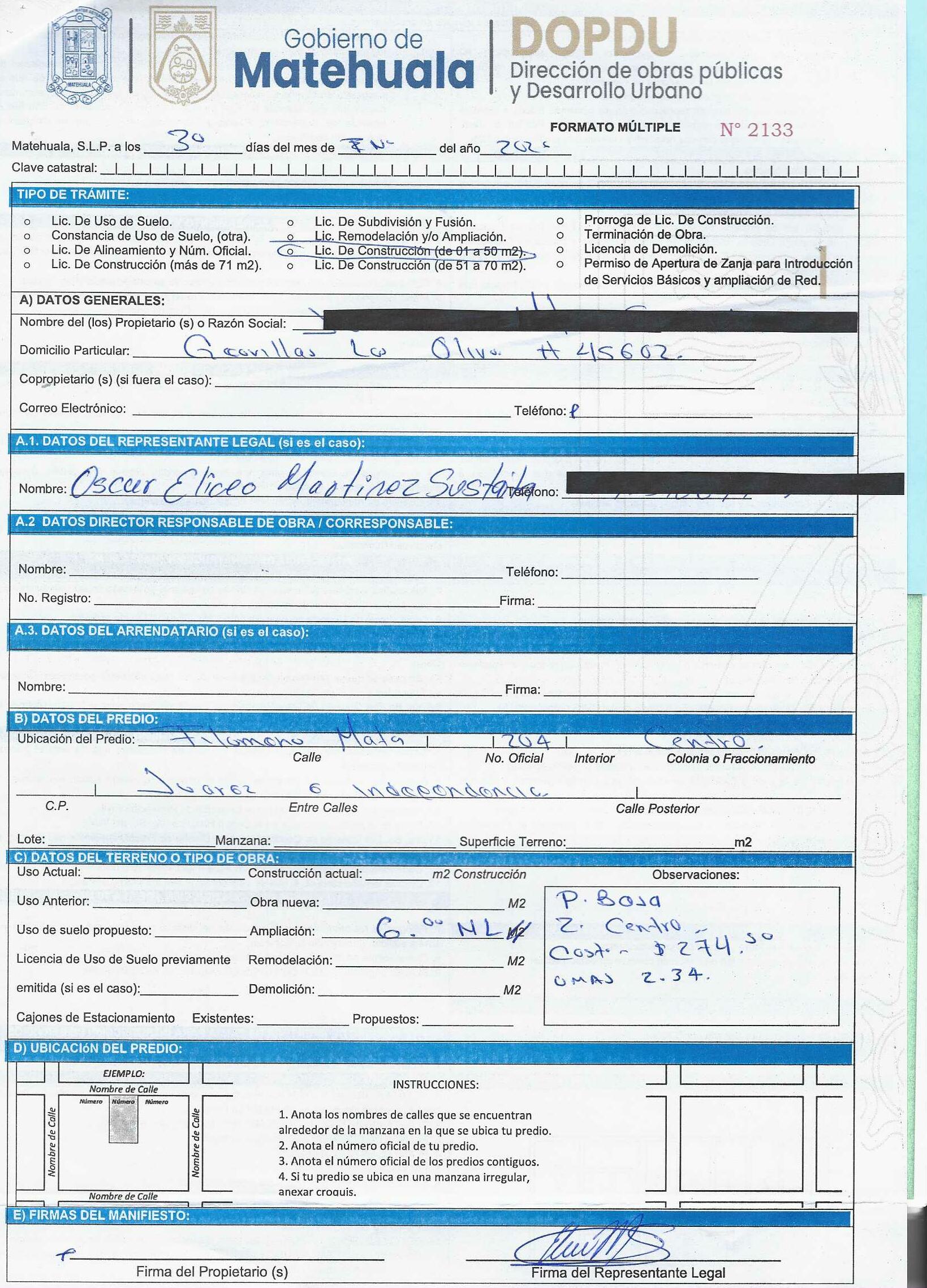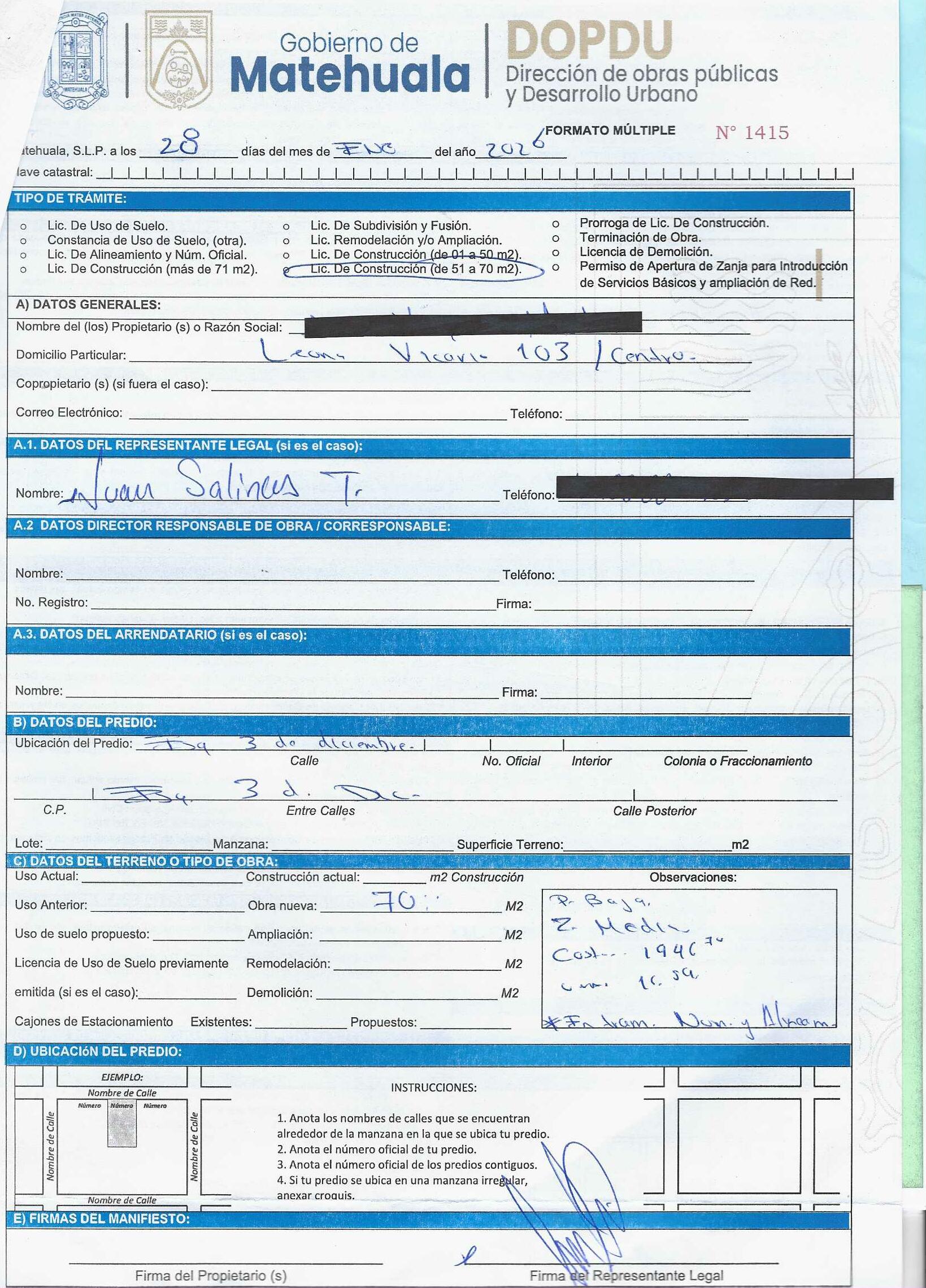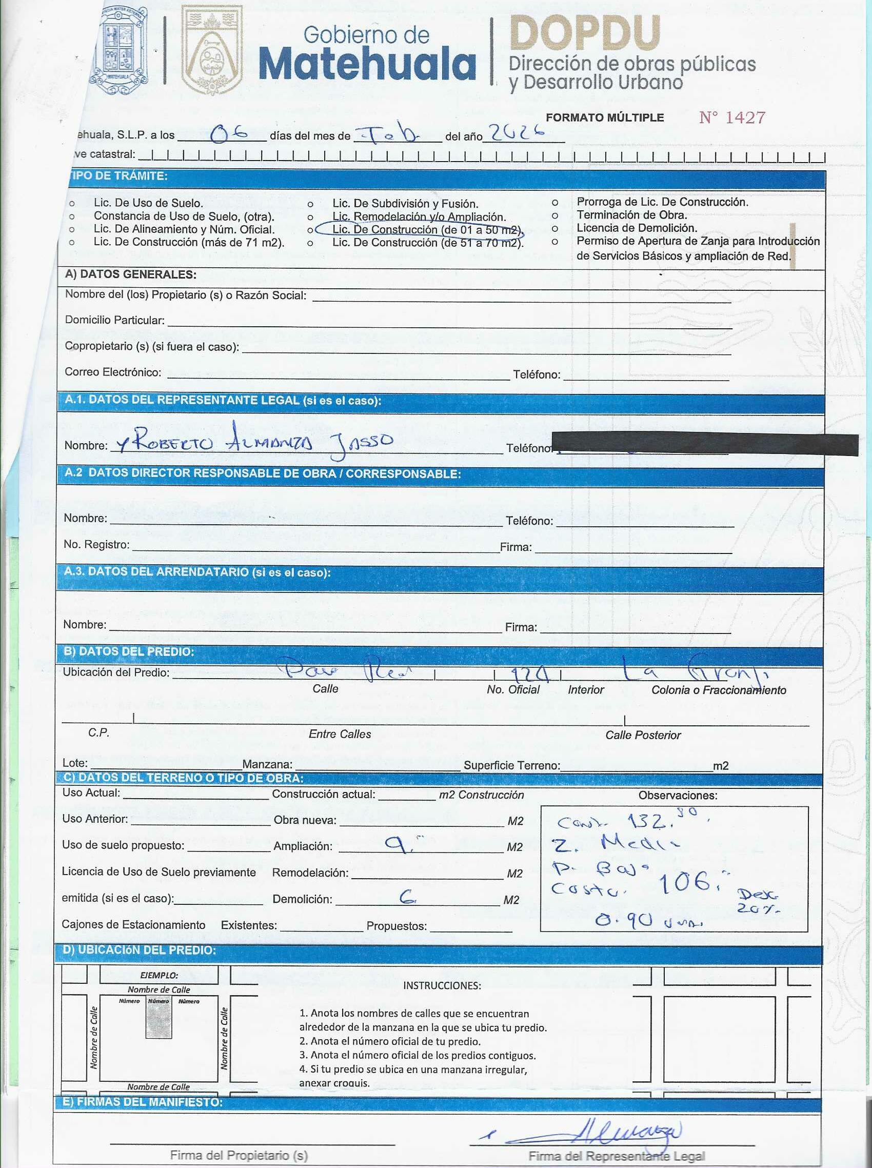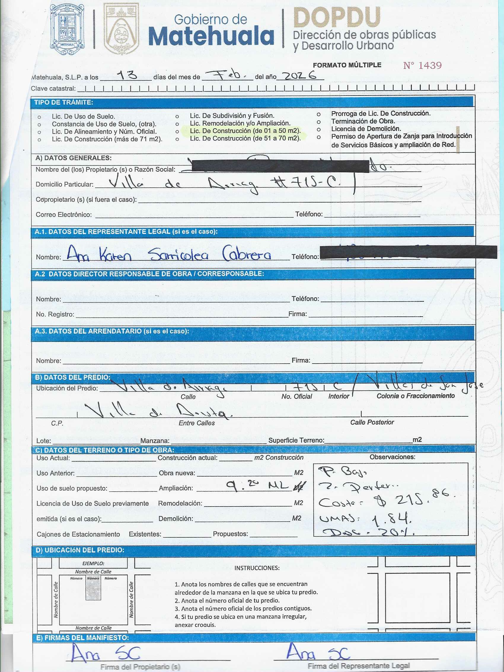 2026 01/02/2026 28/02/2026 DOP/LC/039/2026 CONSTRUCCION JOSE FRANCISCO MARTINEZ SUSTAITA no se genero información Calle FILOMENO MATA 204 0 Colonia CENTRO 20 MATEHUALA 20 MATEHUALA 24 San Luis Potosí 78700 "http://www.cegaipslp.org.mx/HV2026.nsf/nombre_de_la_vista/9639D914F2CCED0006258DB60054B4DC/$File/10+JOSE+FRANCISCO+MARTINEZ+SUSTAITA.jpg " 06/02/2026 06/02/2027 HABITACIONAL "http://www.cegaipslp.org.mx/HV2026.nsf/nombre_de_la_vista/FE068C37EB6001C606258DB500556988/$File/10+JOSE+FRANCISCO+MARTINEZ+SUSTAITA.jpg " DIRECCIÓN DE OBRAS PÚBLICAS Y DESARROLLO URBANO 10/03/2026 COBRO NORMAL