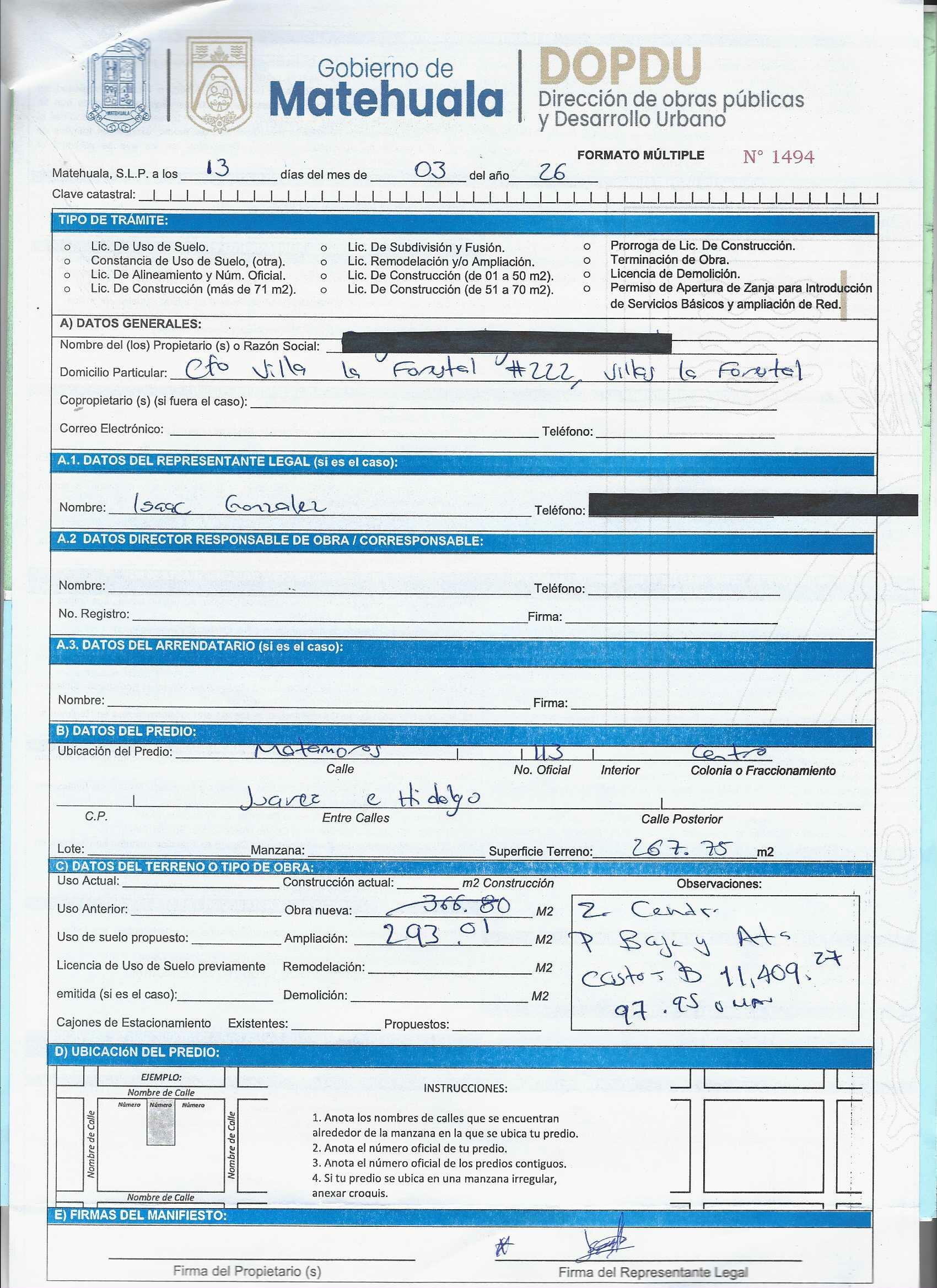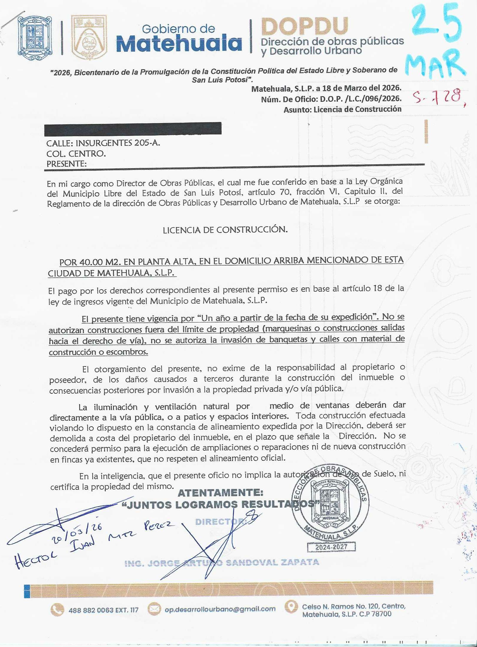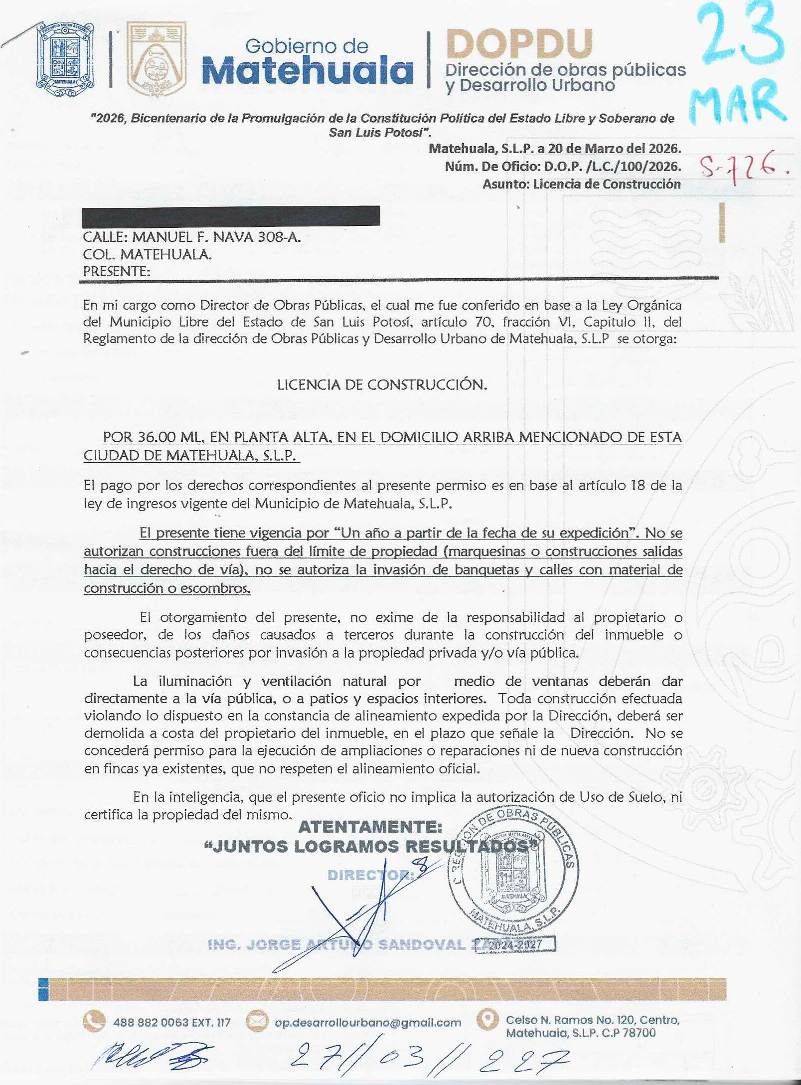 2026 01/03/2026 31/03/2026 DOP/LC/099/2026 CONSTRUCCION CELIA OROZCO MARTINEZ ARAMBERRI 719 SUR Colonia SUR Colonia CENTRO 20 MATEHUALA 20 MATEHUALA 24 San Luis Potosí 78700 "http://www.cegaipslp.org.mx/HV2026.nsf/nombre_de_la_vista/73E5B76D6E58E4E706258DCD005F0E12/$File/21+EDGAR+GALLEGOS+CORONADO.jpg " 19/03/2026 19/03/2027 HABITACIONAL "http://www.cegaipslp.org.mx/HV2026.nsf/nombre_de_la_vista/50C2D11BA68EEF8C06258DCD00644F49/$File/22+CELIA+OROZCO+MARTINEZ.jpg " DIRECCIÓN DE OBRAS PÚBLICAS Y DESARROLLO URBANO 02/04/2026 COBRO NORMAL