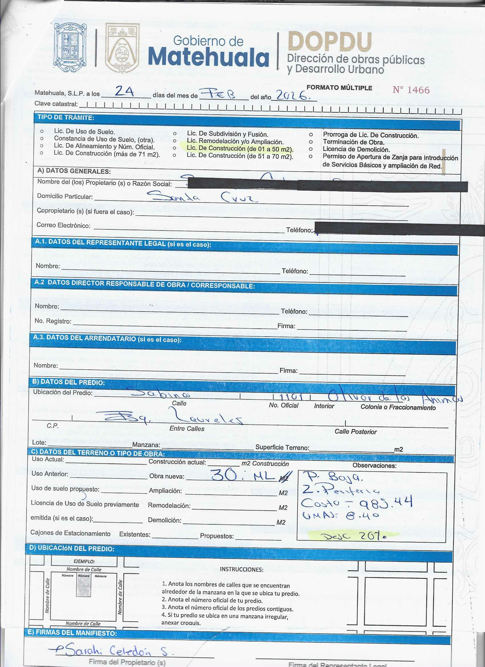 2026 01/03/2026 31/03/2026 DOP/LC/100/2026 CONSTRUCCION ESPERANZA RODRIGUEZ GARCIA MANUEL F. NAVA 308 A Colonia A Colonia MATEHUALA 20 MATEHUALA 20 MATEHUALA 24 San Luis Potosí 0 "http://www.cegaipslp.org.mx/HV2026.nsf/nombre_de_la_vista/81808D228160F40E06258DCD005F1A23/$File/22+CELIA+OROZCO+MARTINEZ.jpg " 20/03/2026 20/03/2027 HABITACIONAL "http://www.cegaipslp.org.mx/HV2026.nsf/nombre_de_la_vista/A22981D5AF2FBE2006258DCD00645843/$File/23+ESPERANZA+RODRIGUEZ+GARCIA.jpg " DIRECCIÓN DE OBRAS PÚBLICAS Y DESARROLLO URBANO 02/04/2026 20 % DESCUENTO