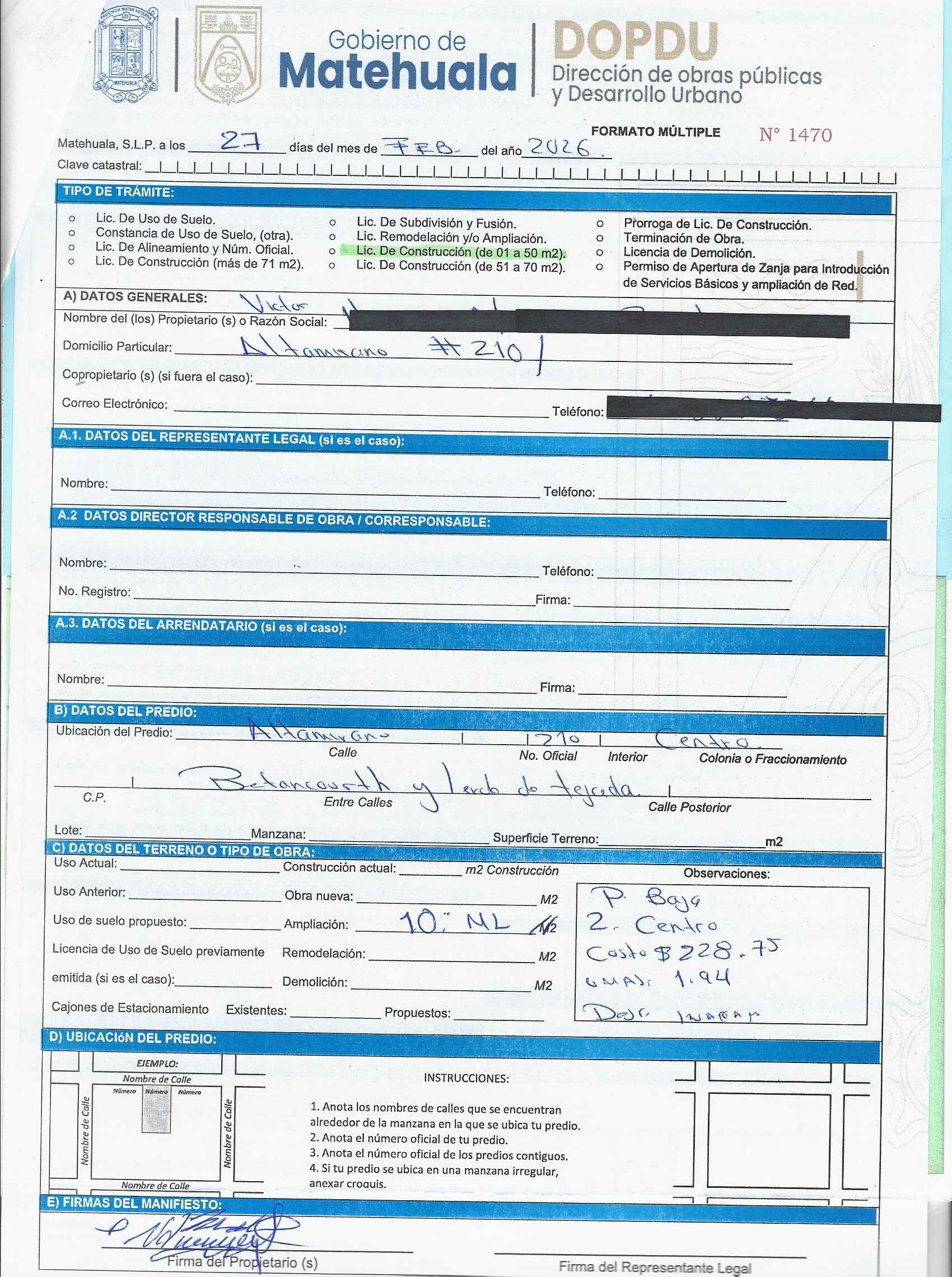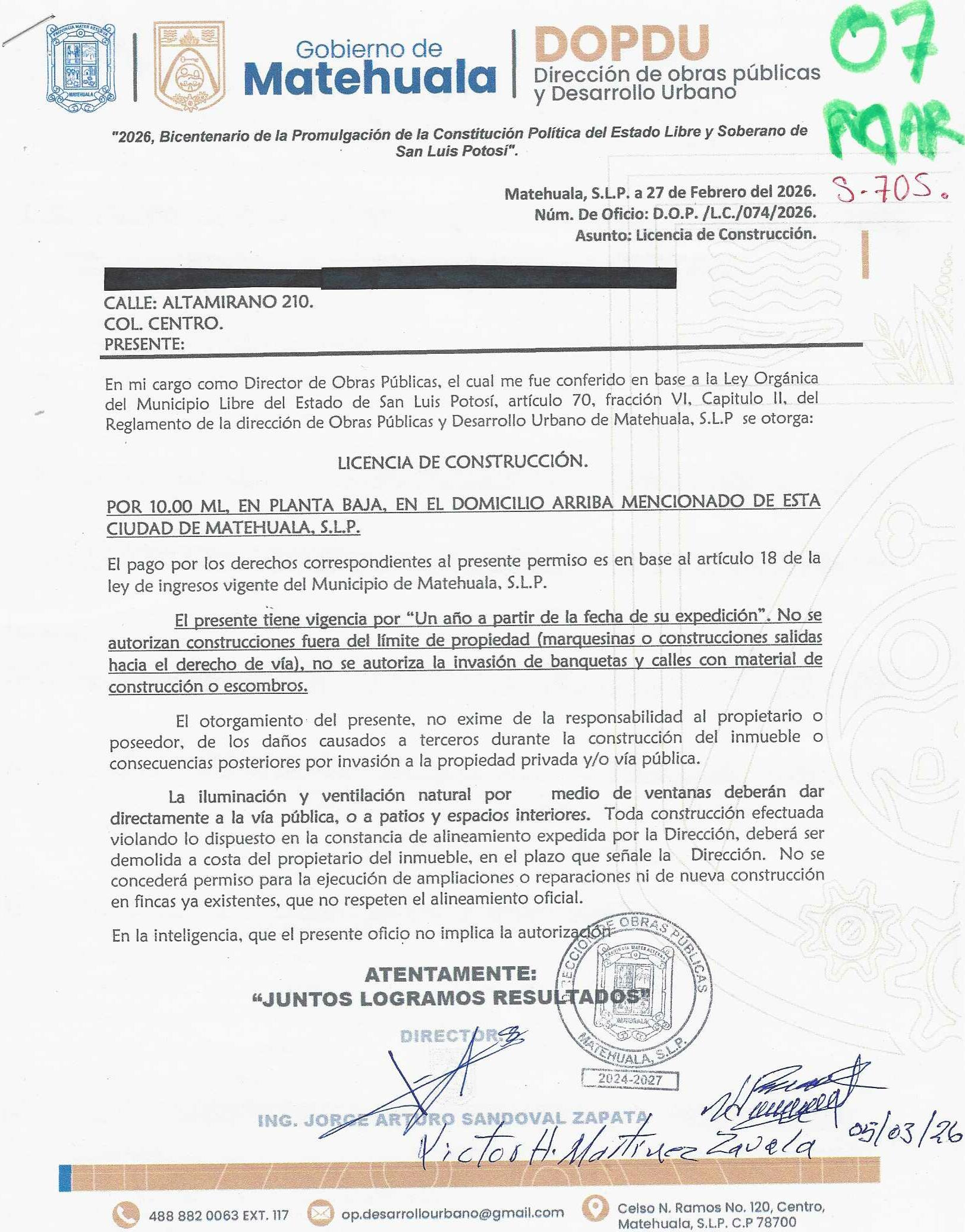 2026 01/03/2026 31/03/2026 DOP/LC/074/2026 CONSTRUCCION VICTOR HORACIO MARTINEZ ZAVALA ALTAMIRANO 210 0 Colonia 0 Colonia CENTRO 20 MATEHUALA 20 MATEHUALA 24 San Luis Potosí 78700 "http://www.cegaipslp.org.mx/HV2026.nsf/nombre_de_la_vista/7A062693CB79F27406258DCD005E36FB/$File/07+VICTOR+HORACIO+MARTINEZ+ZAVALA.jpg " 27/02/2026 27/02/2027 HABITACIONAL "http://www.cegaipslp.org.mx/HV2026.nsf/nombre_de_la_vista/673577CF9819D05C06258DCD0062470A/$File/07+VICTOR+HORACIO+MARTINEZ+ZAVALA.jpg " DIRECCIÓN DE OBRAS PÚBLICAS Y DESARROLLO URBANO 02/04/2026 50 % DESCUENTO INSEN