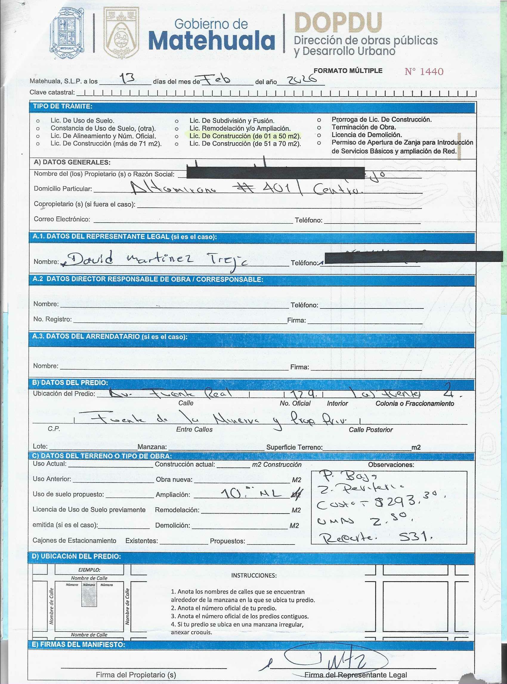 2026 01/03/2026 31/03/2026 DOP/LC/053/2026 CONSTRUCCION MARIA MARTINEZ TREJO FUENTE REAL 129 0 Colonia 0 Colonia LAS FUENTES 2 20 MATEHUALA 20 MATEHUALA 24 San Luis Potosí 78724 "http://www.cegaipslp.org.mx/HV2026.nsf/nombre_de_la_vista/91385100952B4D4806258DCD005E40CA/$File/08+MARIA+MARTINEZ+TREJO.jpg " 13/02/2026 13/02/2027 HABITACIONAL "http://www.cegaipslp.org.mx/HV2026.nsf/nombre_de_la_vista/80E45A3728AE2A1606258DCD006257E4/$File/08+MARIA+MARTINEZ+TREJO.jpg " DIRECCIÓN DE OBRAS PÚBLICAS Y DESARROLLO URBANO 02/04/2026 COBRO NORMAL