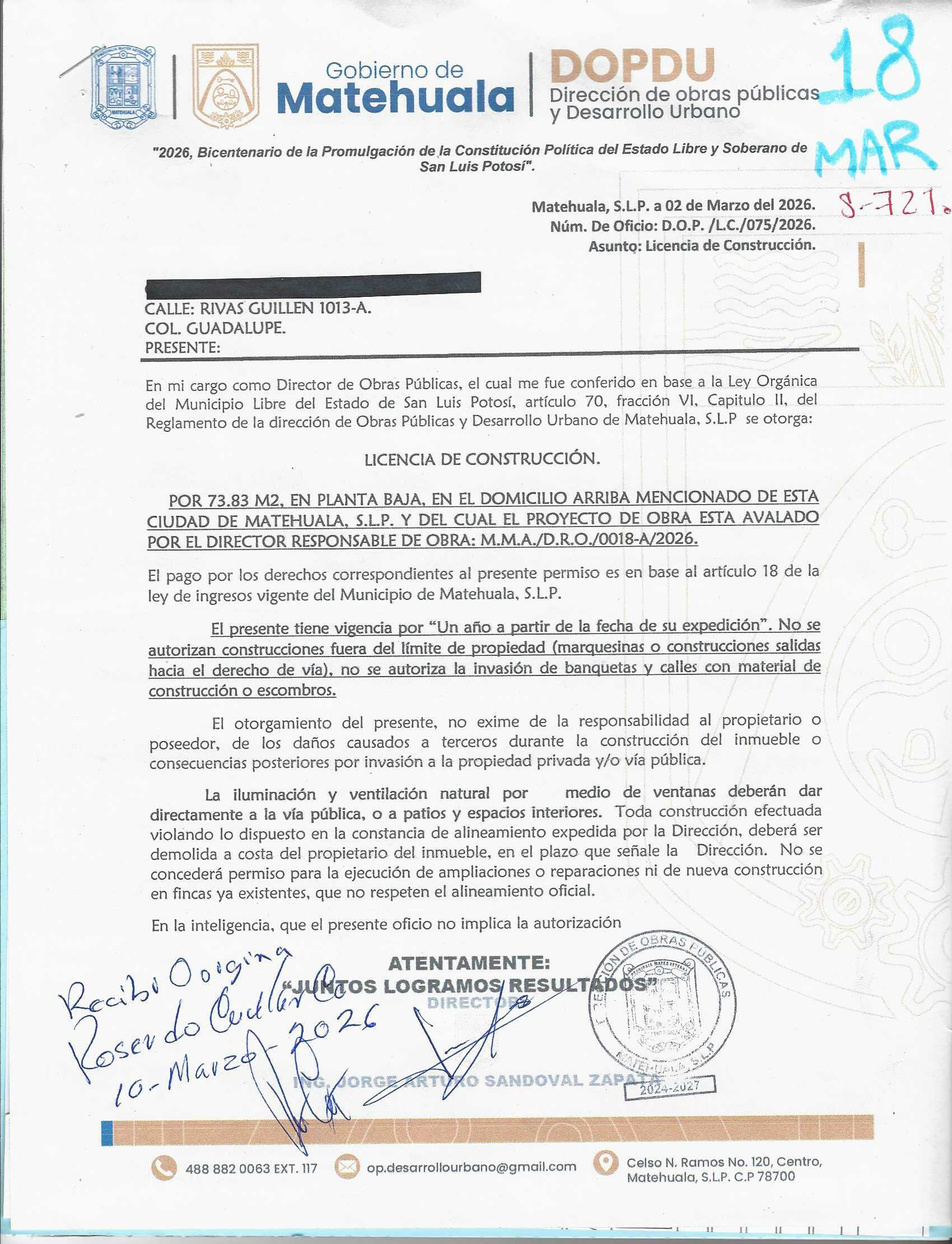 2026 01/03/2026 31/03/2026 DOP/LC/075/2026 CONSTRUCCION ROSENDO CUELLAR CANDELARIA RIVAS GUILLEN 1013 A Colonia A Colonia GUADALUPE 20 MATEHUALA 20 MATEHUALA 24 San Luis Potosí 78786 "http://www.cegaipslp.org.mx/HV2026.nsf/nombre_de_la_vista/60AE63BD9B70448C06258DCD005EBDF3/$File/18+ROSENDO+CUELLAR+CANDELARIA.jpg " 10/03/2026 10/03/2027 HABITACIONAL "http://www.cegaipslp.org.mx/HV2026.nsf/nombre_de_la_vista/9C30FB2BDE4138FB06258DCD006406B9/$File/18+ROSENDO+CUELLAR+CANDELARIA.jpg " DIRECCIÓN DE OBRAS PÚBLICAS Y DESARROLLO URBANO 02/04/2026 COBRO NORMAL